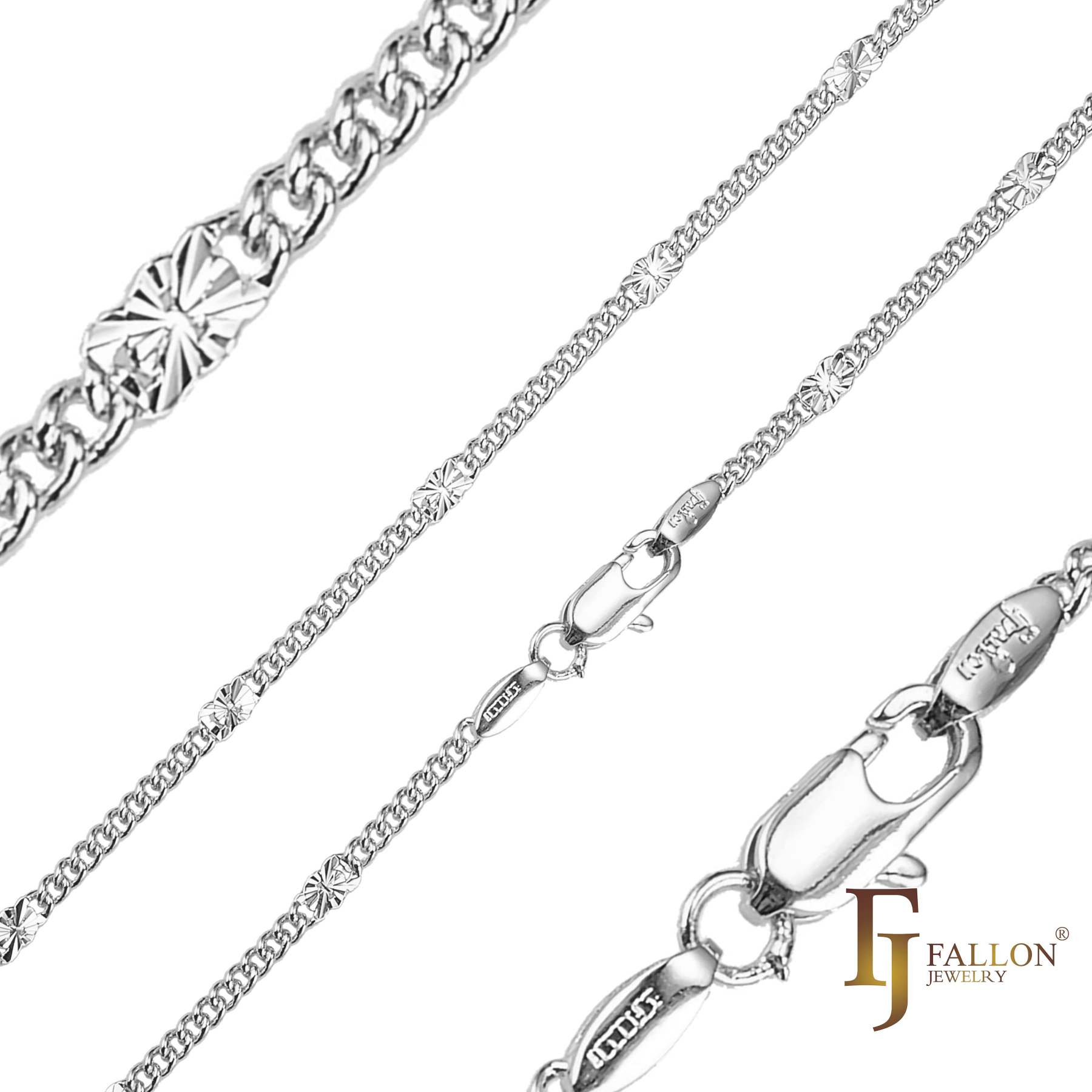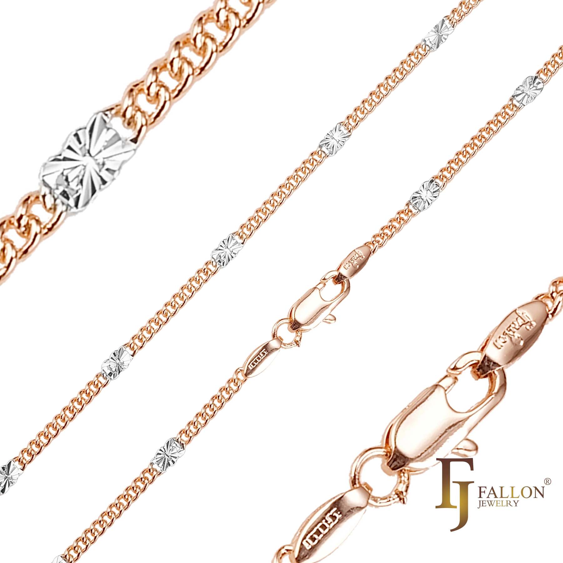 Sunflower fancy link chains plated in 14K Gold, Rose Gold, two tone, White Gold