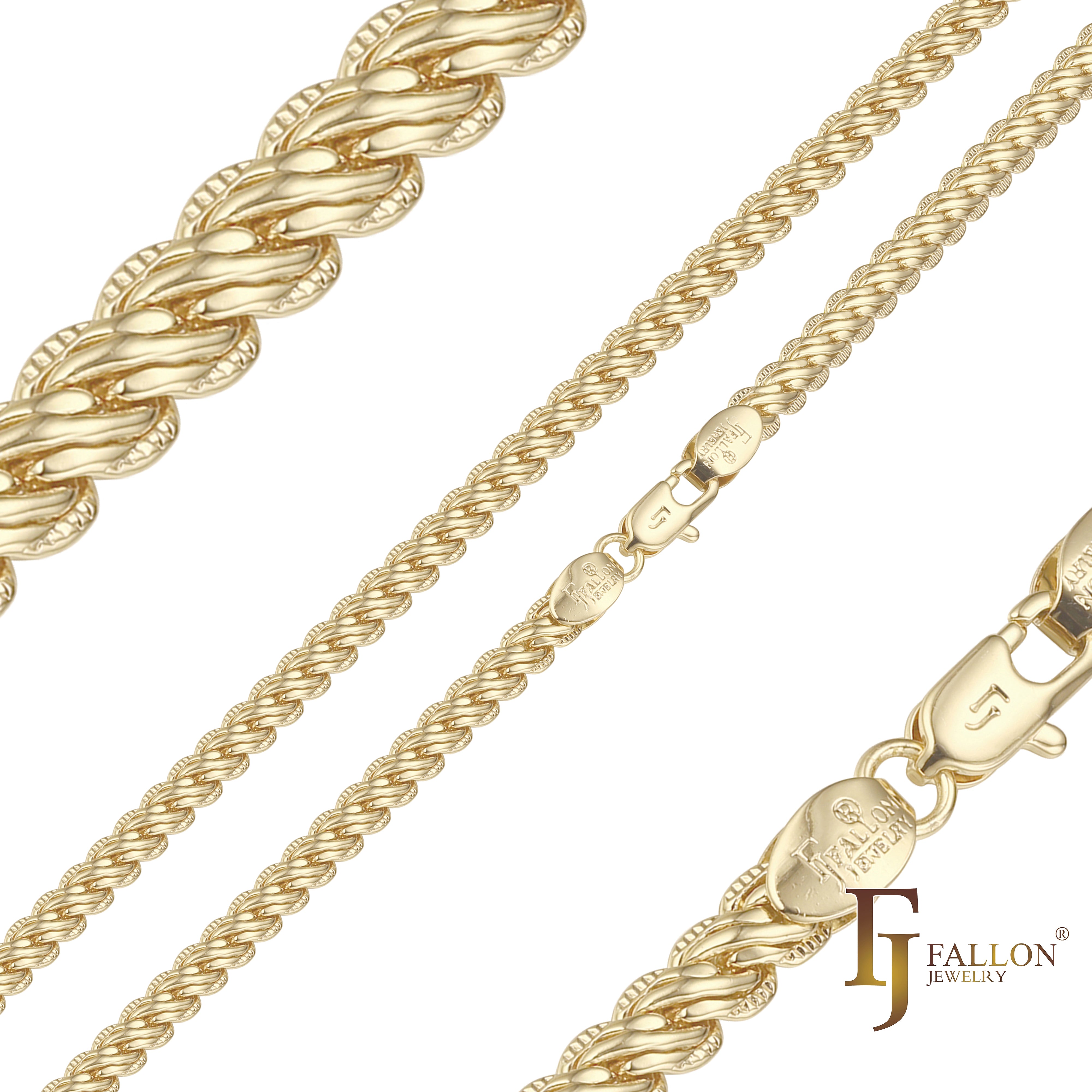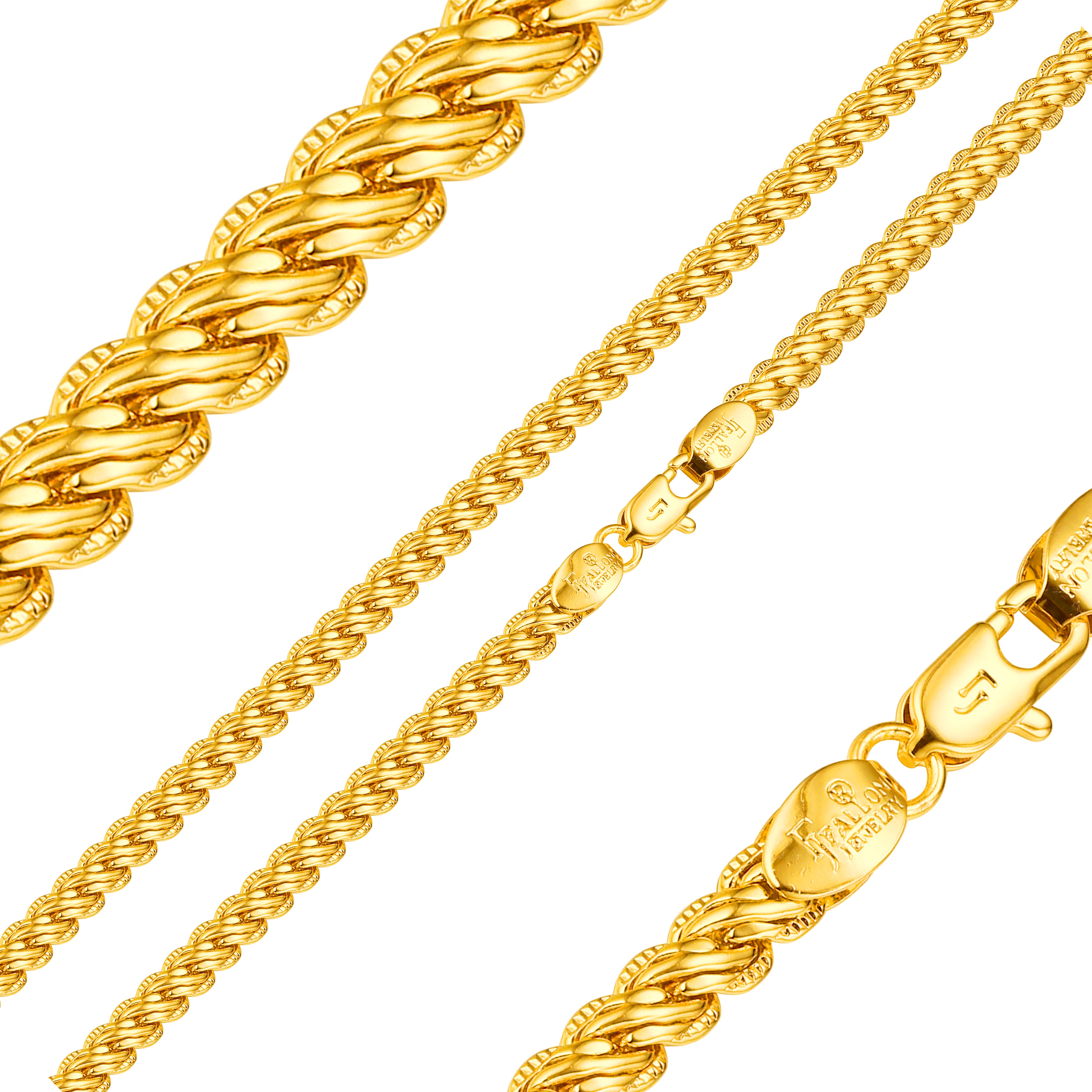 Fancy link Spiga wheat compact chains plated in 14K Gold