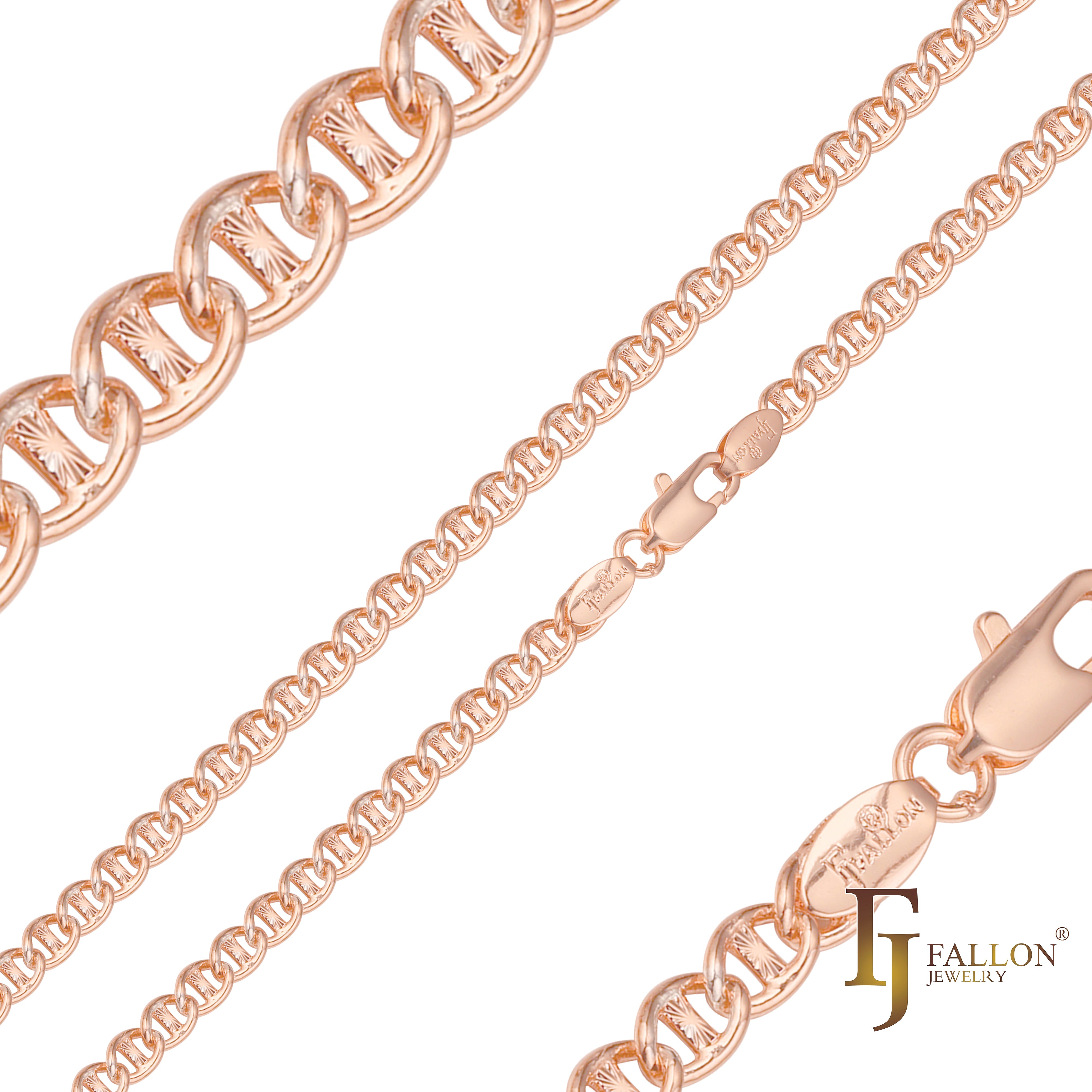 Mariner star hammered cable link chains plated in 14K Gold, Rose Gold, two tone