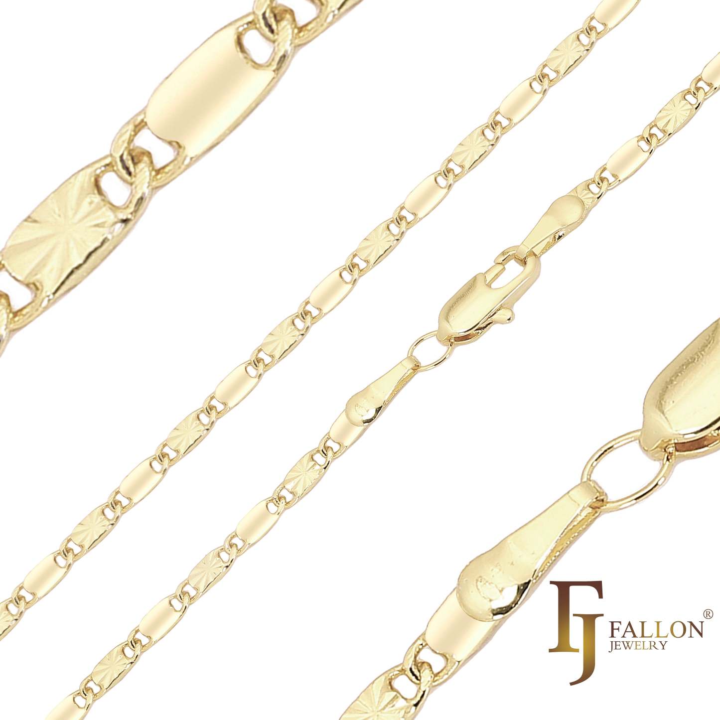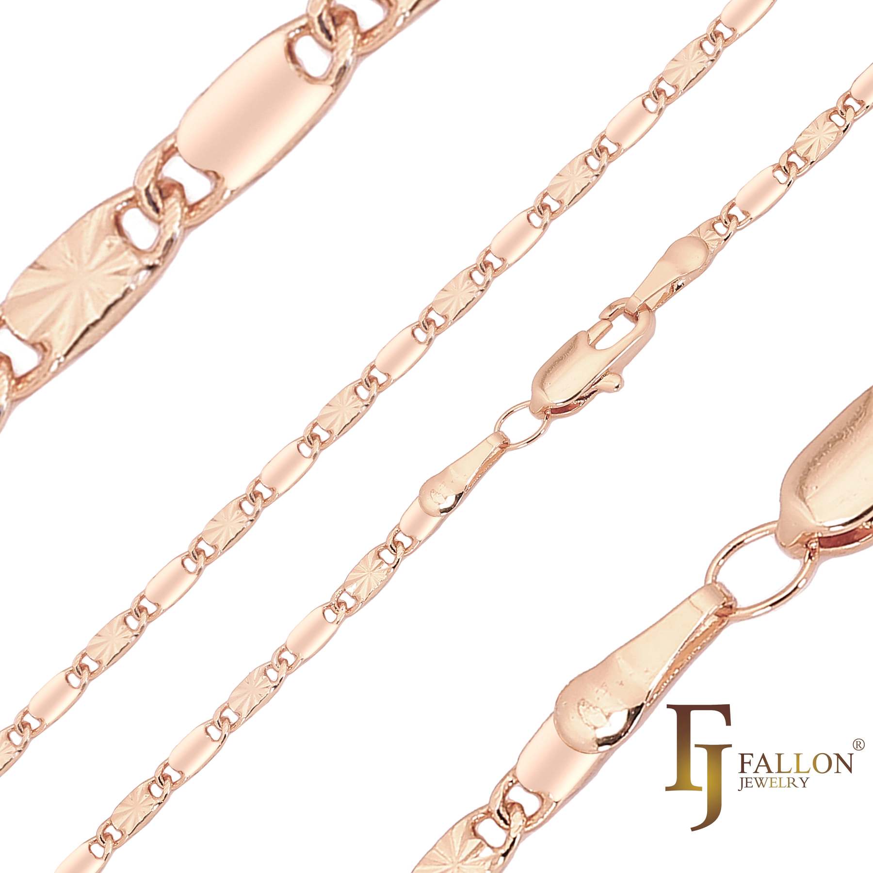 Snail link half sunburst hammered chains plated in 14K Gold, Rose Gold