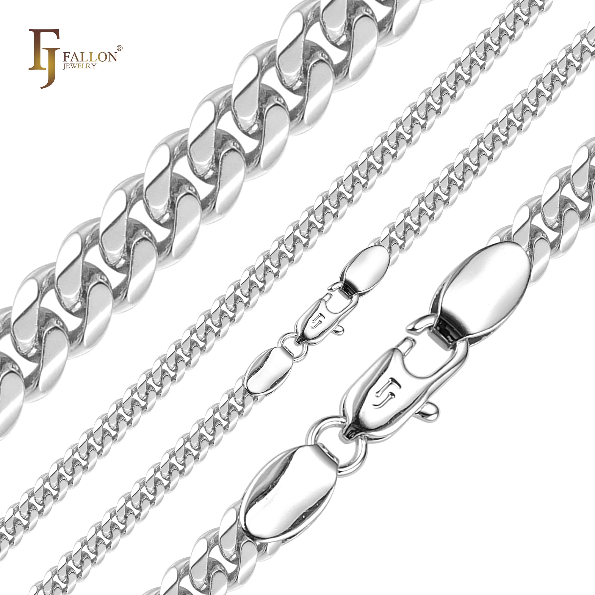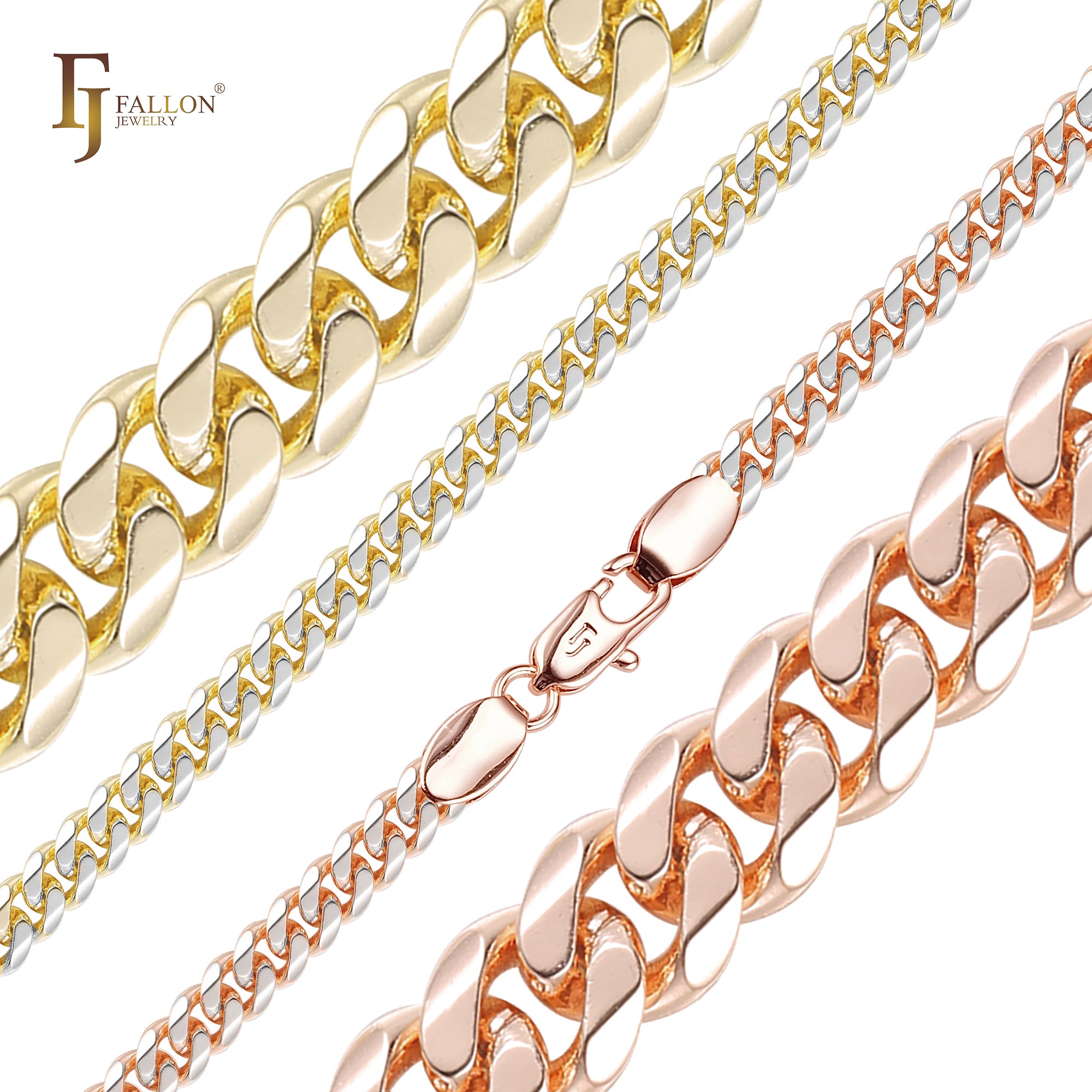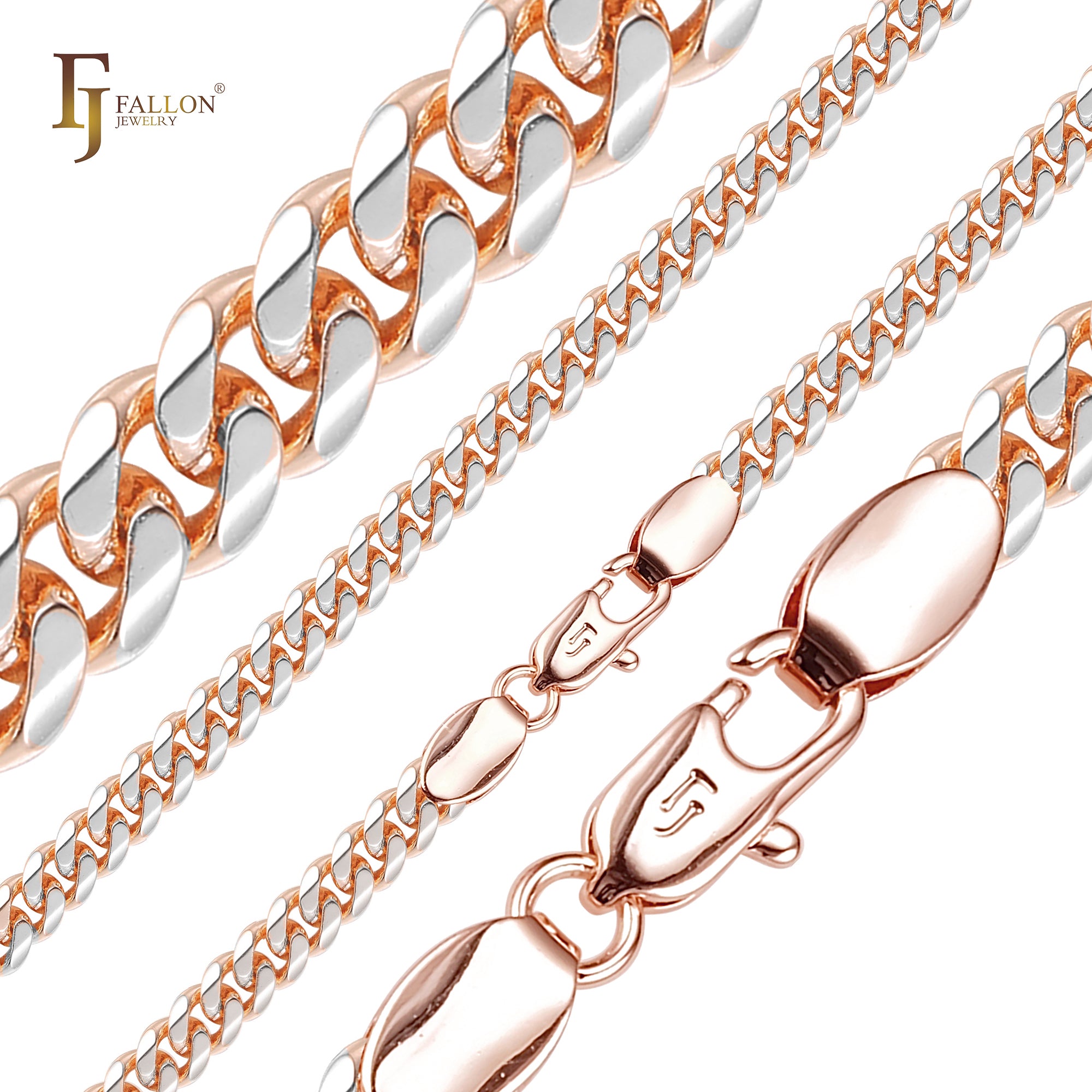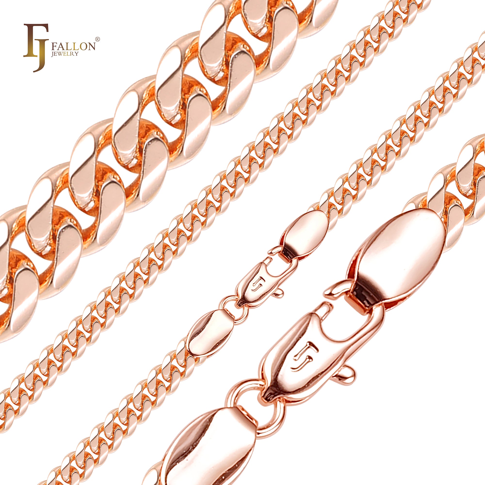 Classic Miami Style Cuban link rounded flank flattened surface chains plated in 14K Gold, Rose Gold RFSF