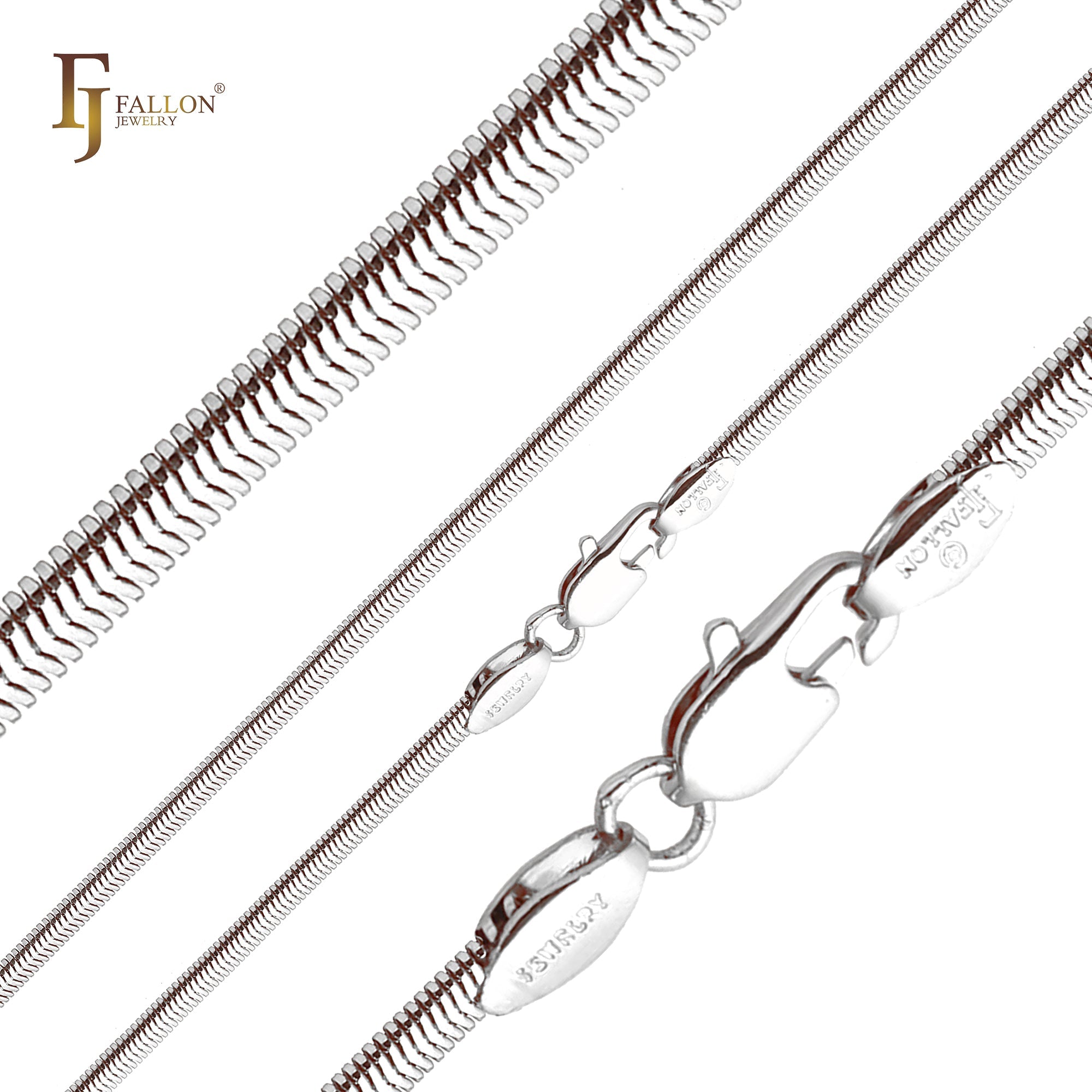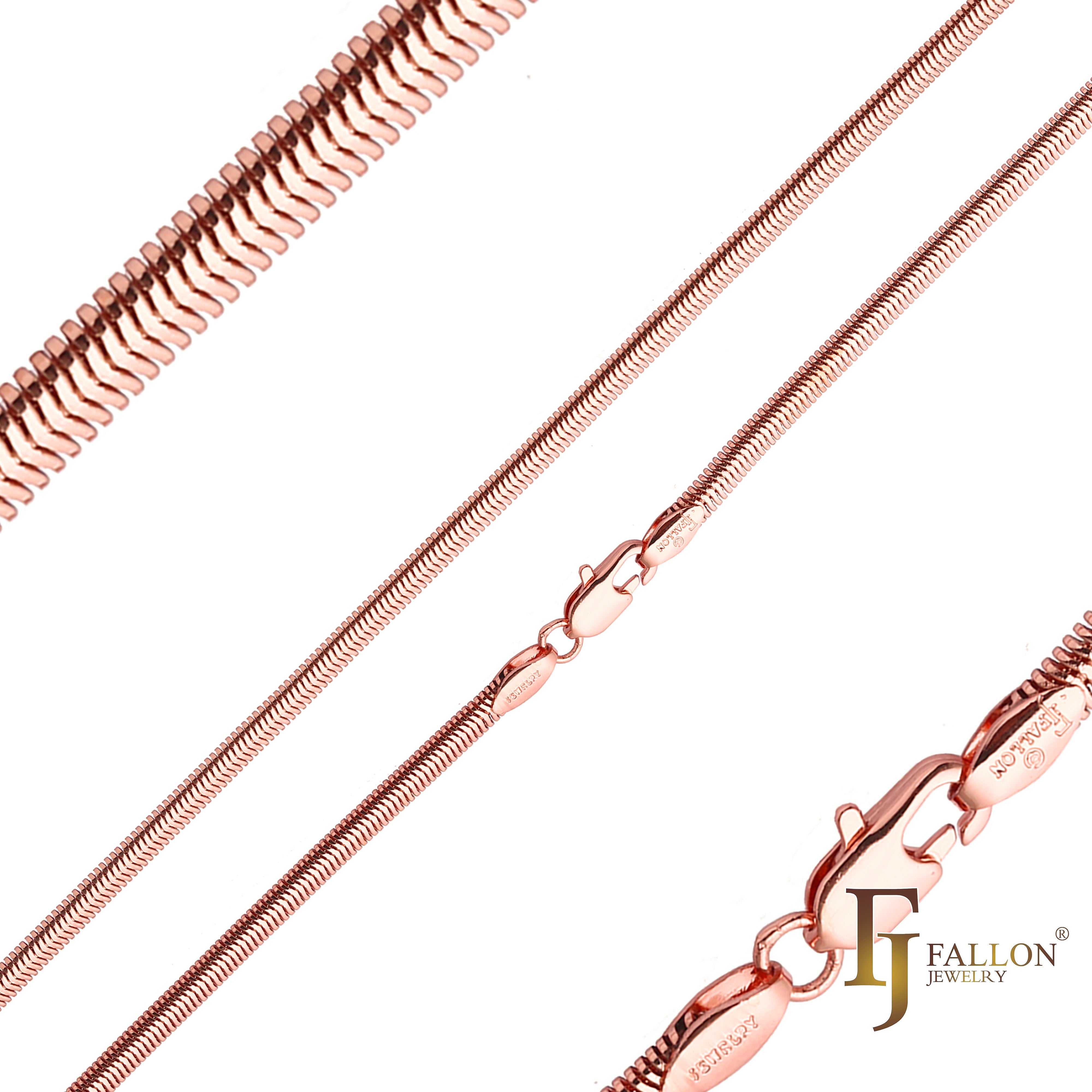 Flat skeleton Snake chains plated in White Gold, 14K Gold, Rose Gold