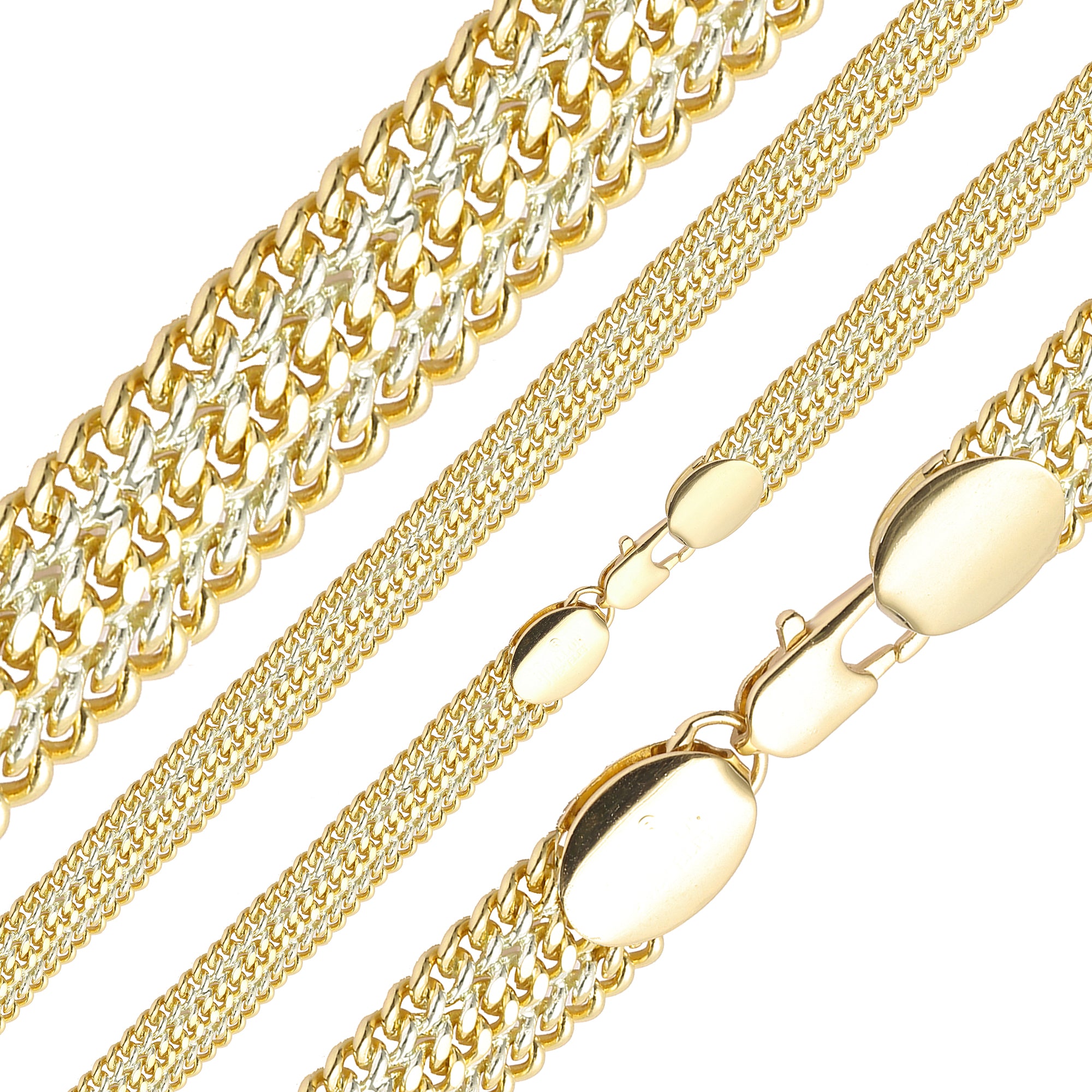Three way link Cuban chains plated in 14K Gold, Rose Gold two tone