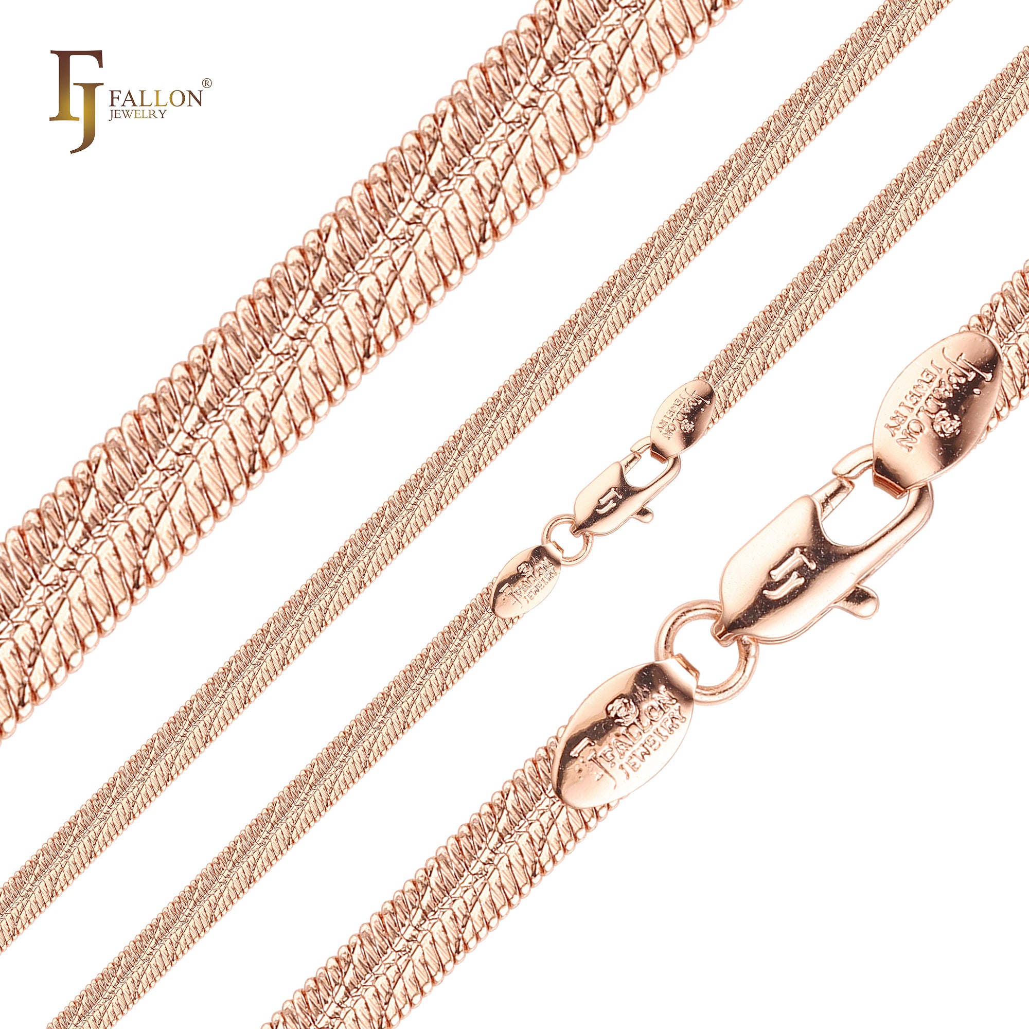 Flat Snake tire hammered textured Rose Gold Herringbone Chains
