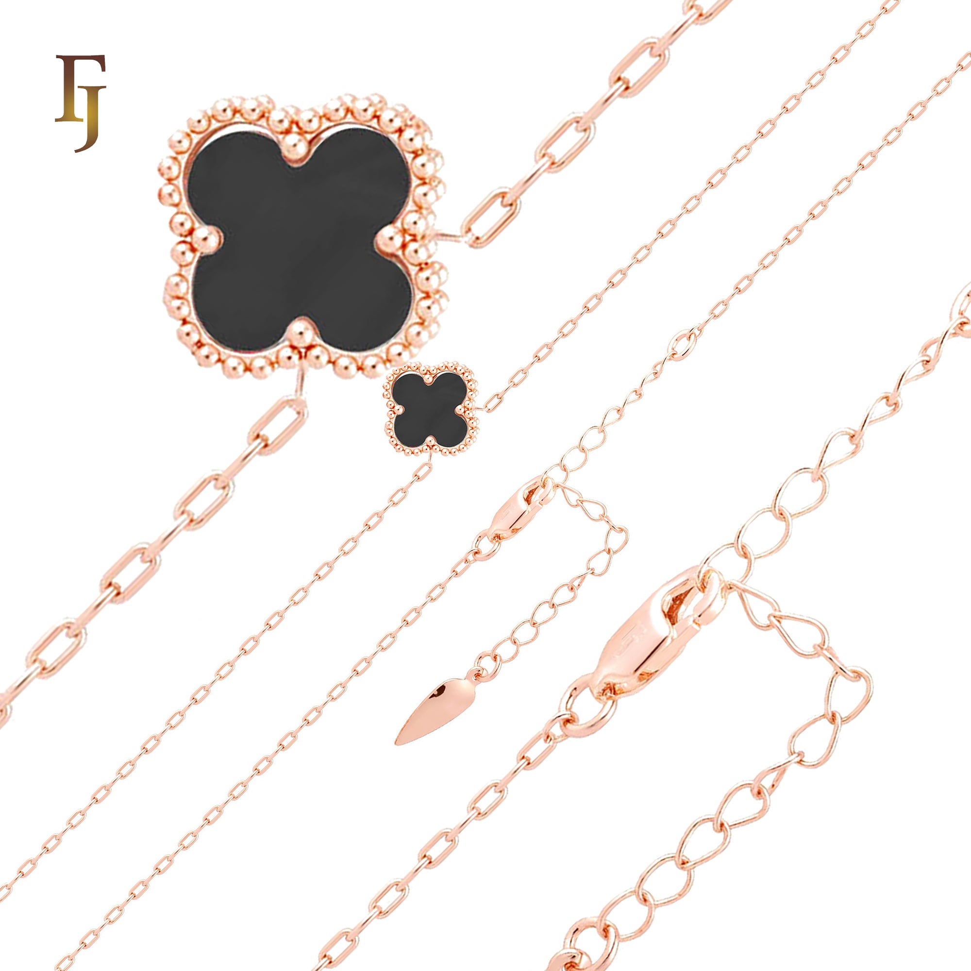 Solo white or black lucky Clover shape Rose Gold paperclip link braclets or chain