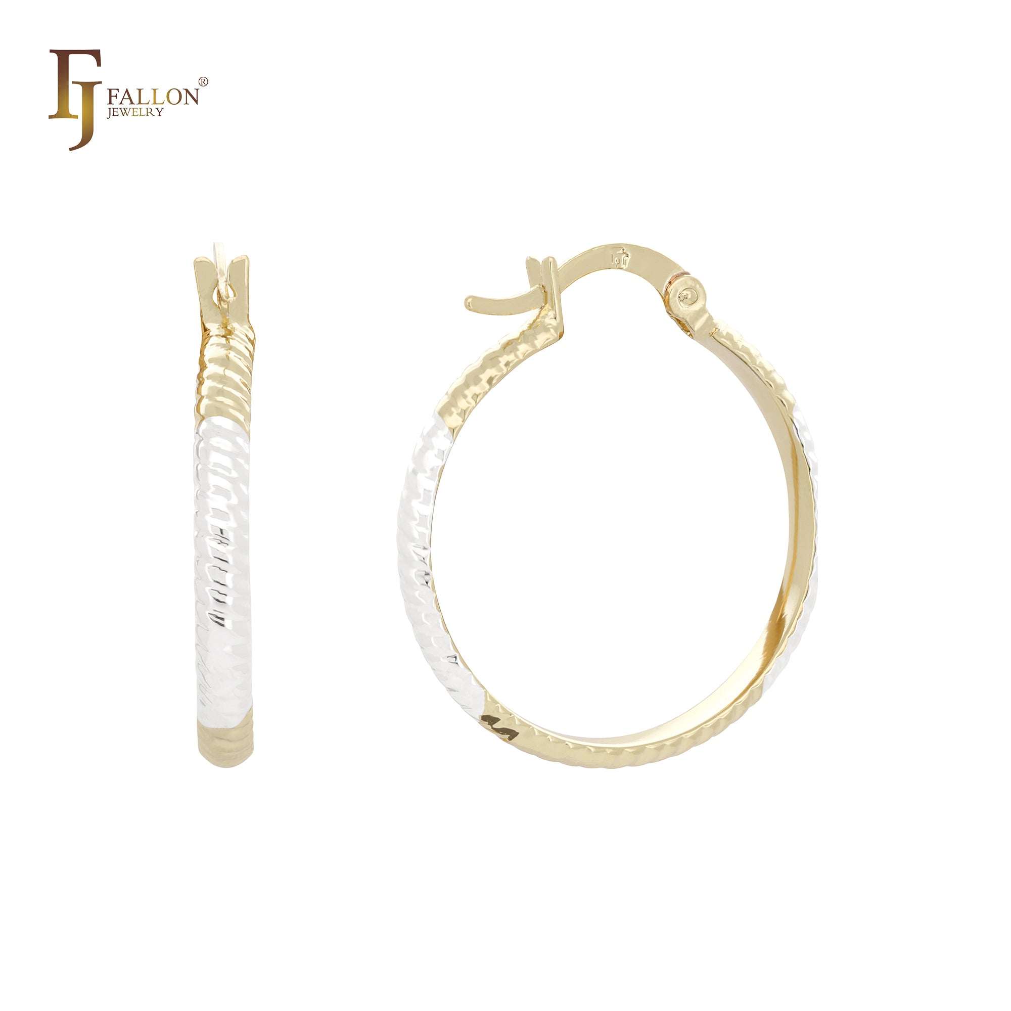 Textured 14K Gold two tone Hoop earrings