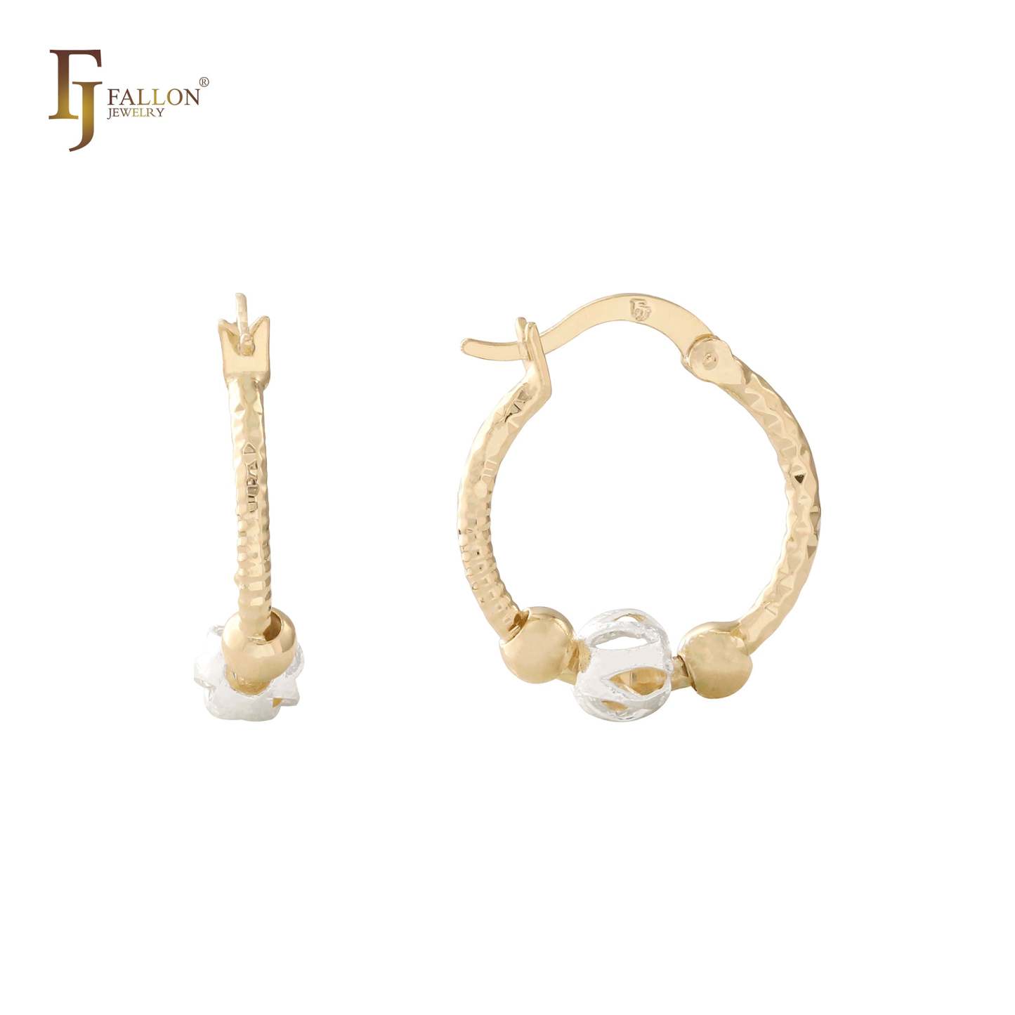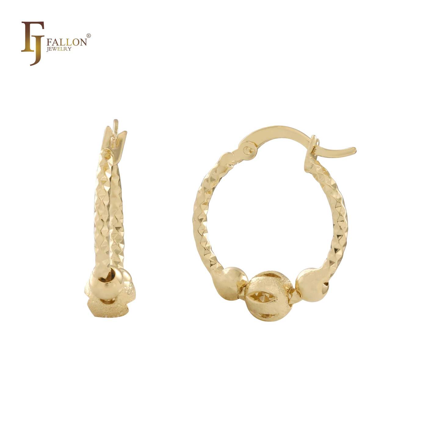 Hollow Beads rhombus textured 14K Gold, Rose Gold Hoop Earrings