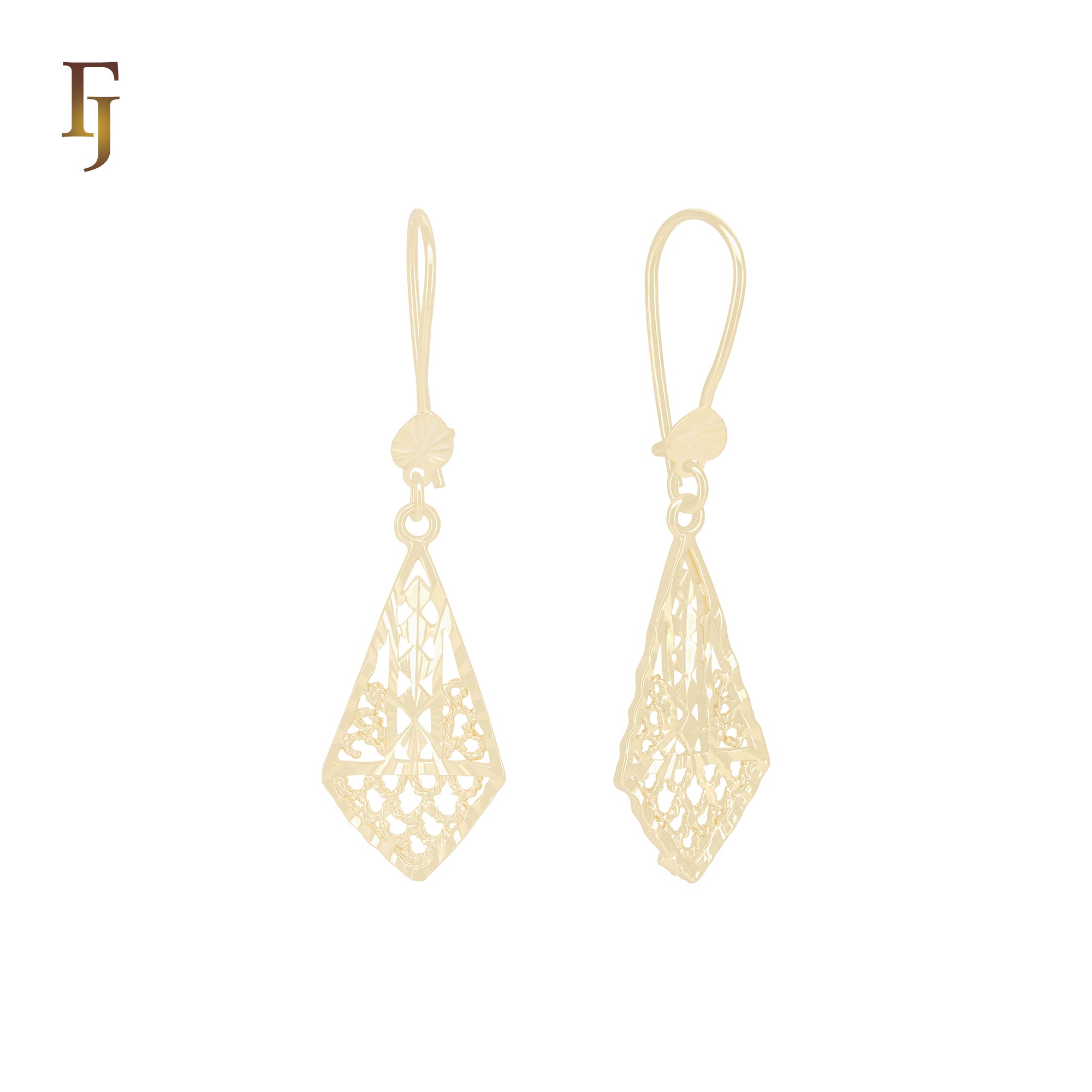 Drop filigree Rhombus 14K Gold Wire Hook Earrings