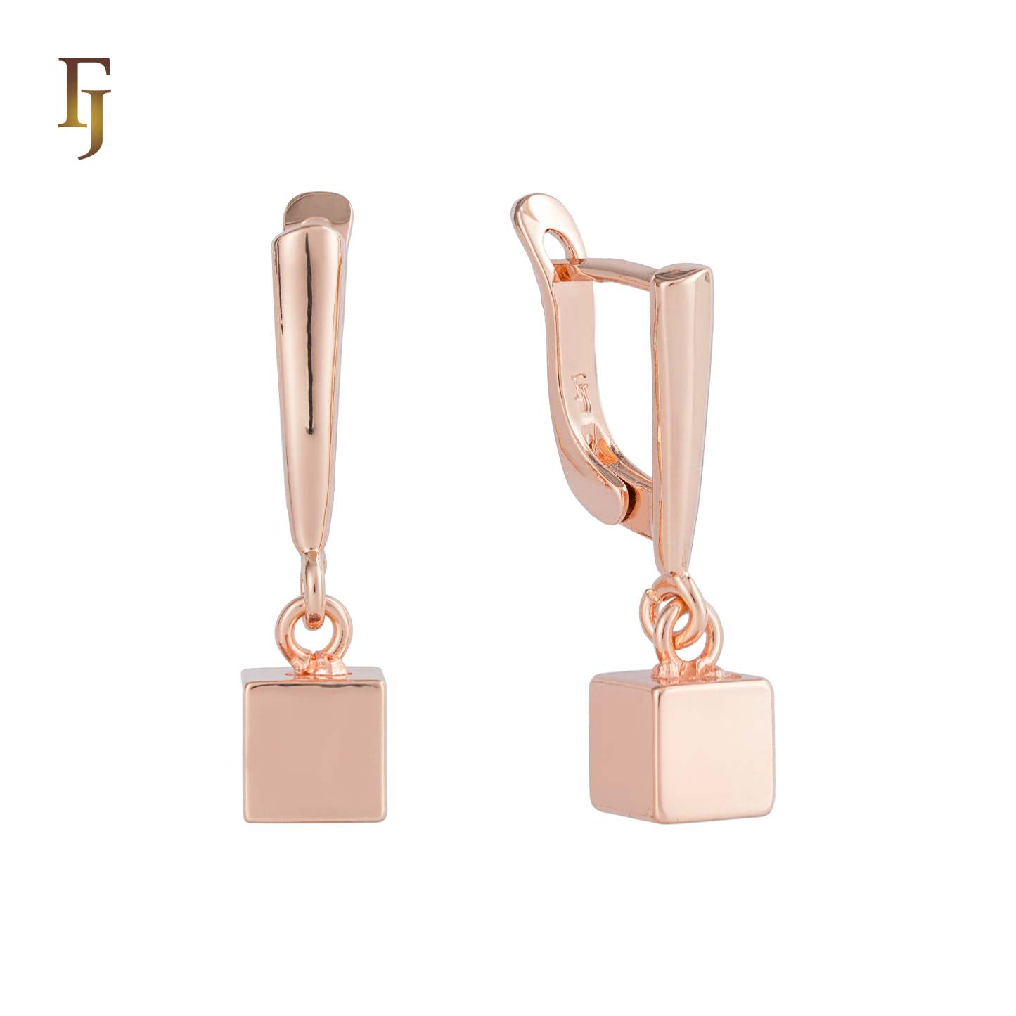 These minimalist Russian lock earrings feature a dangling cube charm with a polished gold-plated finish. A geometric and modern design perfect for fashion-forward women.