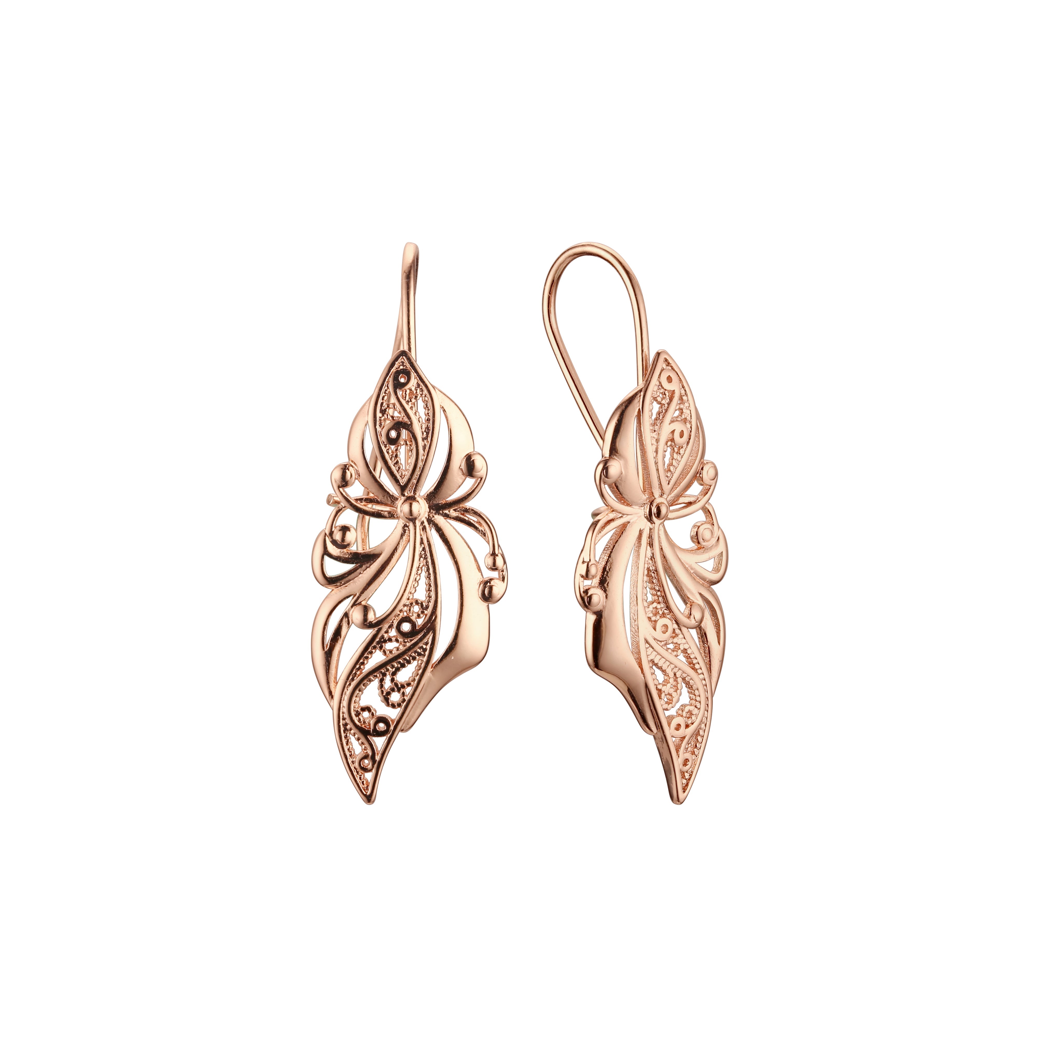 .Flower wire hook earrings in Rose Gold, two tone plating colors