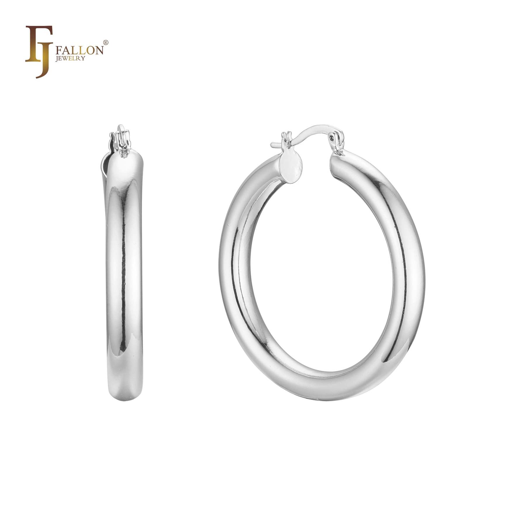 Thick chunky tube 14K Gold, Rose Gold, White Gold hoop earrings