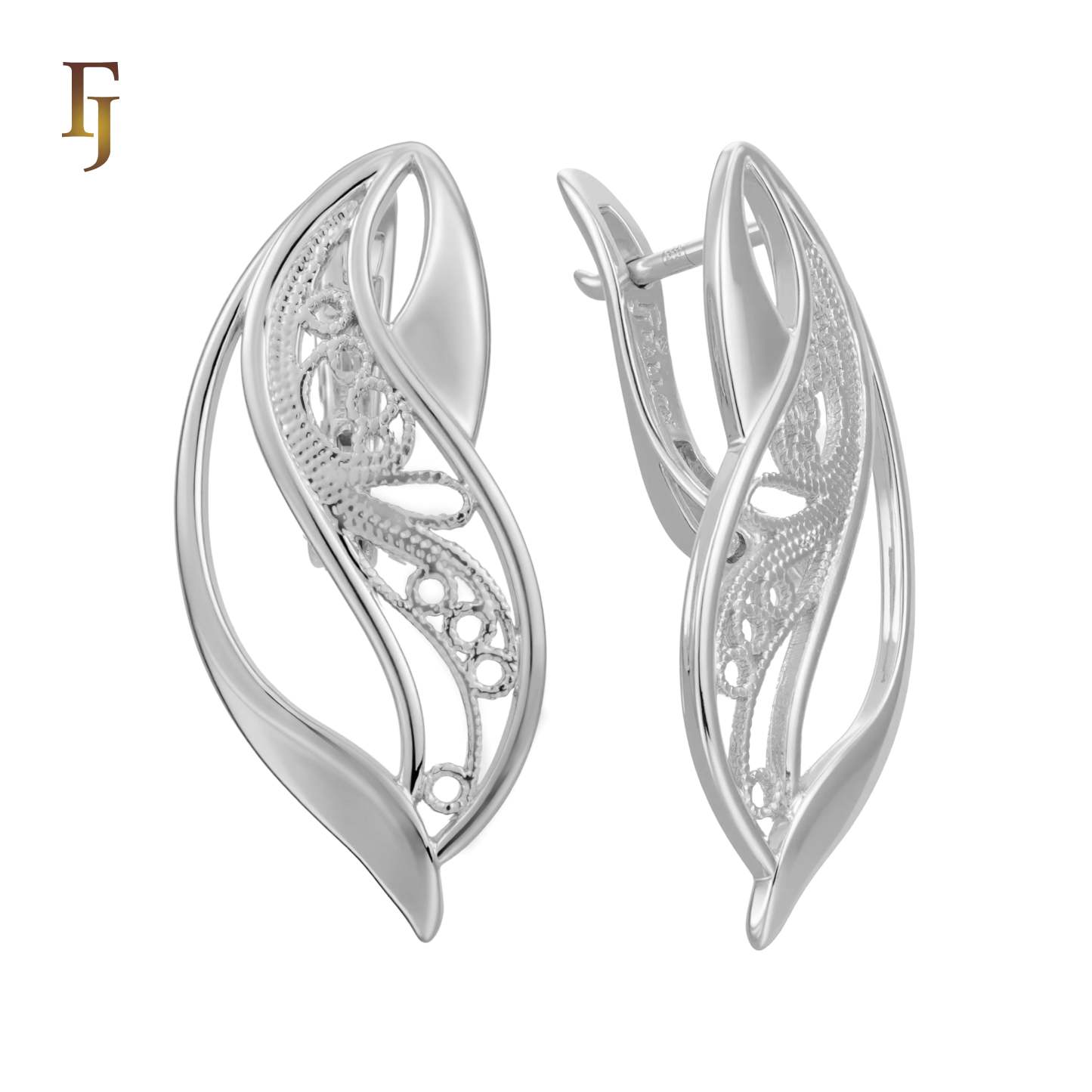 Inspired by the graceful lines of a leaf, these Russian Lock Earrings combine organic flow with intricate filigree detailing. The openwork inner texture adds depth and sophistication, while the polished gold-plated finish brings a warm glow. Made from eco-conscious copper and plated using FJ proprietary long-lasting technique, these earrings remain radiant over time. The secure Russian lock mechanism ensures a snug yet comfortable fit for all-day elegance.