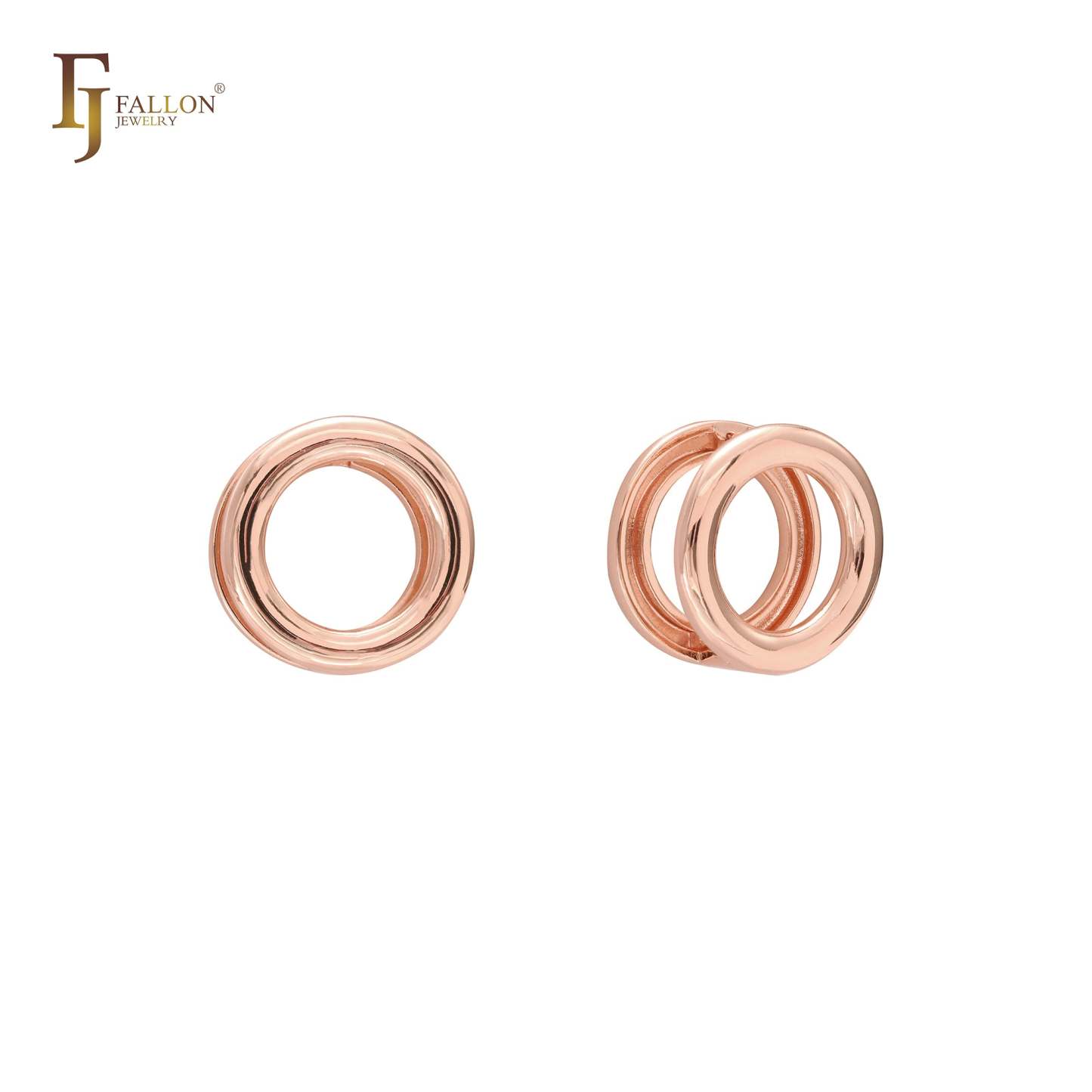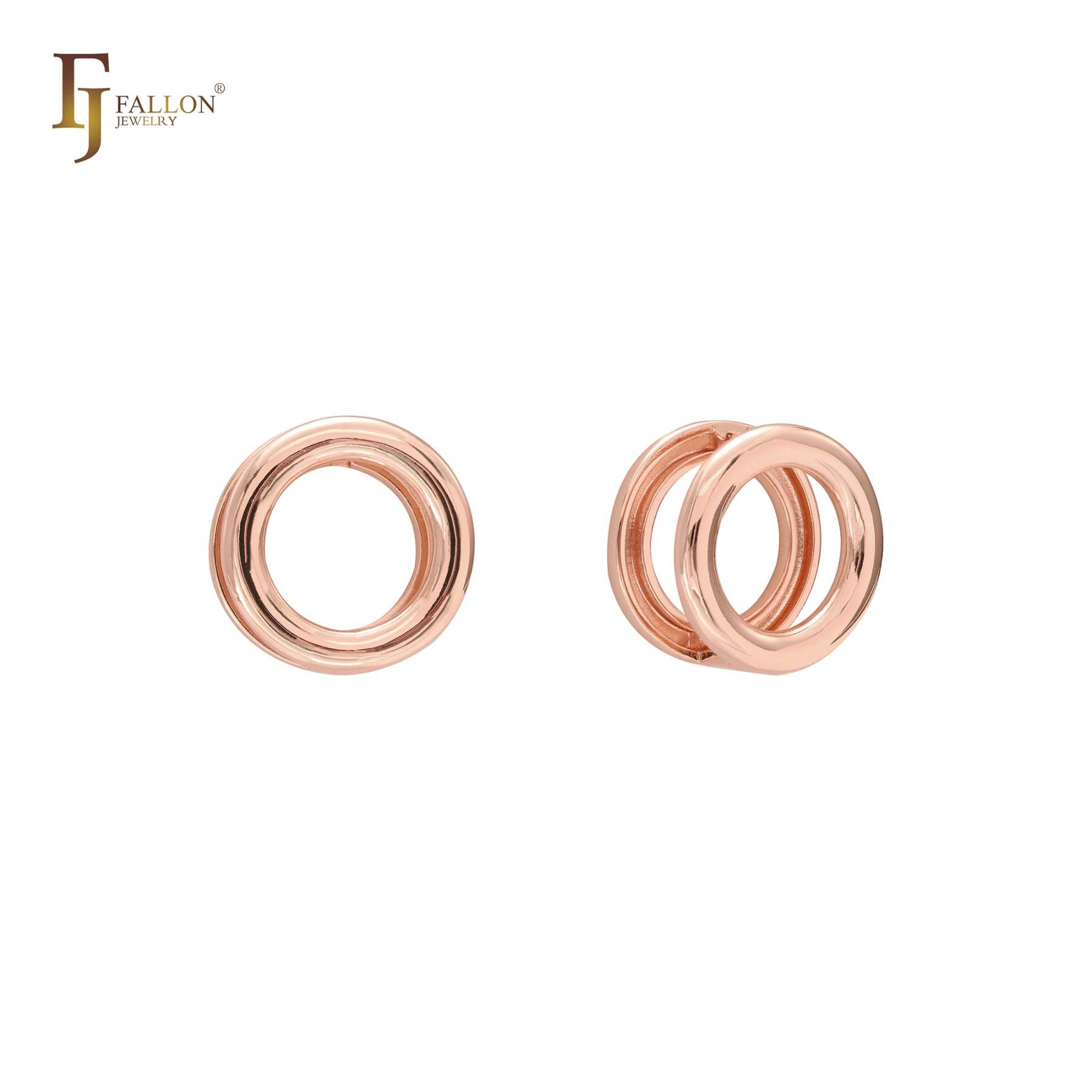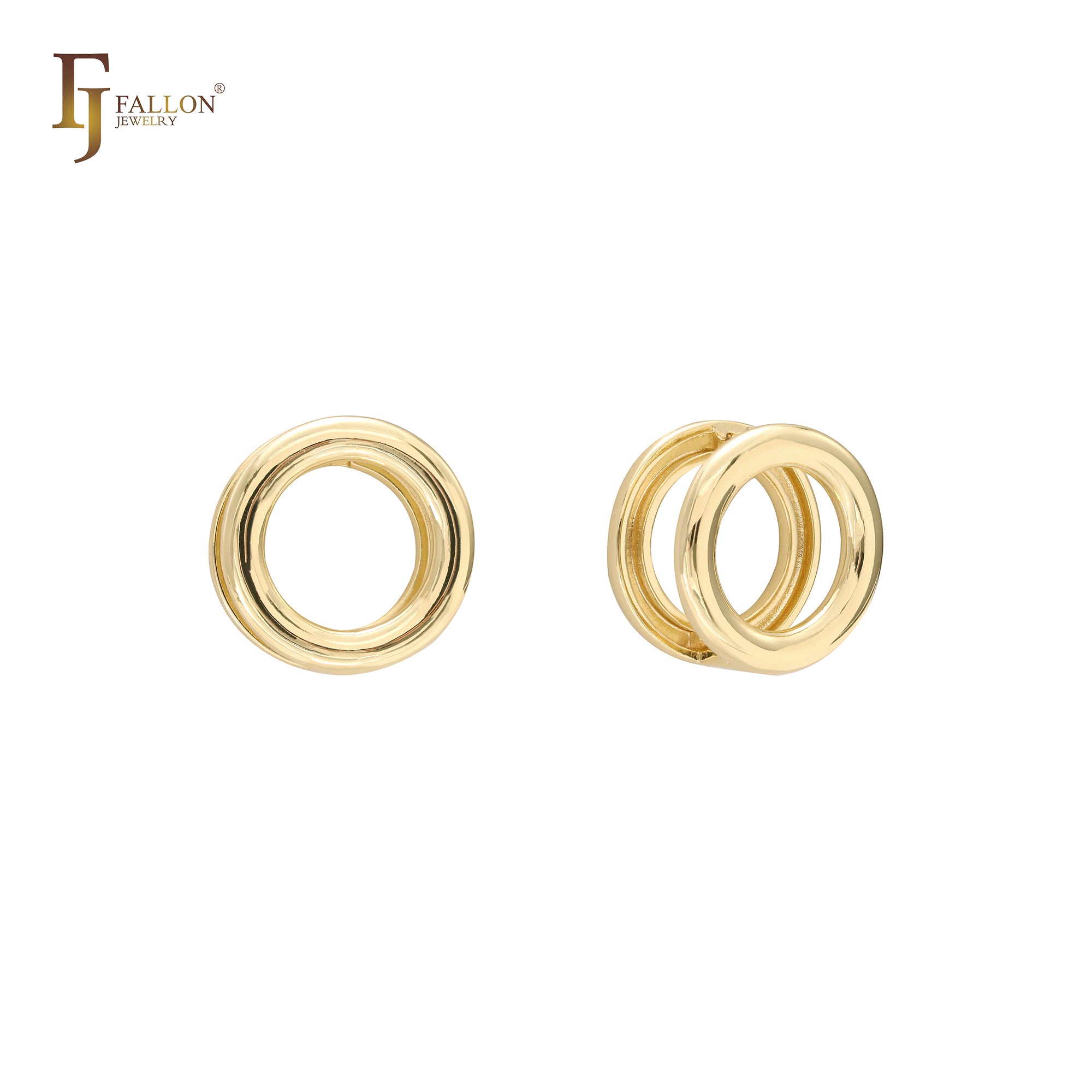 Double circles 14K Gold, Rose Gold, White Gold Huggie Earrings