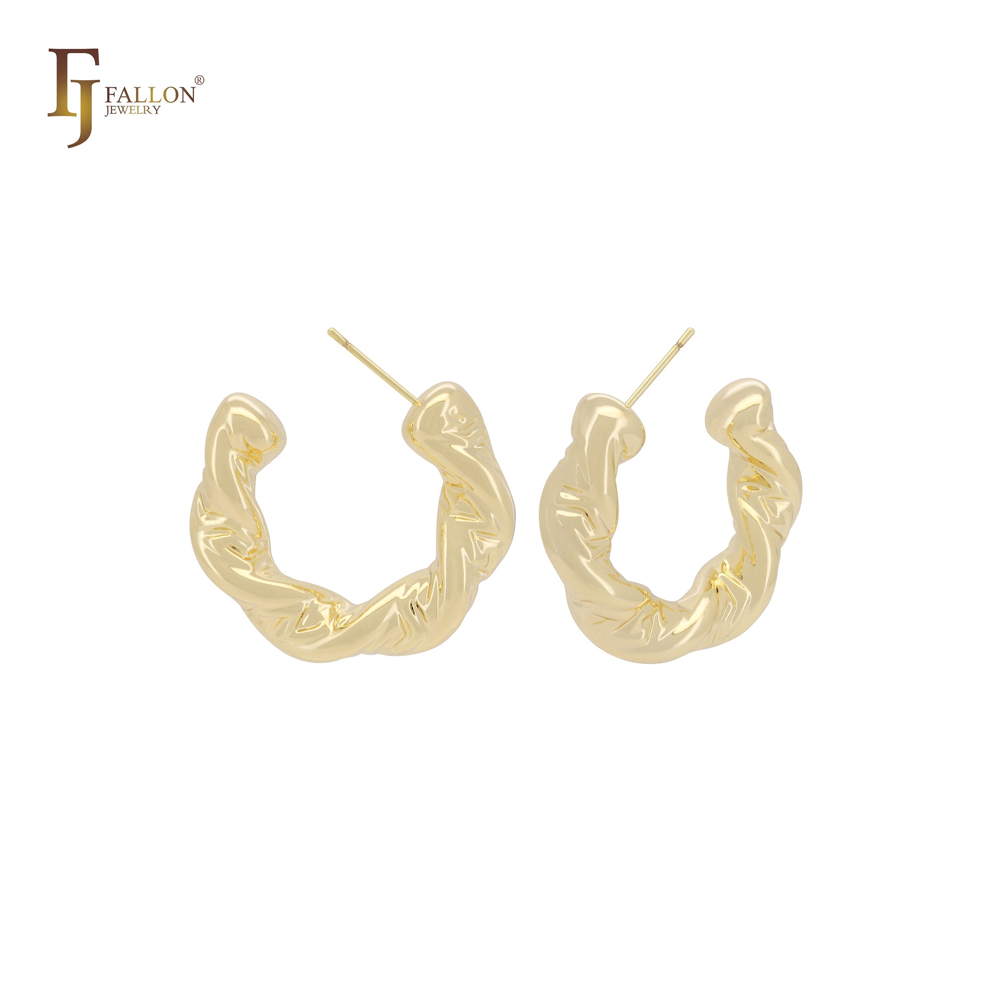 Twisted strangled rope C hoop 14K Gold, Rose Gold, White Gold Stud Earrings