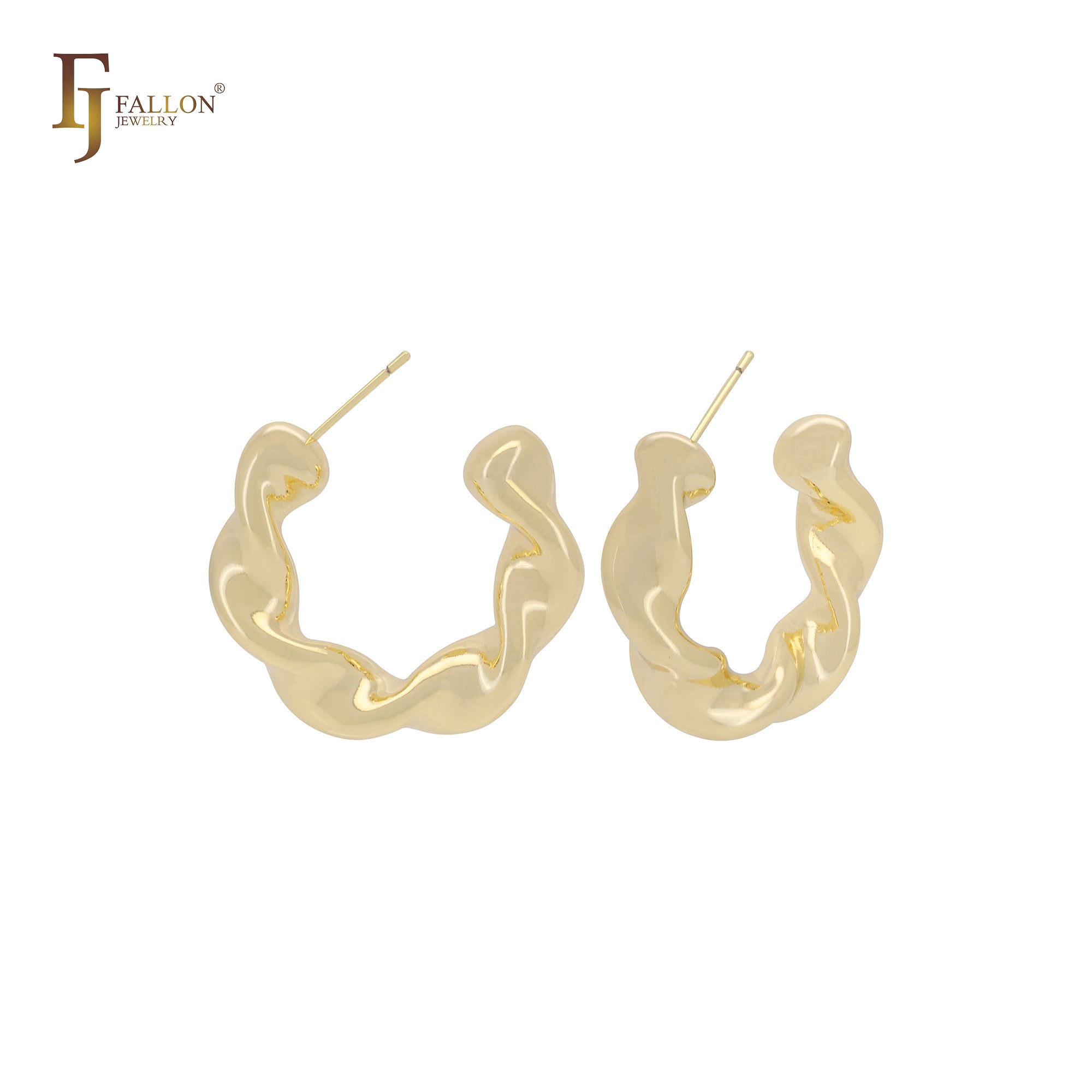 Twisted strangled glossy C hoop 14K Gold, Rose Gold, White Gold Stud Earrings
