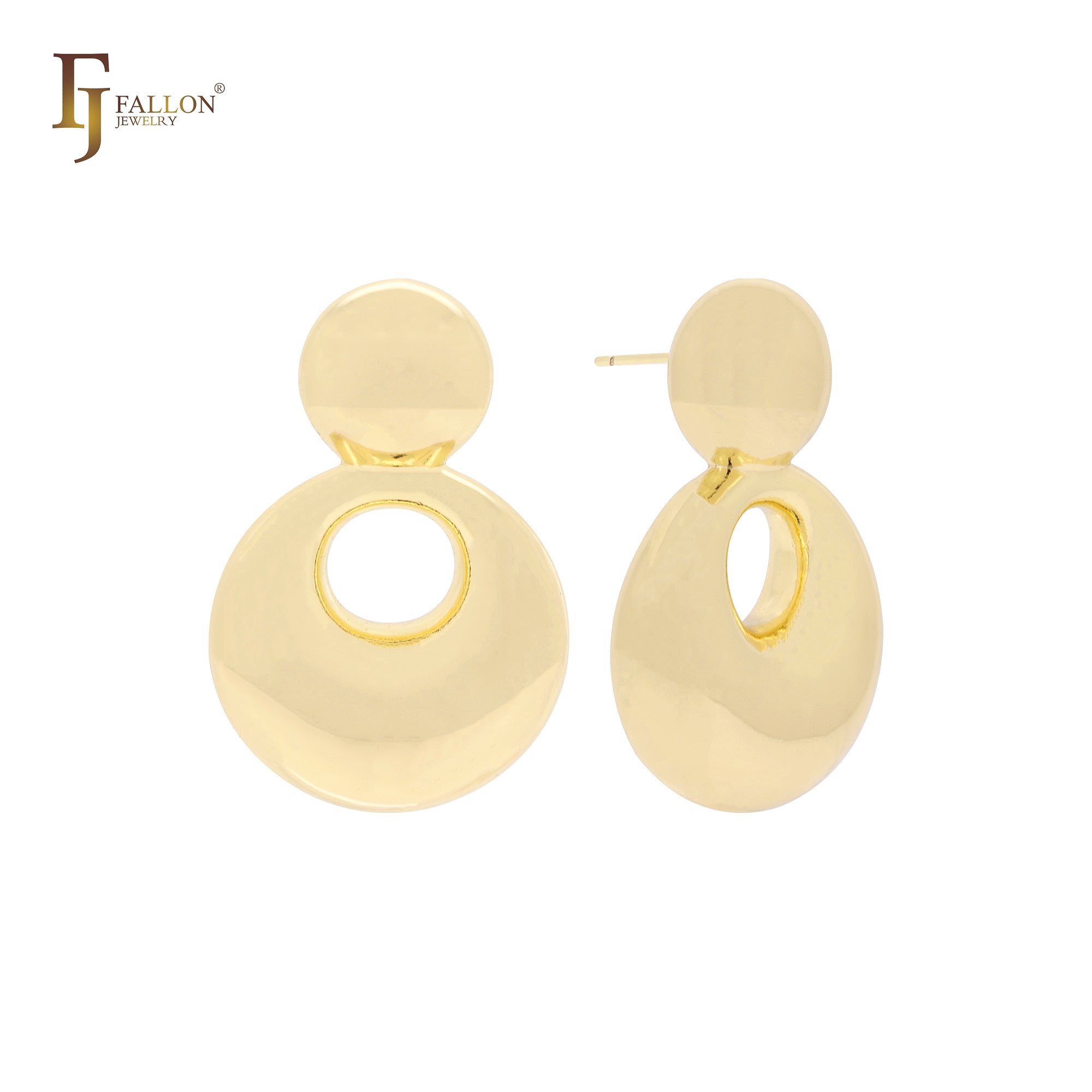Rounded circle and circle 14K Gold, Rose Gold, White Gold Stud Earrings
