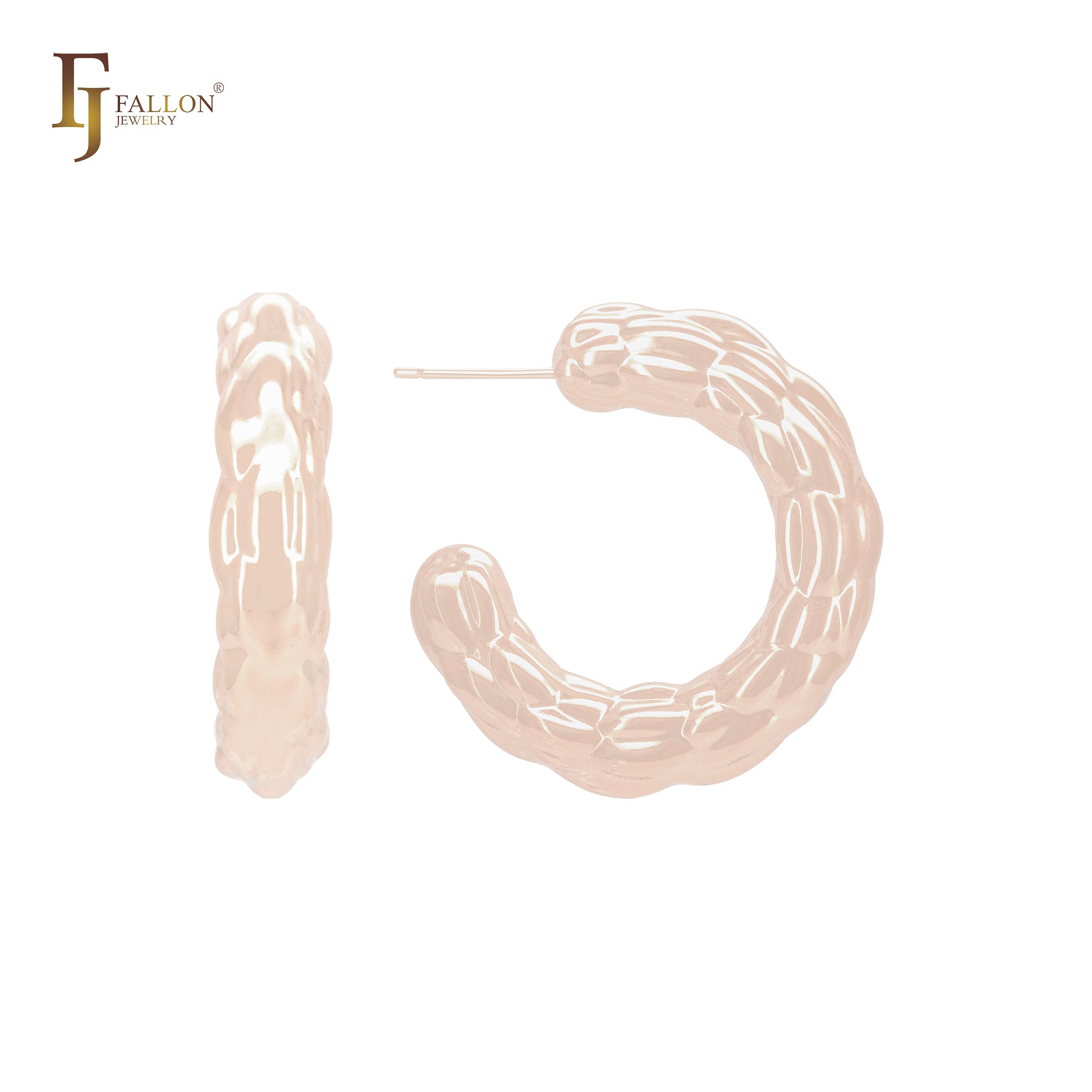 Dotted shaped C Hoop 14K Gold, Rose Gold, White Gold Stud Earrings