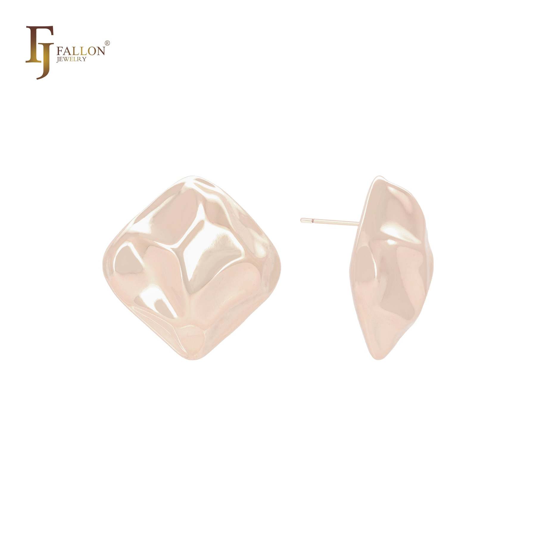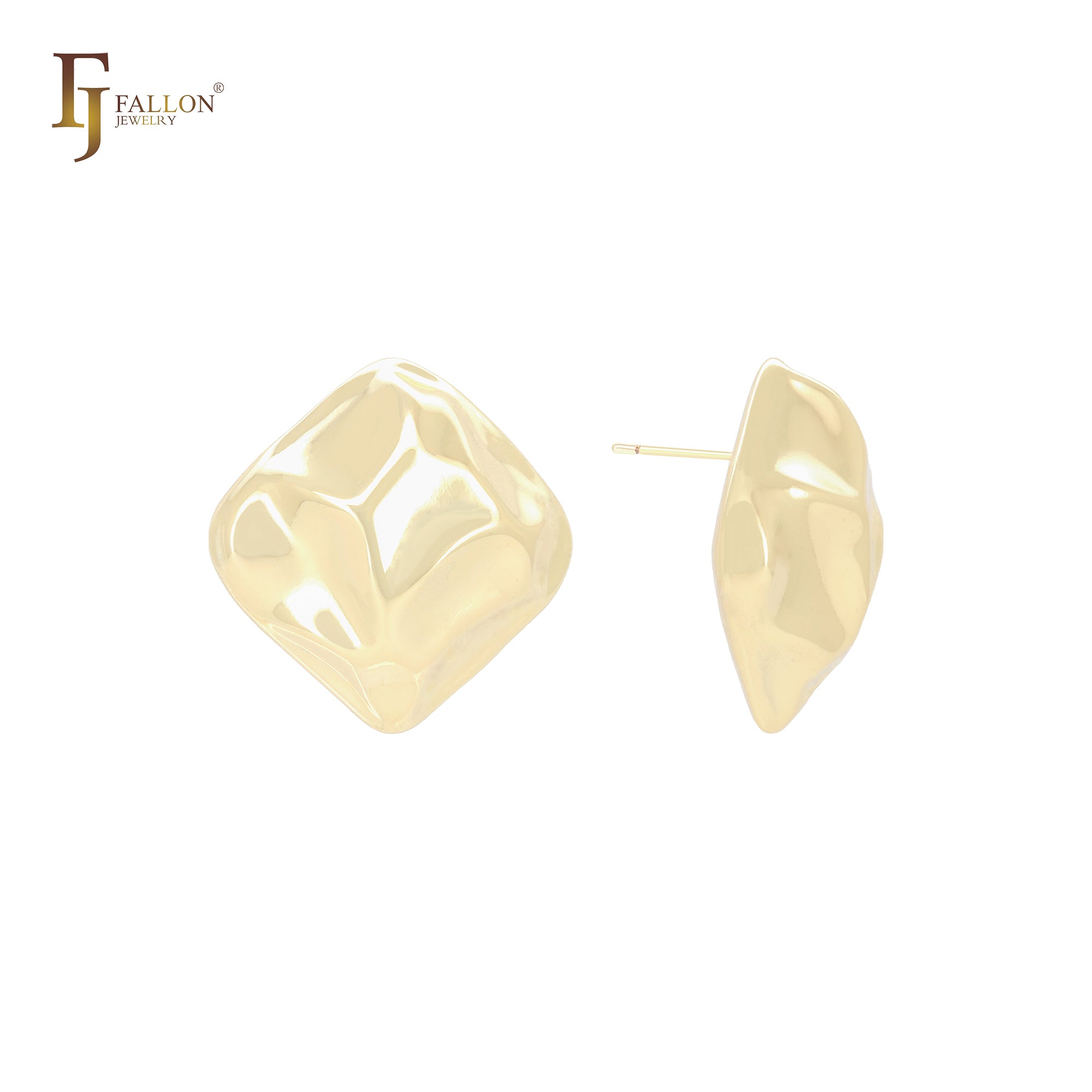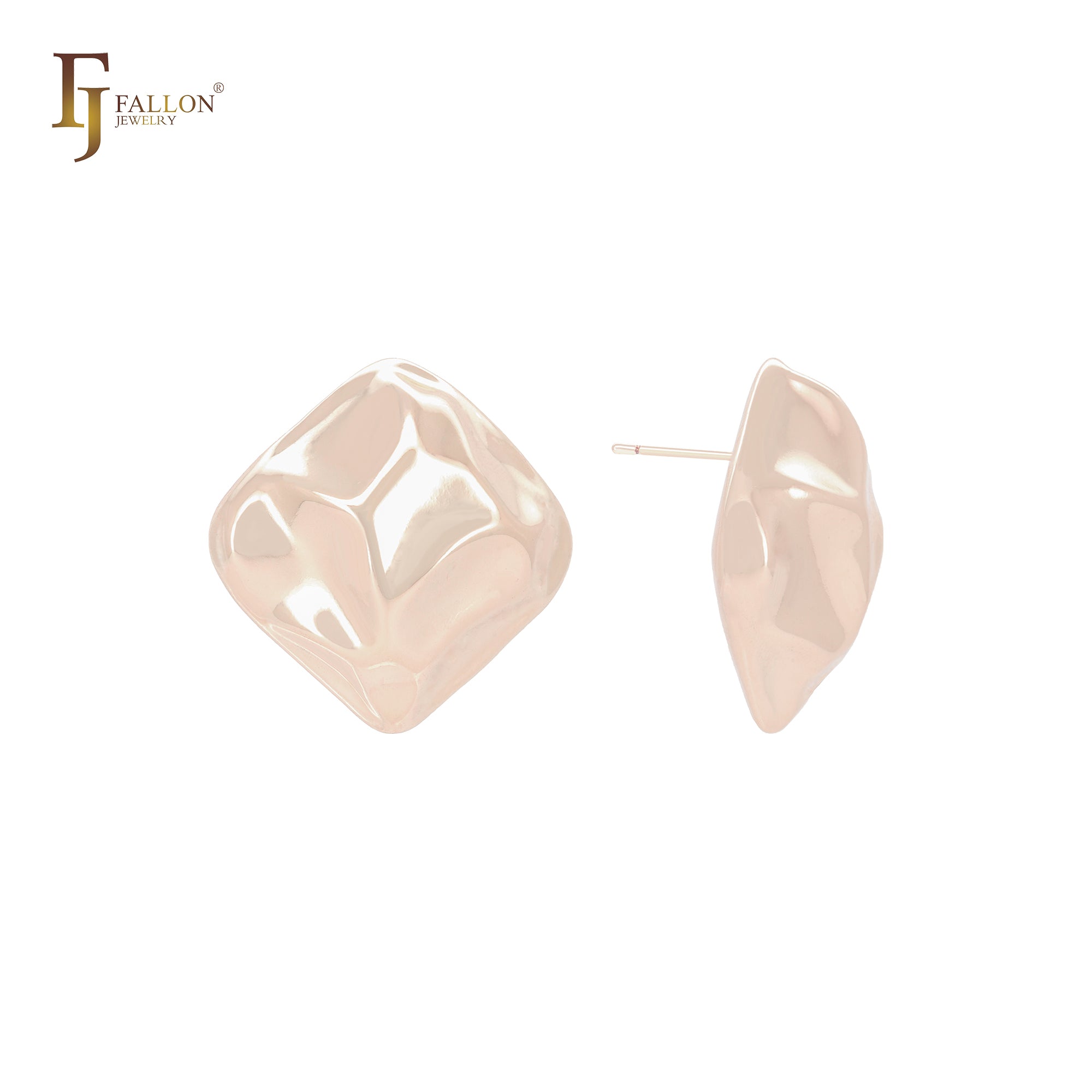 Rhombus nugget shaped 14K Gold, Rose Gold, White Gold Stud Earrings