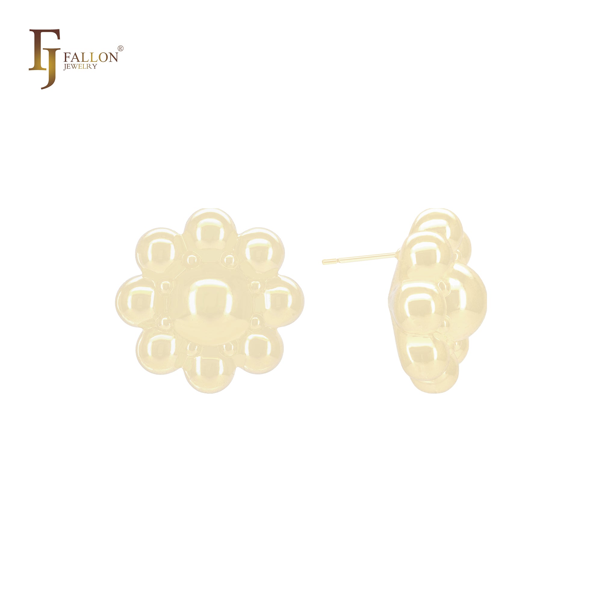 Eight bubbles rounded petals sunflower shape 14K Gold, Rose Gold, White Gold Stud Earrings