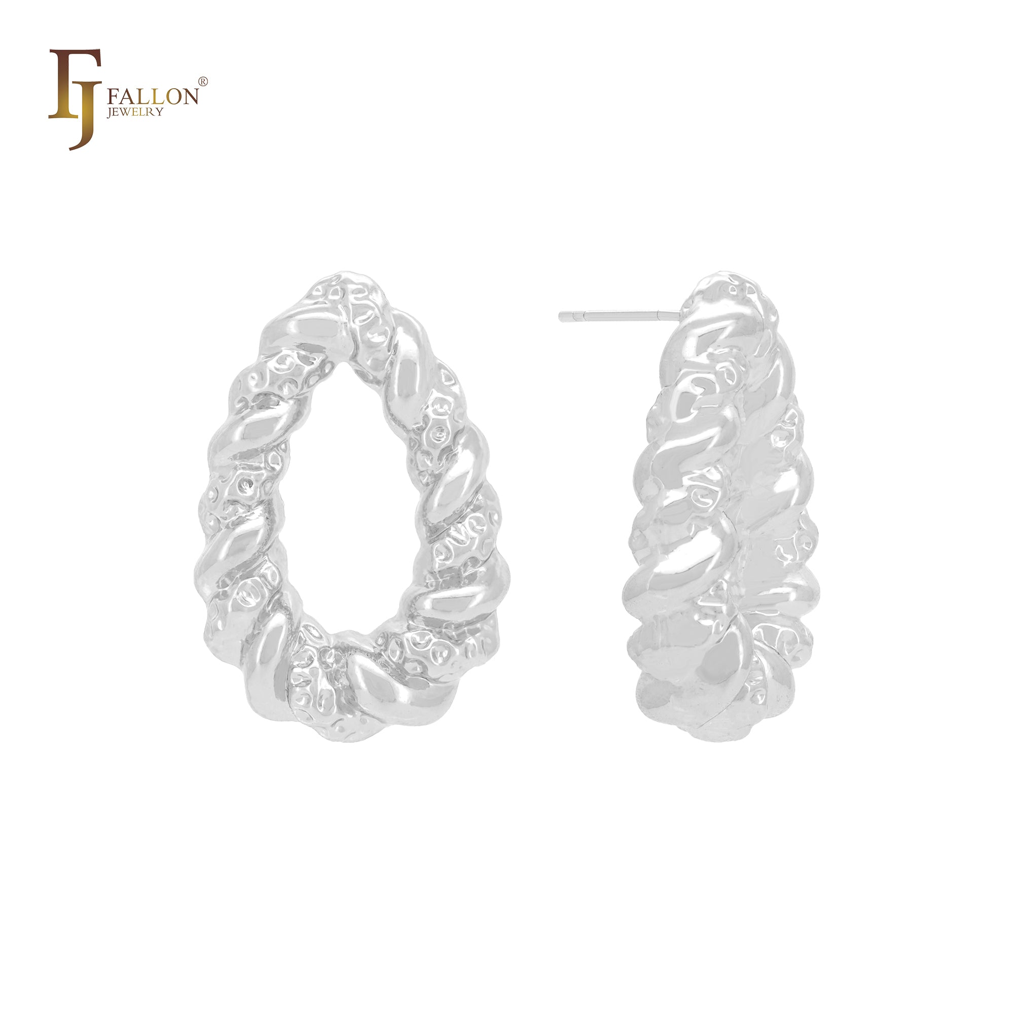 Teardrop ring of irregular textured 14K Gold, Rose Gold, White Gold Stud Earrings