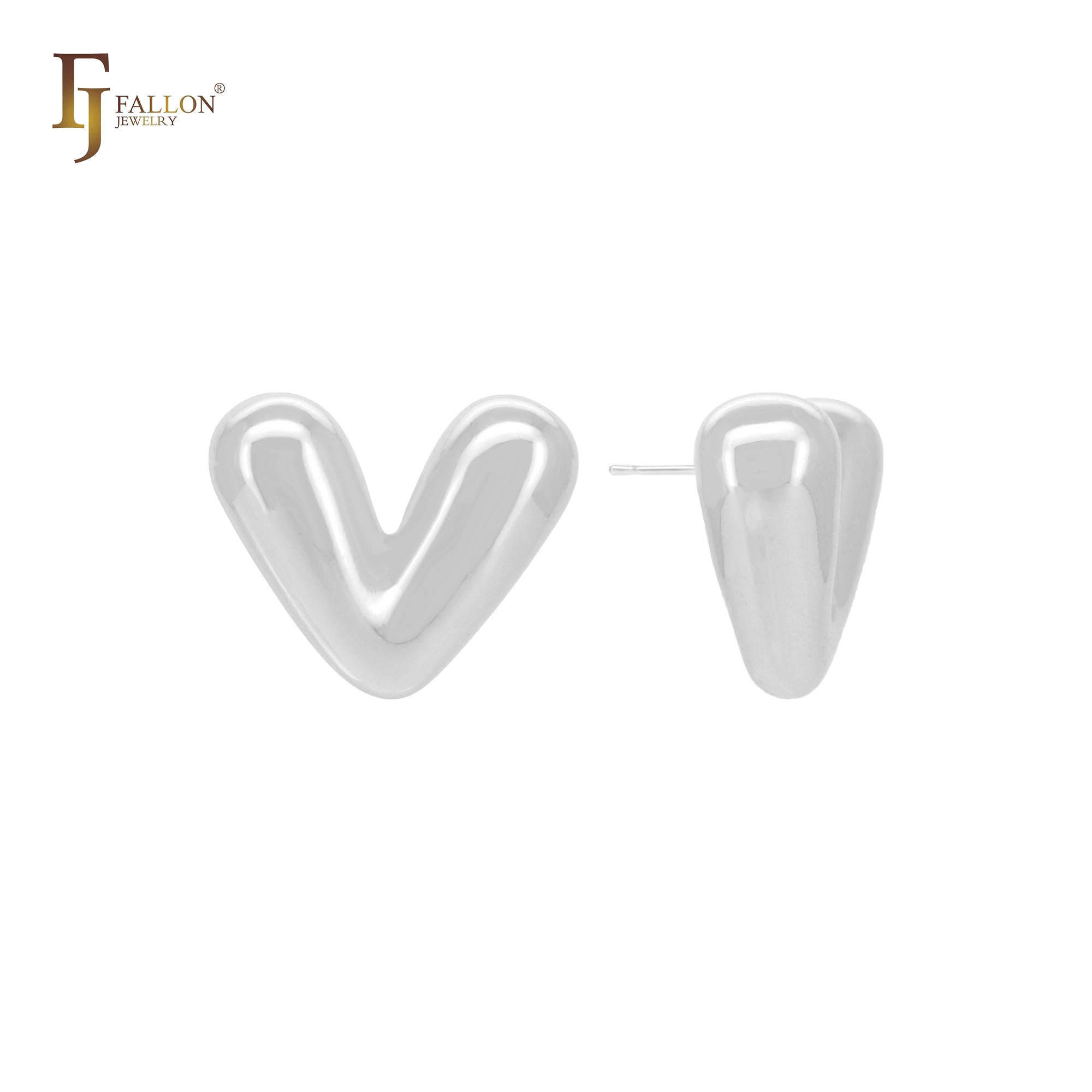 Glossy rounded shaped of V 14K Gold, Rose Gold, White Gold Stud Earrings