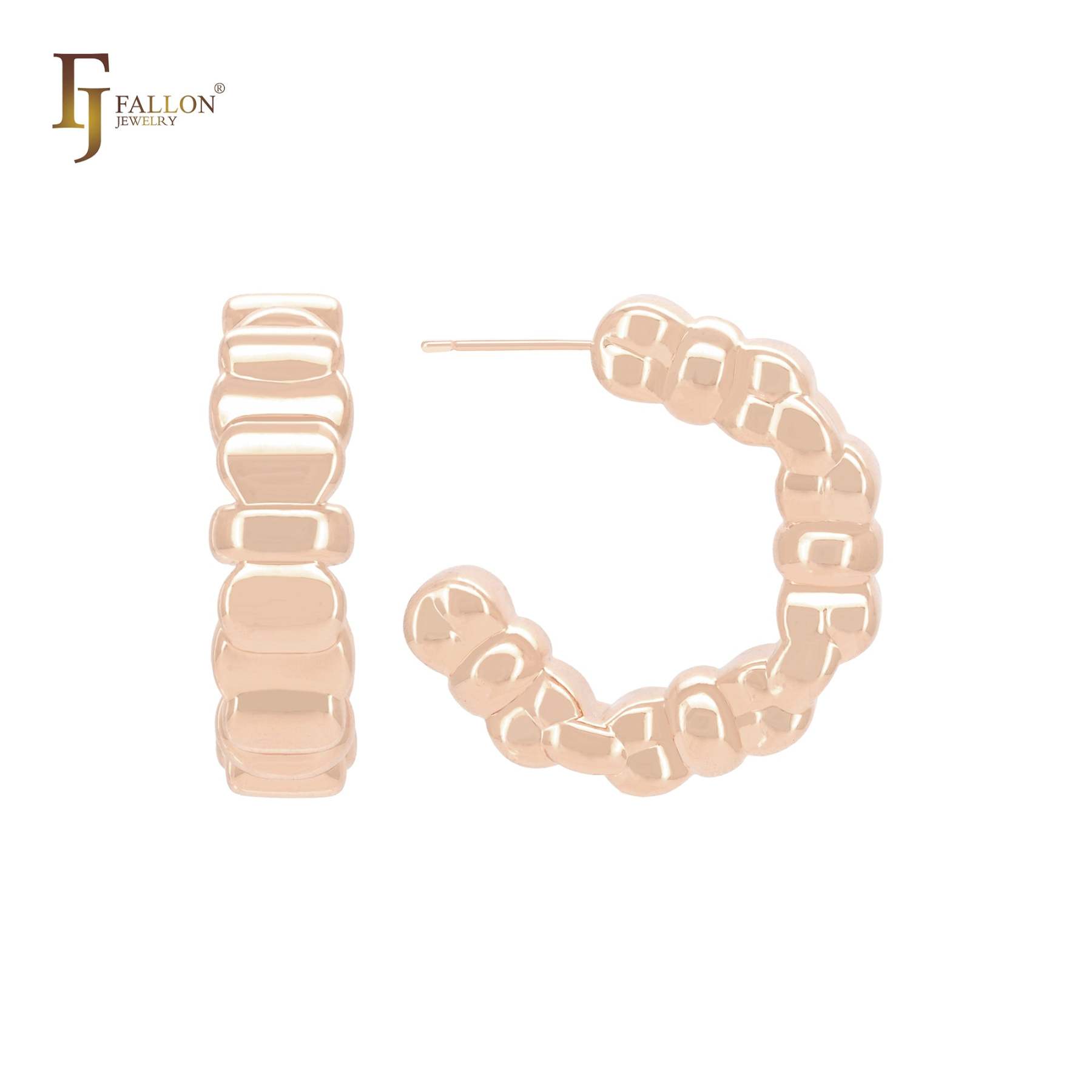Vertical beads nugget linking glossy 14K Gold, Rose Gold, White Gold Stud Earrings
