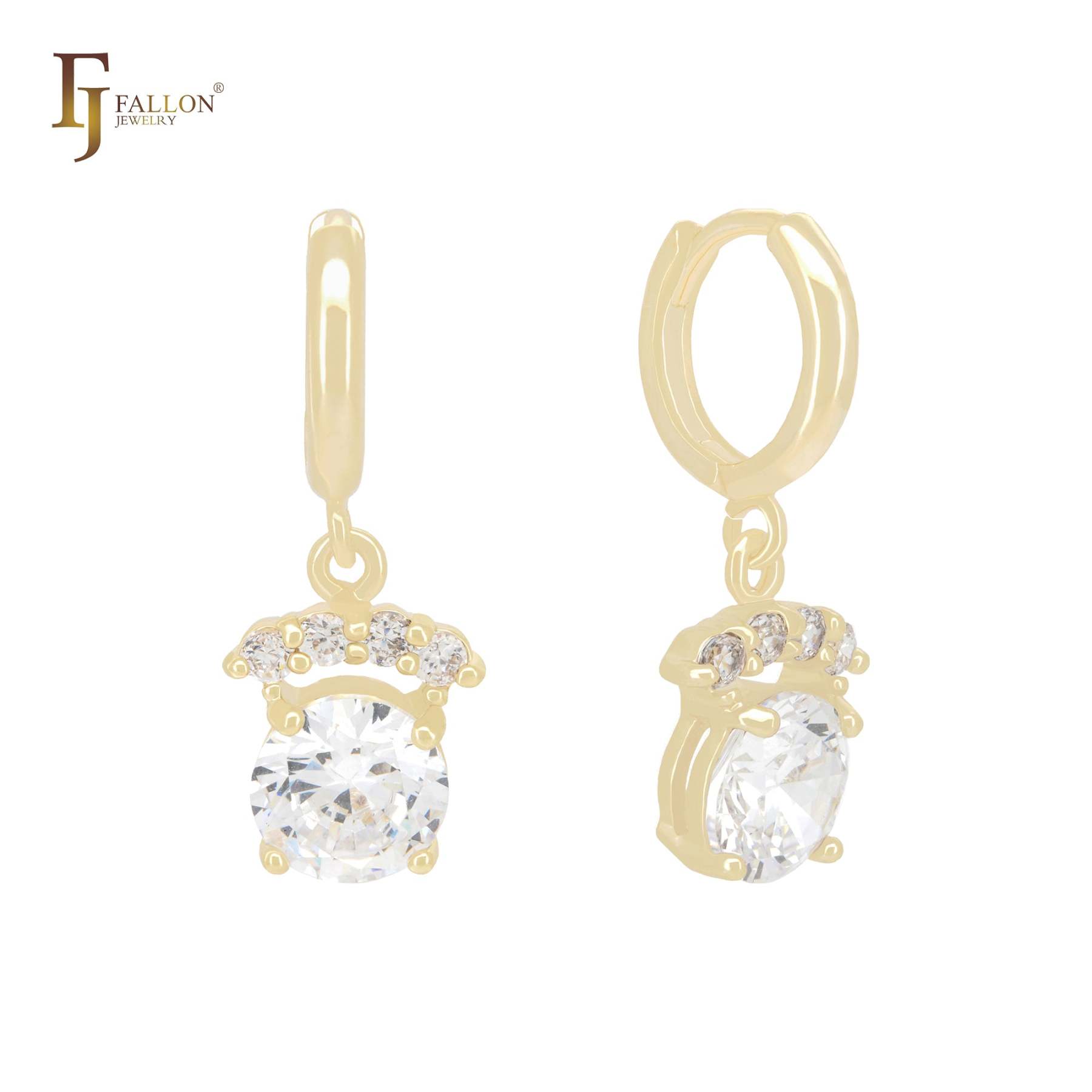 Dangling white CZs with cluster white CZs 14K Gold Huggie Earrings