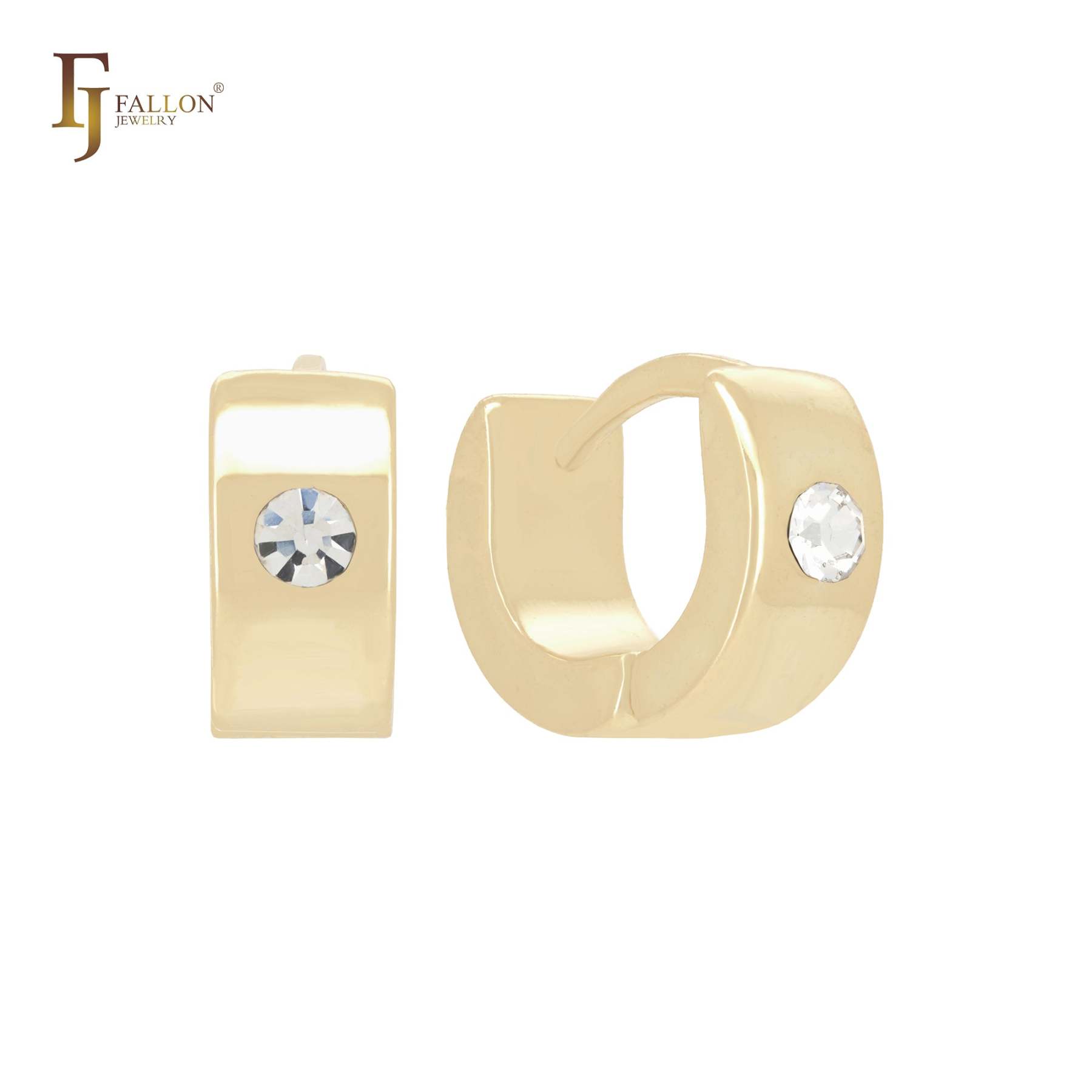 Tiny single solitaire rounded white CZs 14K Gold Huggie Earrings