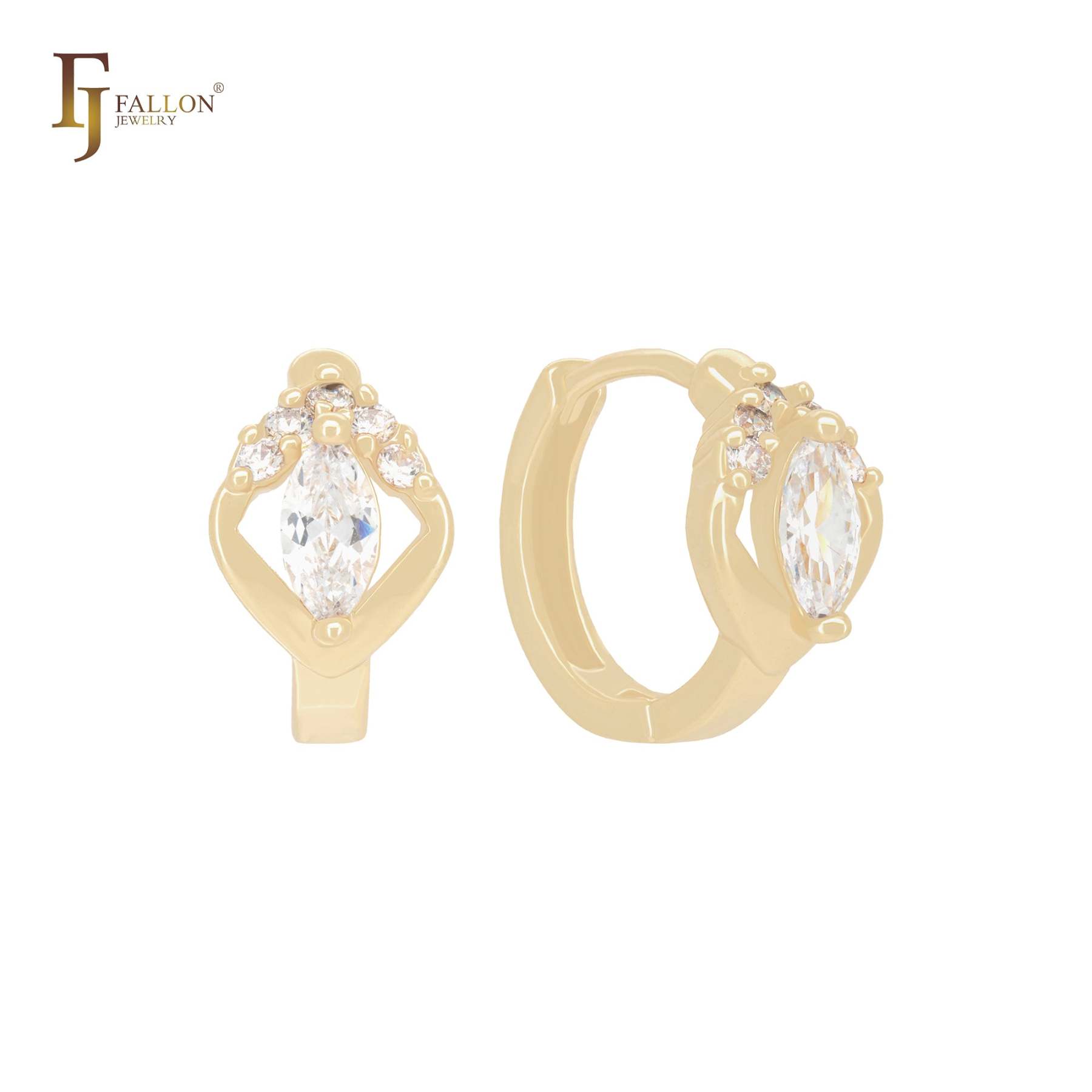 Marquise cluster white CZs 14K Gold Huggie Earrings