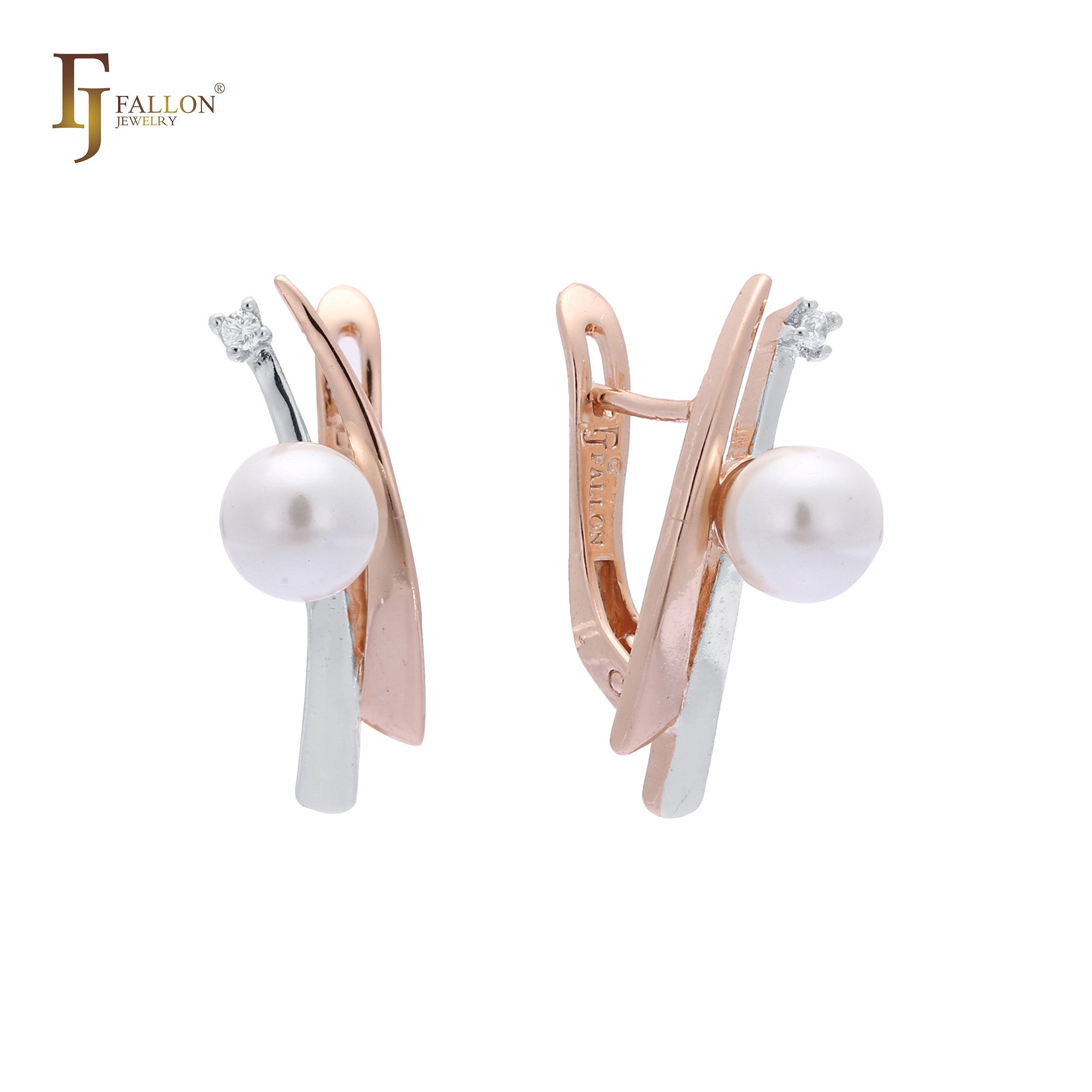 Pearl earrings in 14K Gold, Rose Gold, two tone plating colors