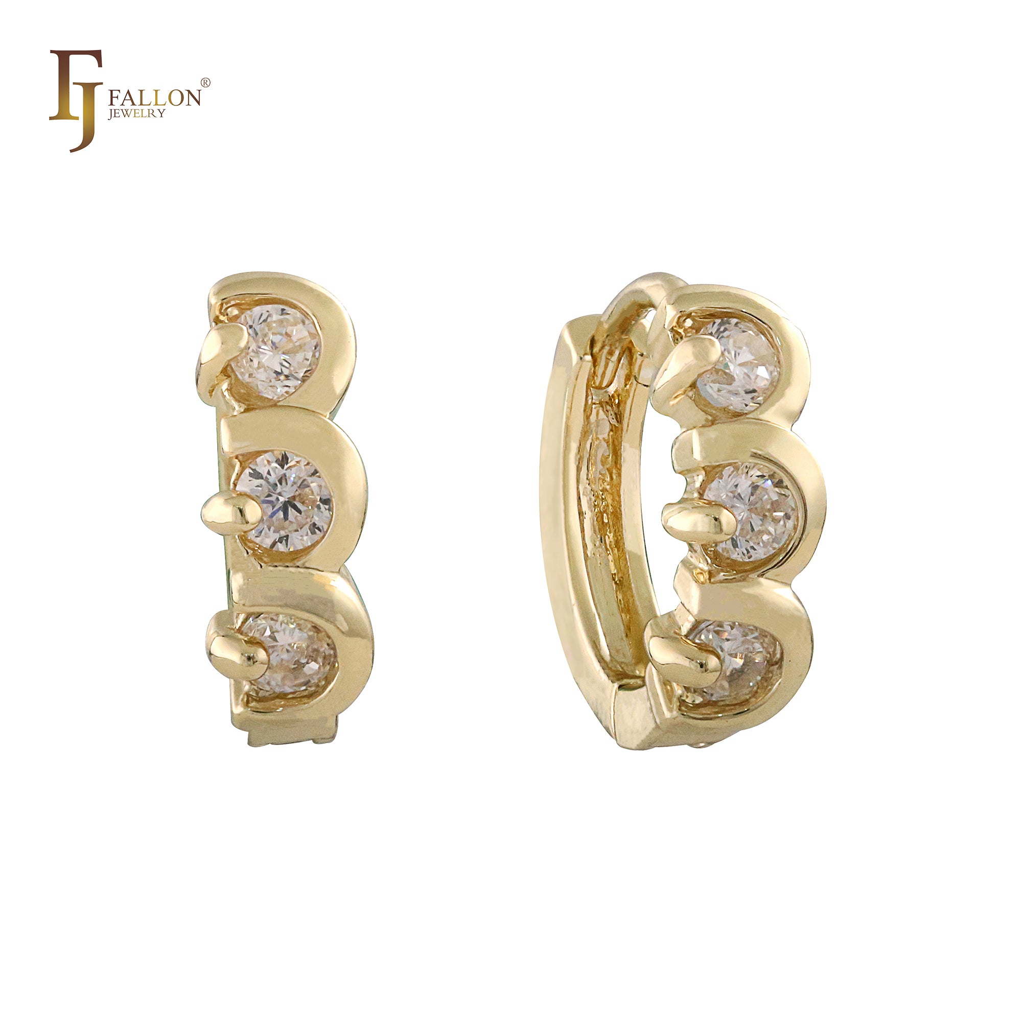 Three stones Rose Gold, 14K Gold huggie earrings