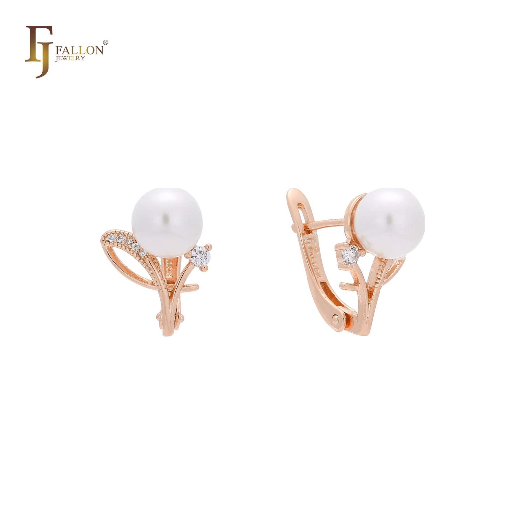 Pearl earrings in 14K Gold, Rose Gold, two tone plating colors