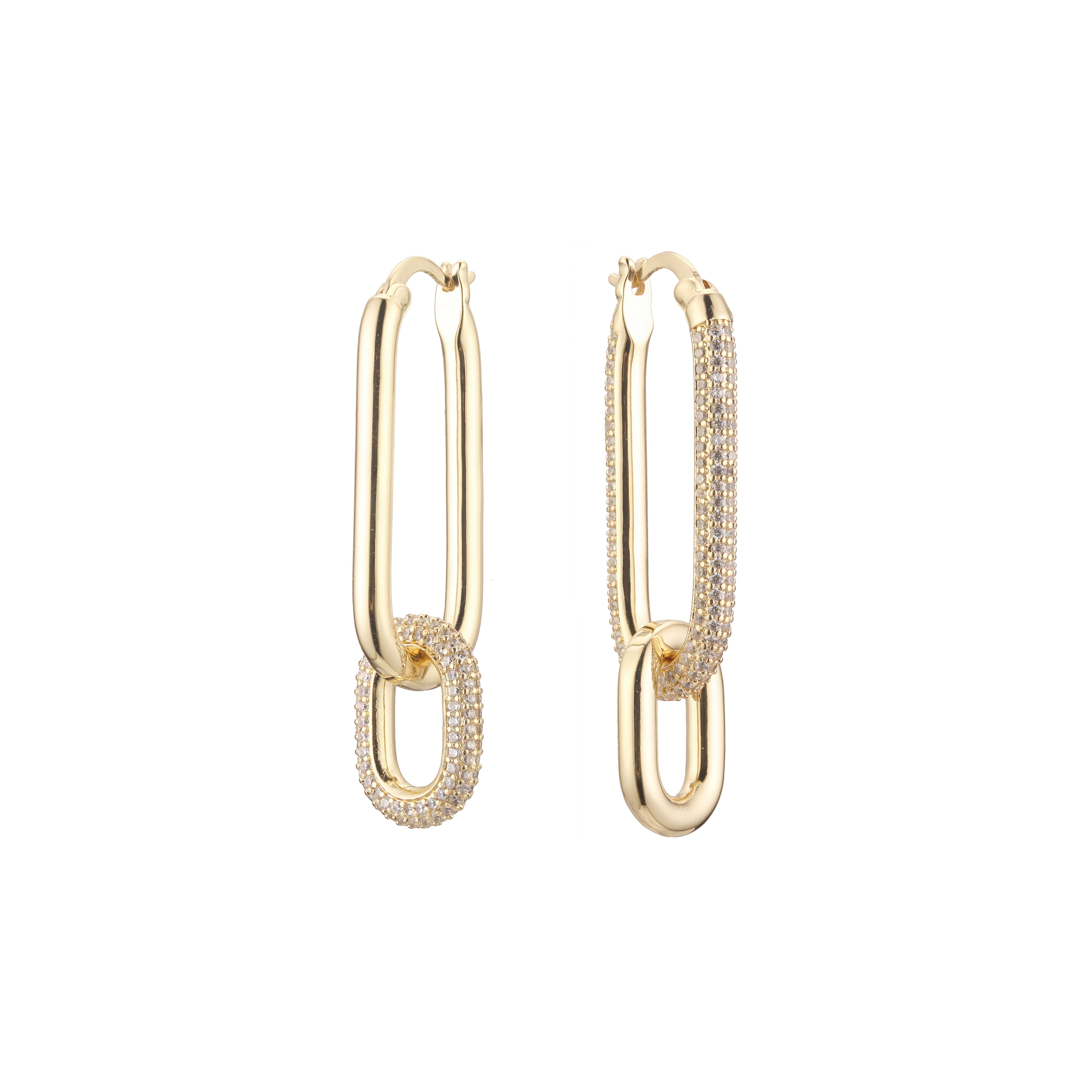 Double hoop paperclip earrings in 14K Gold, Rose Gold plating colors
