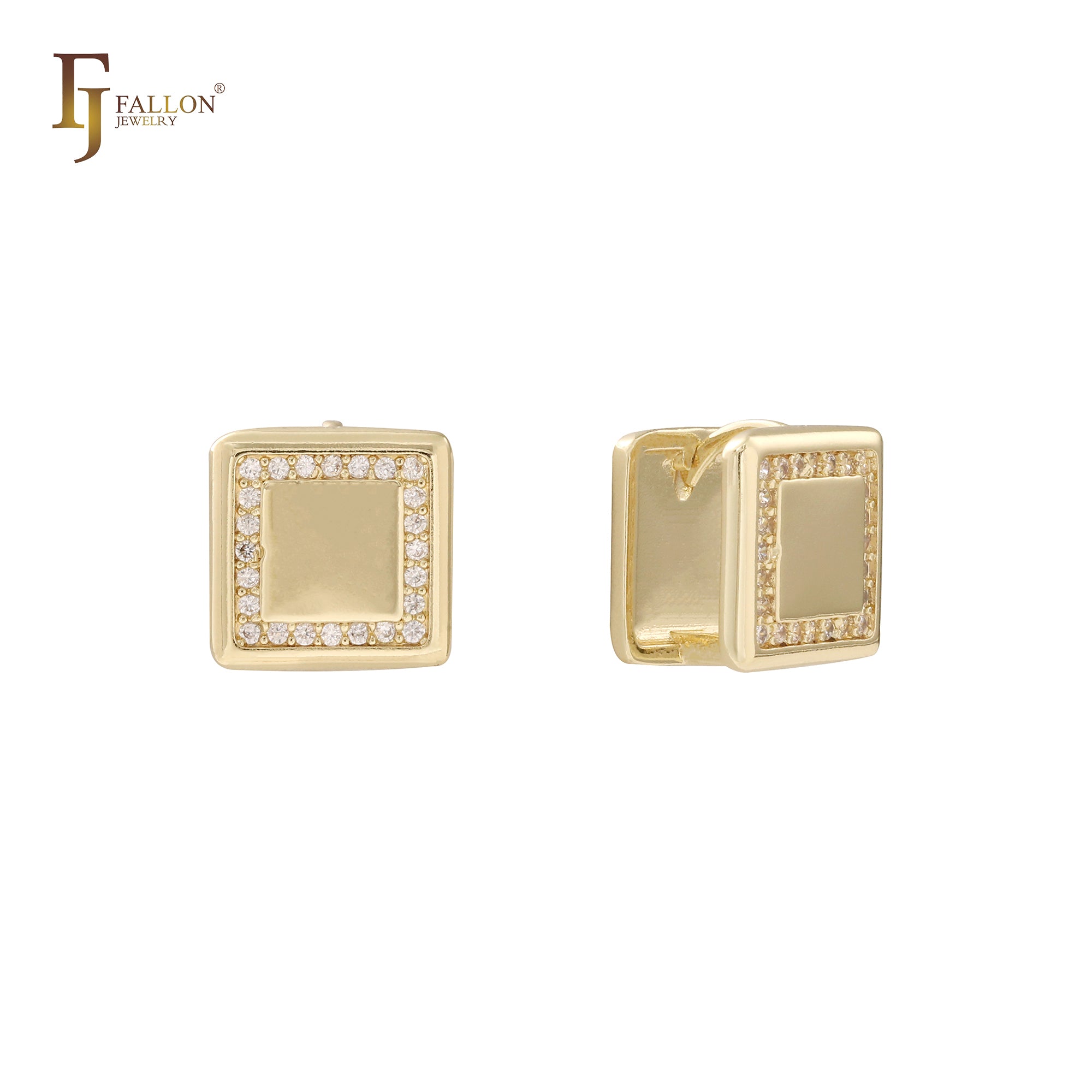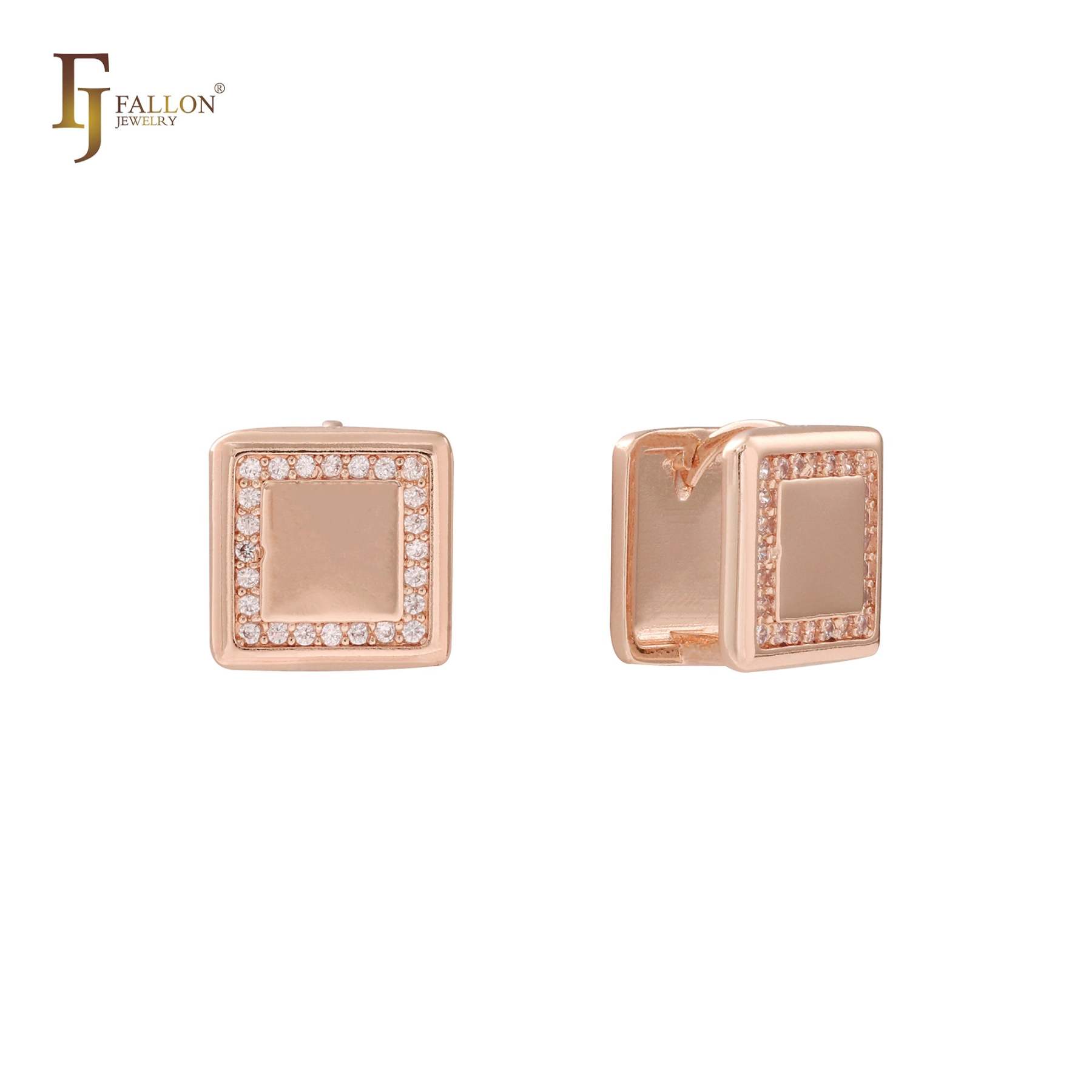 Squared Halo white CZs cluster 14K Gold, Rose Gold huggie earrings