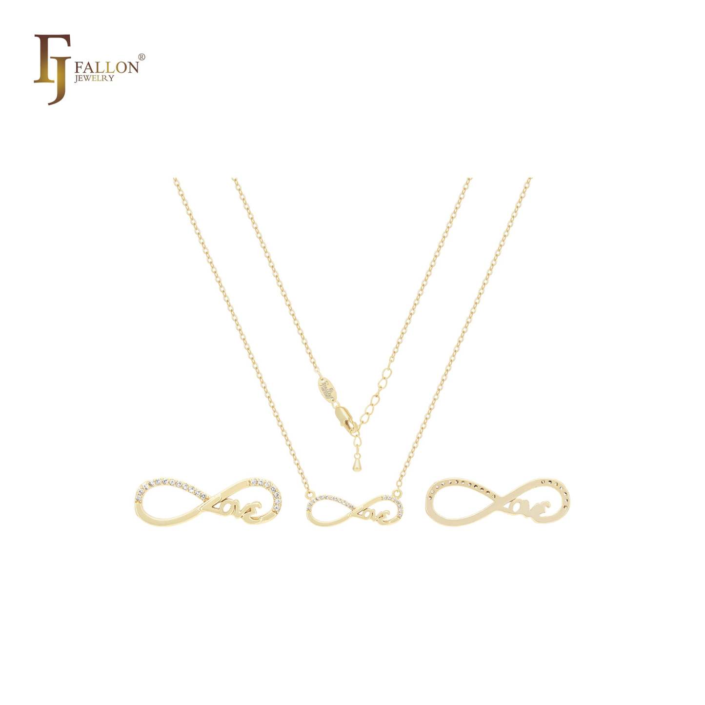 Infinity of love with white CZs 14K Gold Necklace