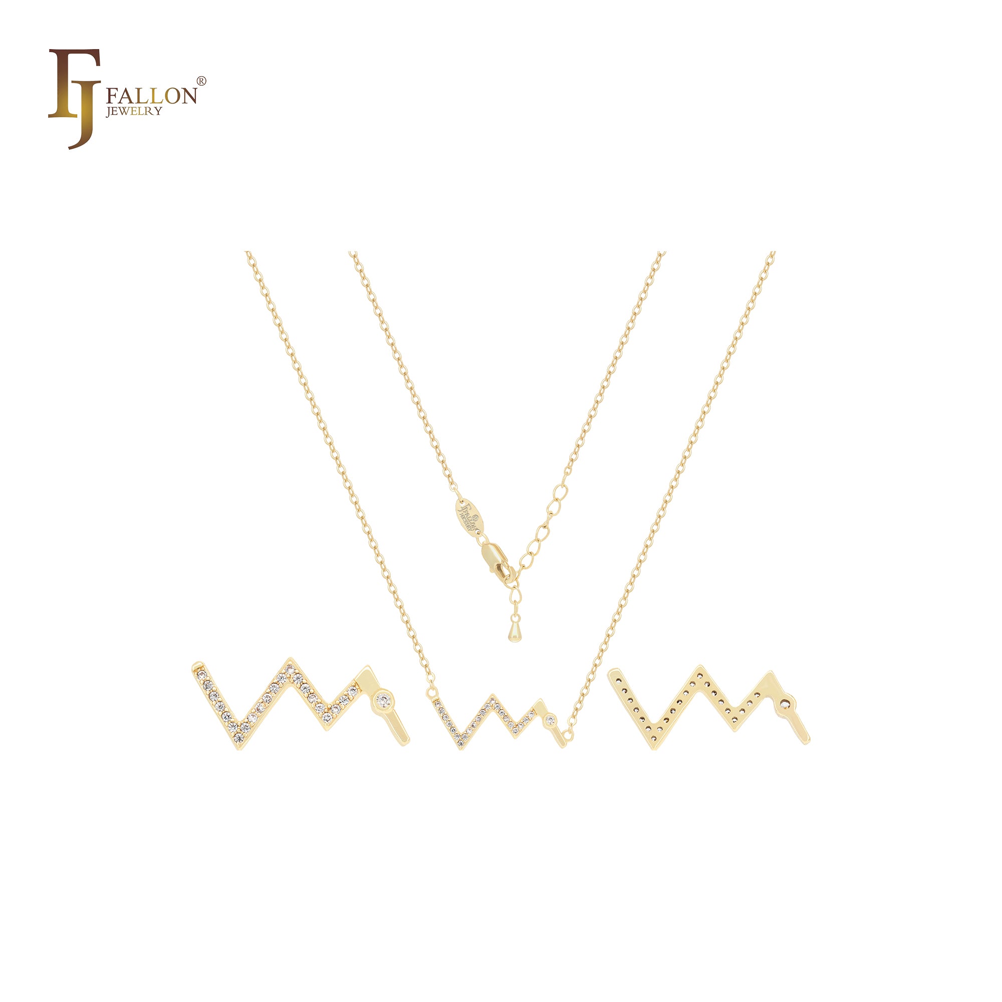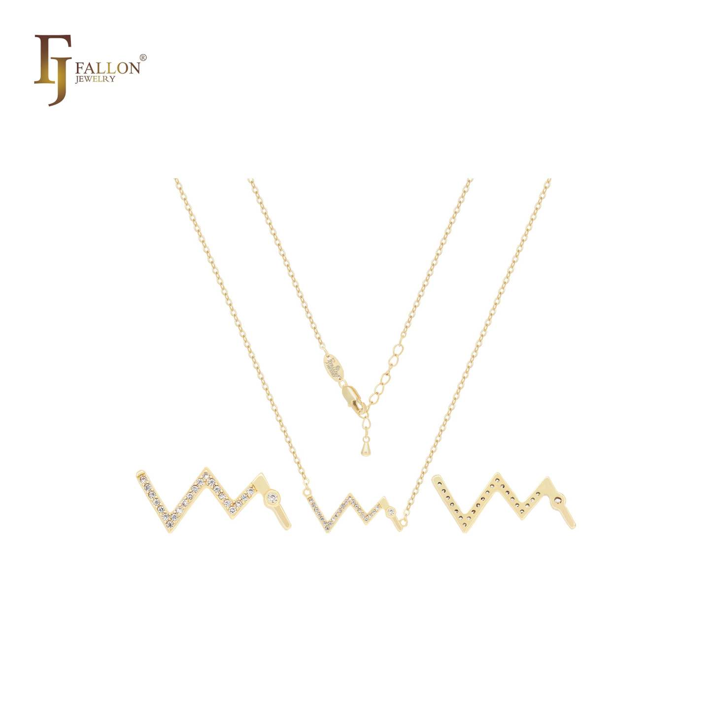 Zigzac of white CZs lightning sign 14K Gold Necklace