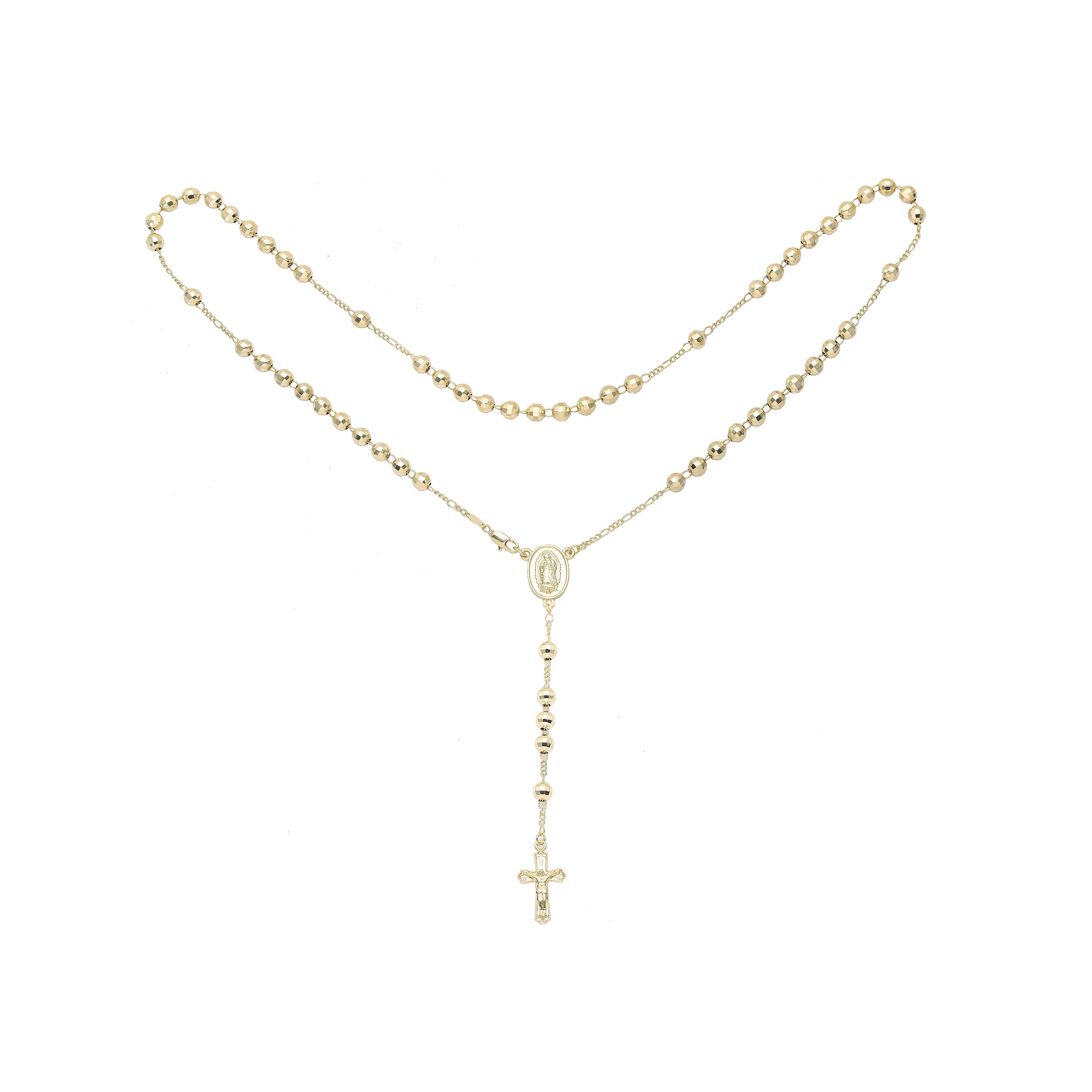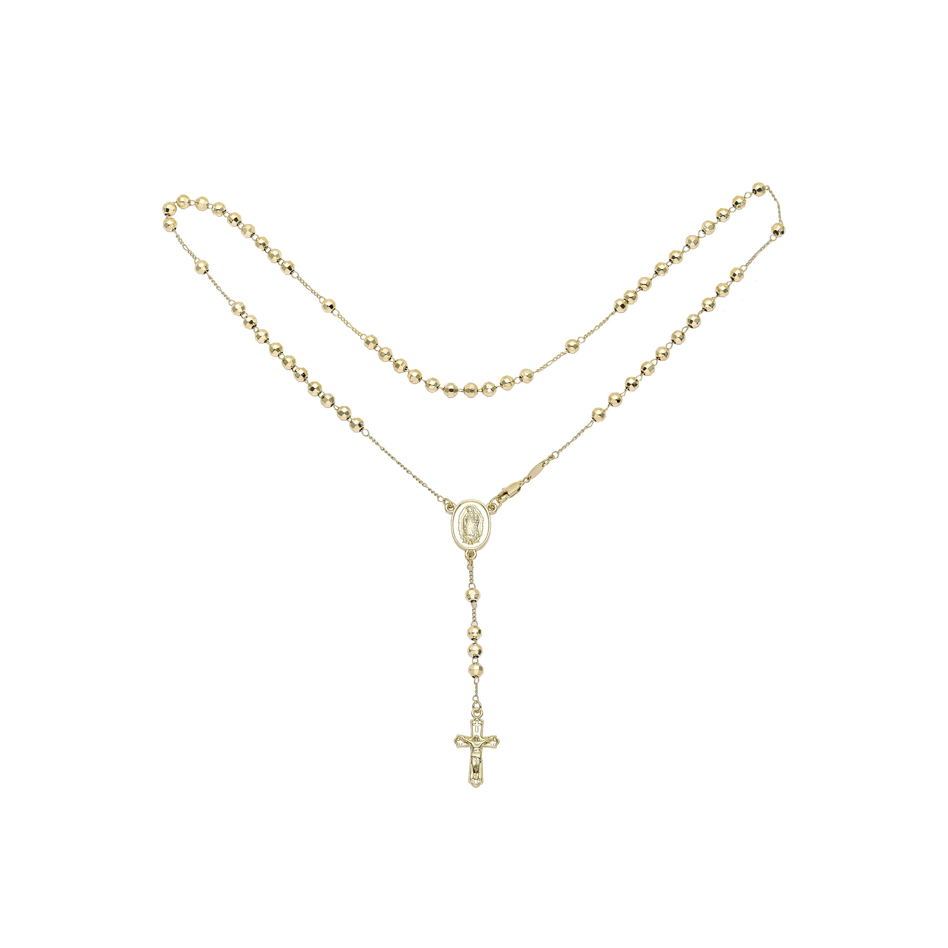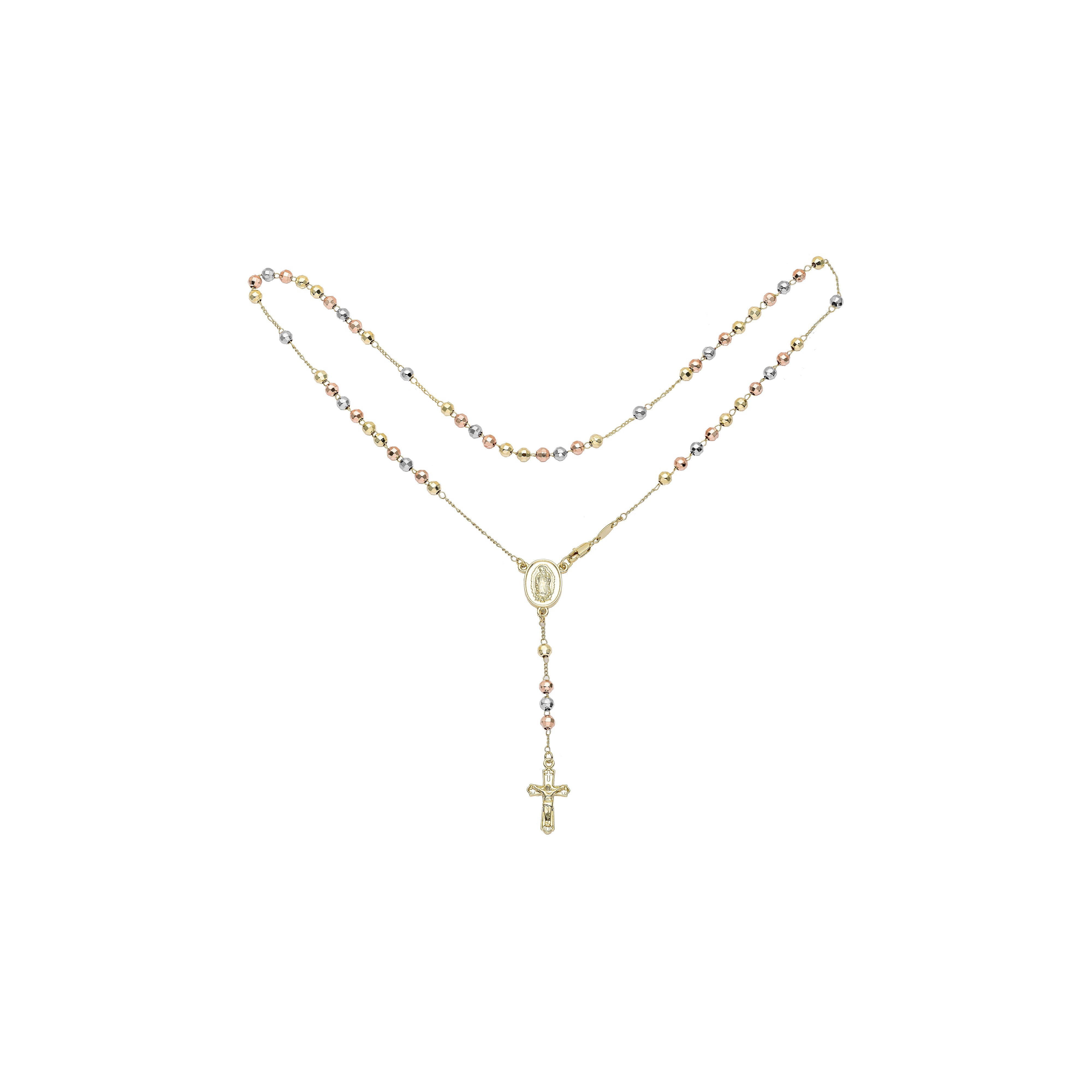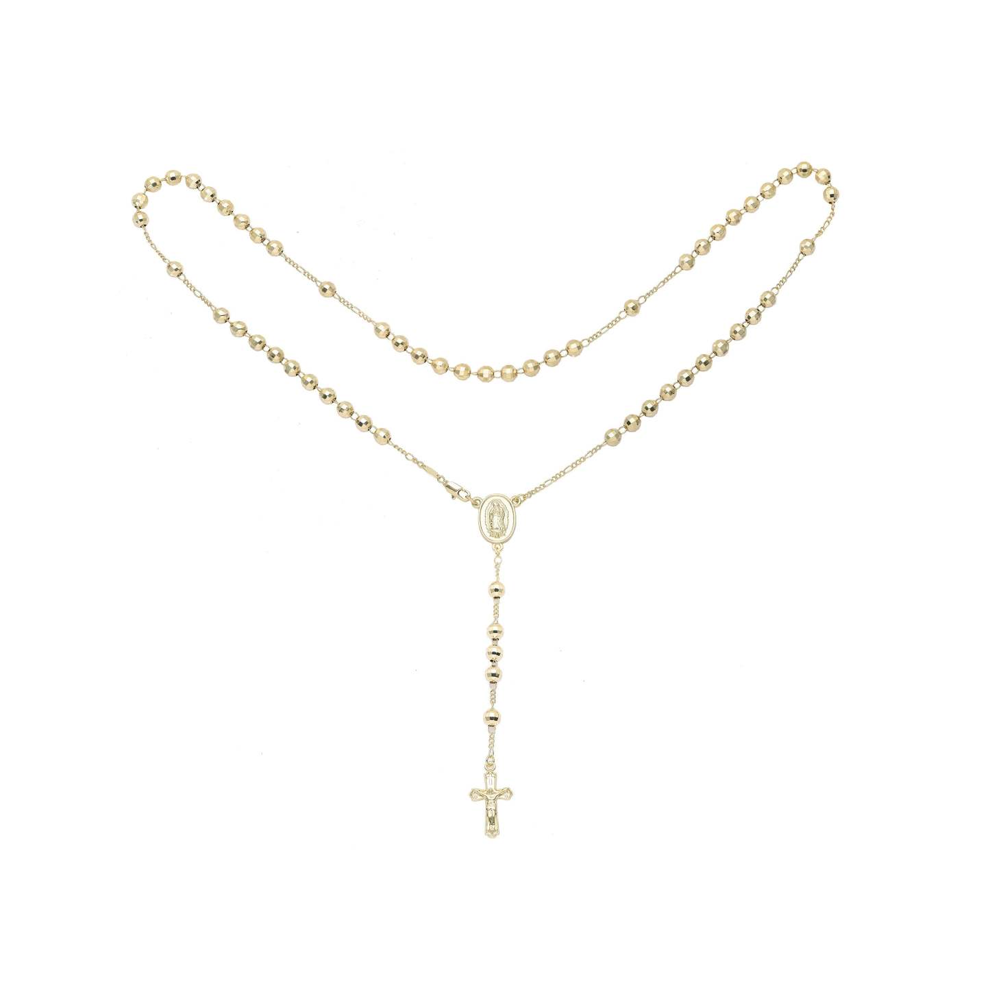 Italian Virgin of Guadalupe Catholic Rosary Necklace (Faceted Disco Beads) plated in 14K Gold, 14K Gold two tone