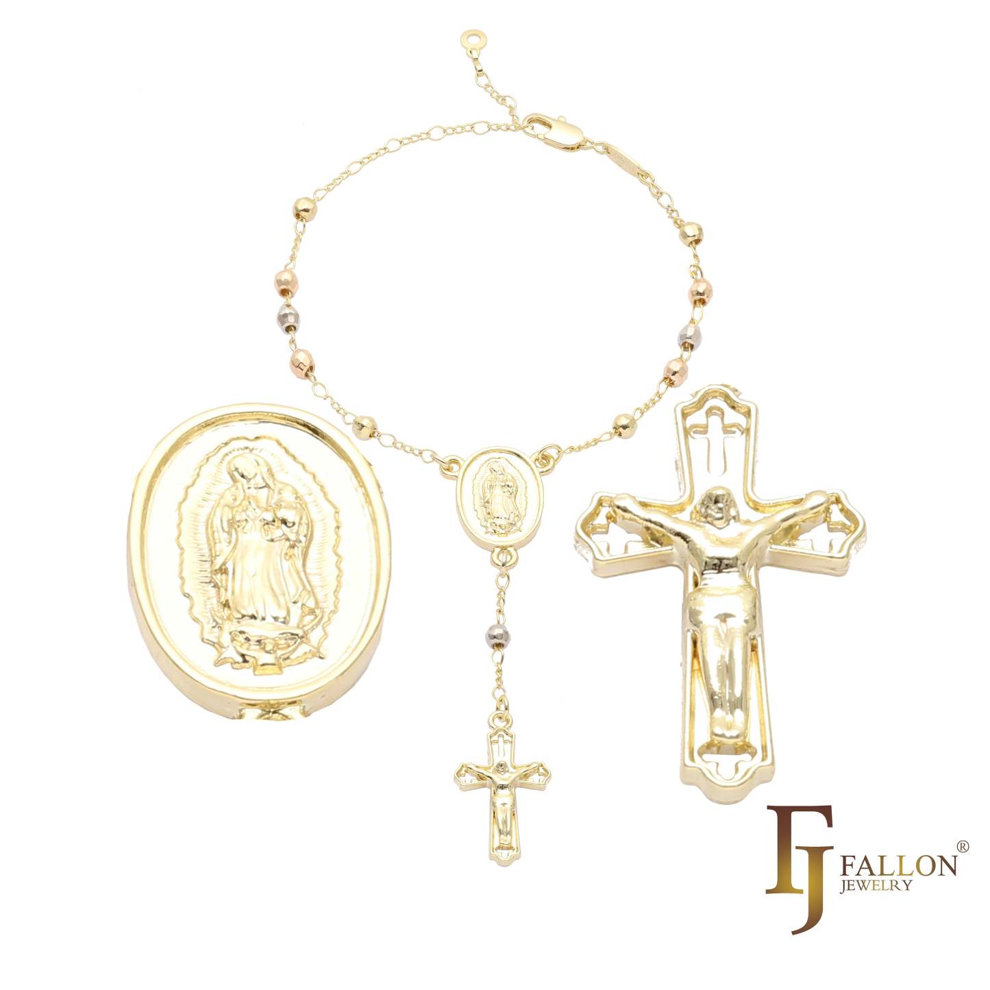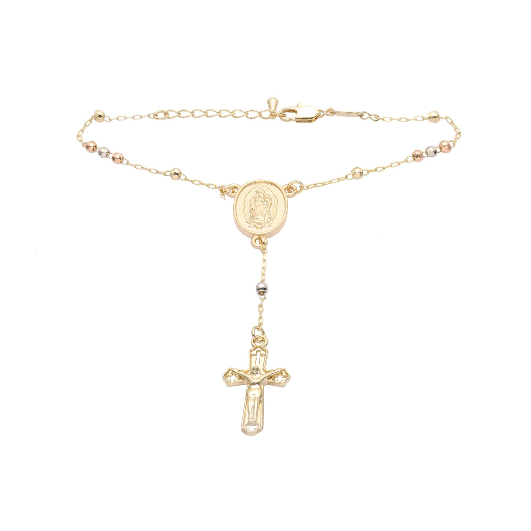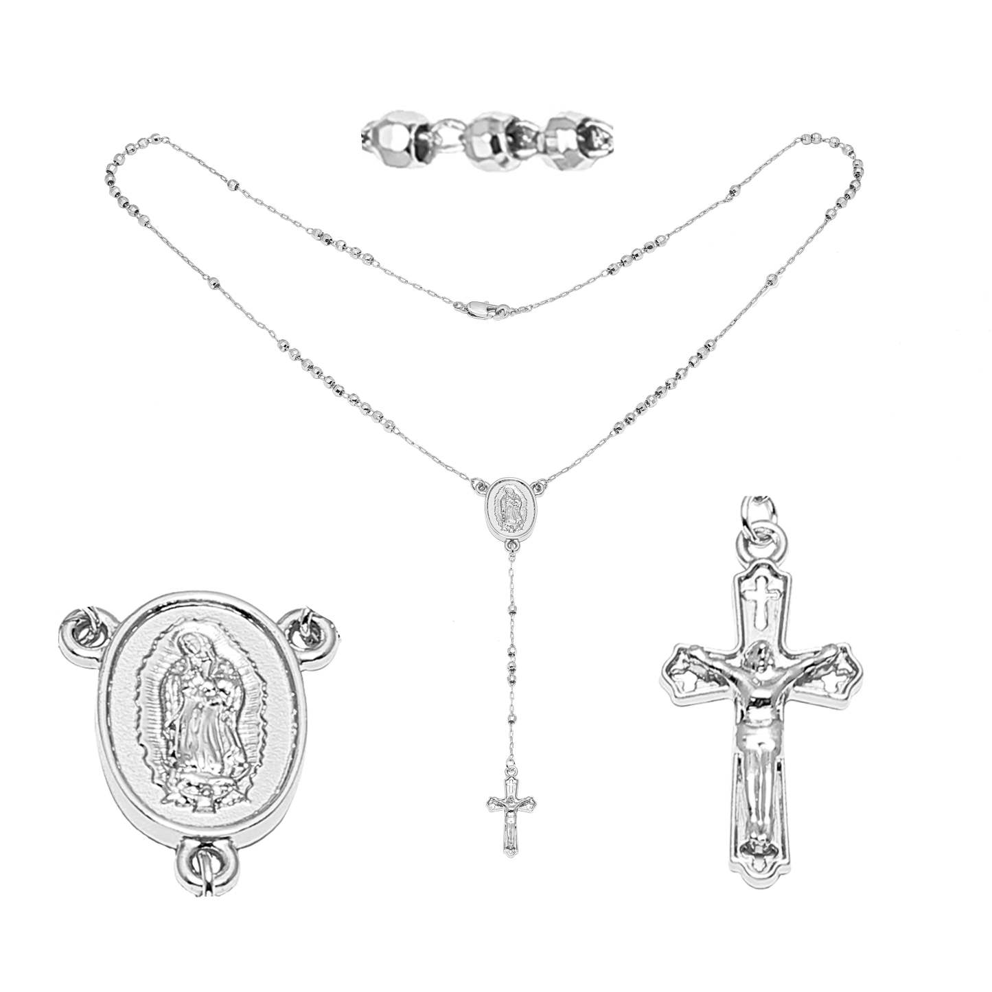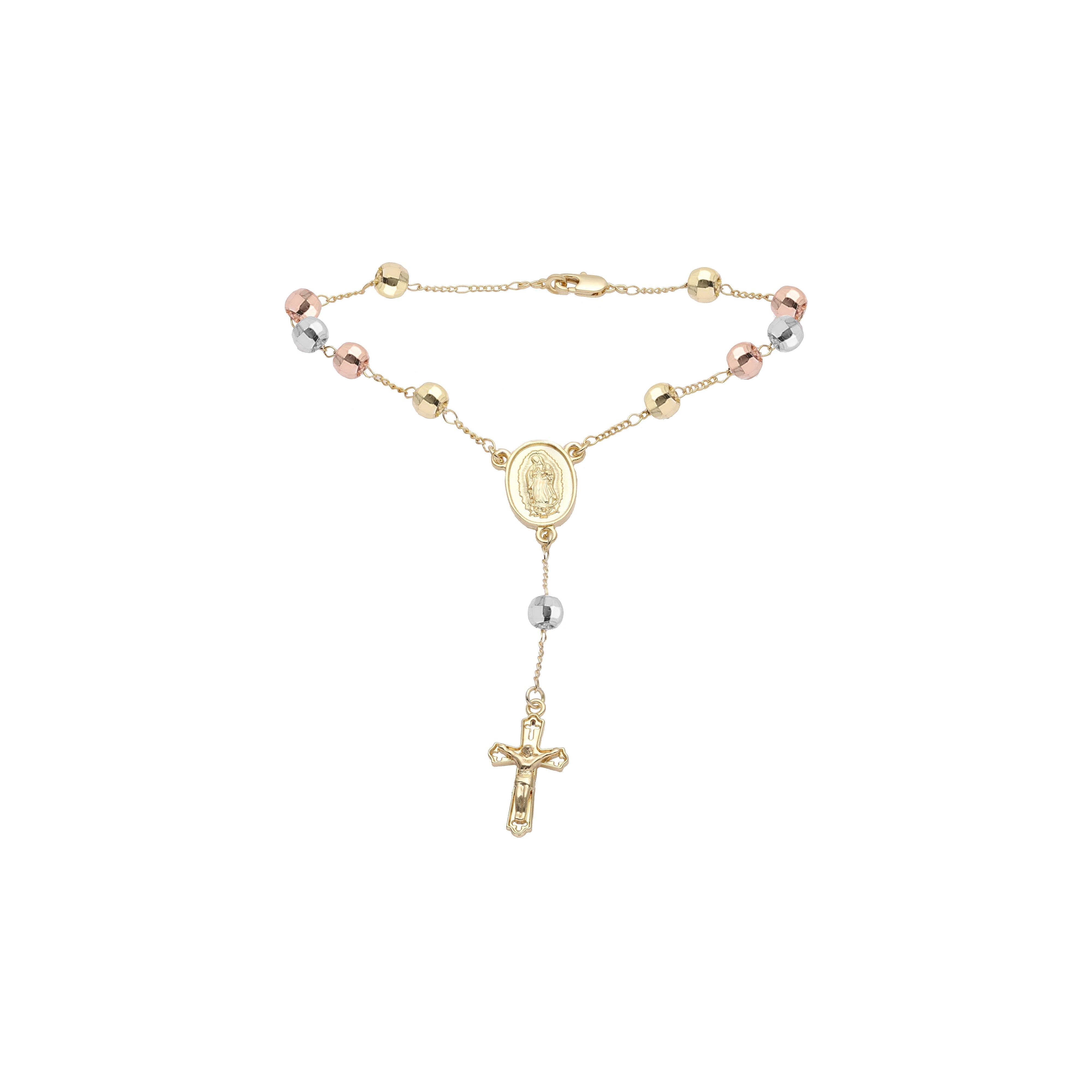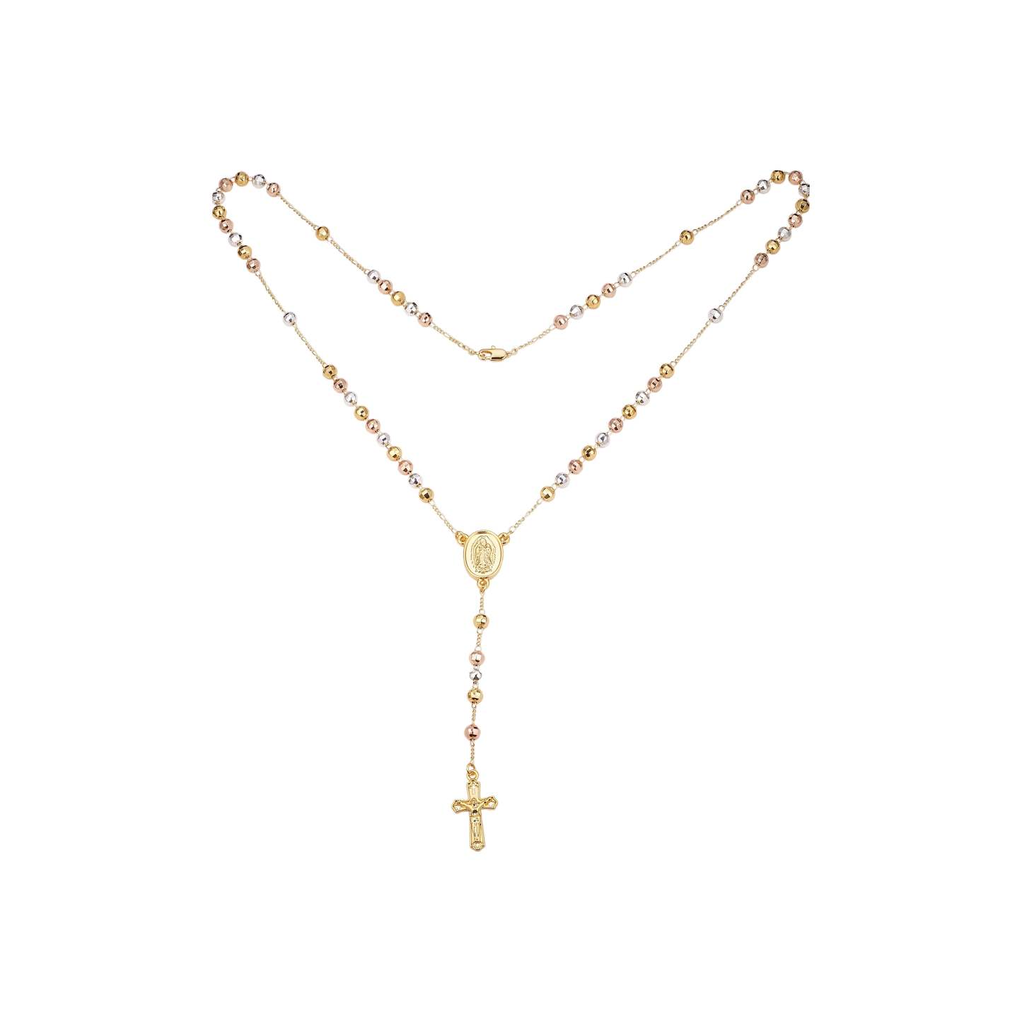 Italian Virgin of Guadalupe Catholic Rosary Necklace (Faceted Disco Beads) plated in 14K Gold, 14K Gold two tone