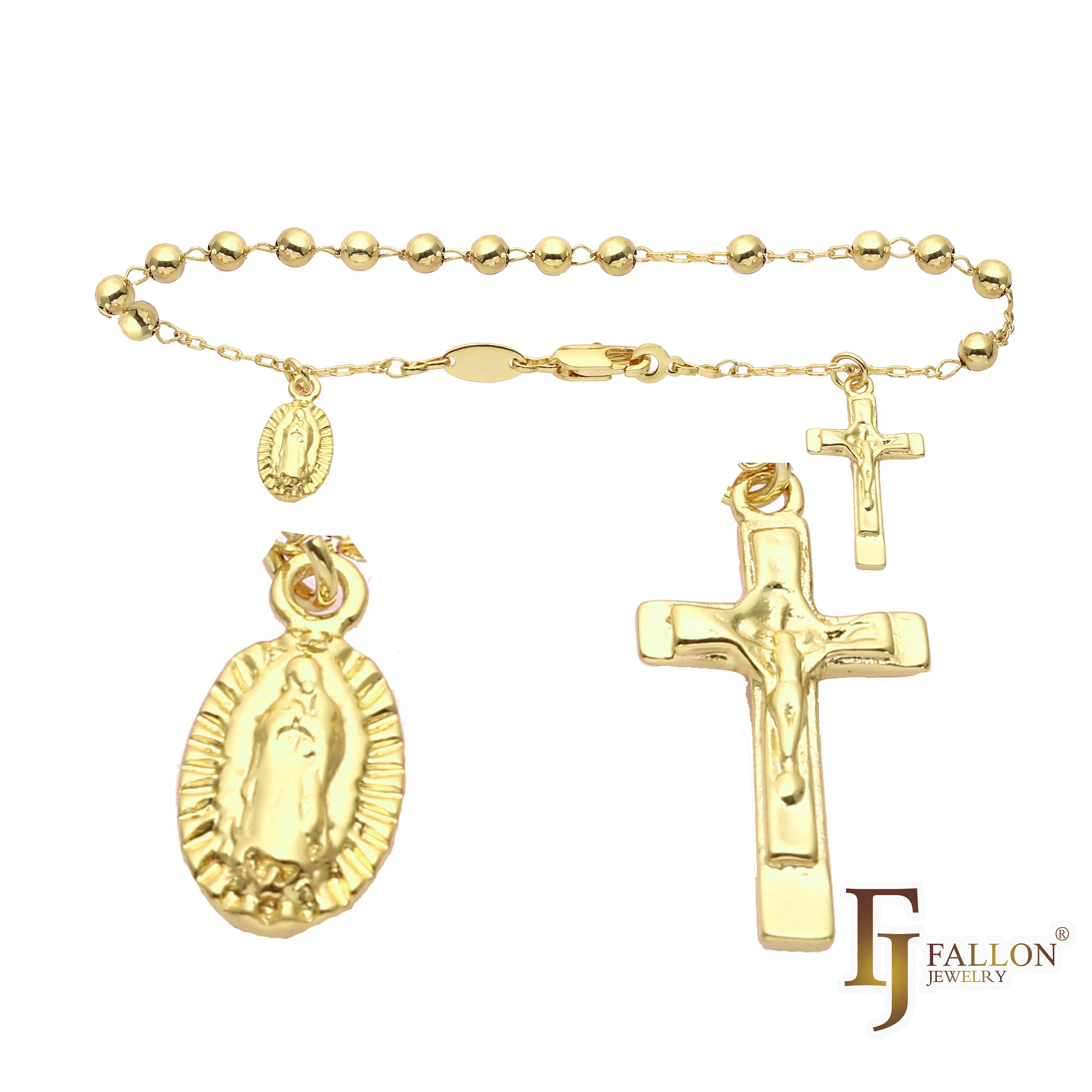 Italian Virgin of Guadalupe Catholic Rosary Necklace (Polished Round Beads) plated in 14K Gold, 14K Gold two tone