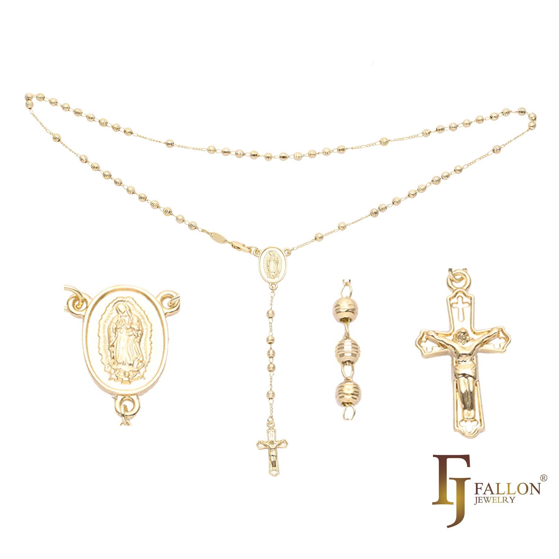 Italian Virgin of Guadalupe Catholic Rosary Necklace (Grooved Beads) plated in 14K Gold two tone