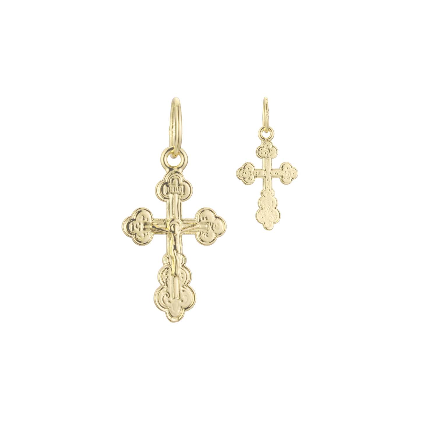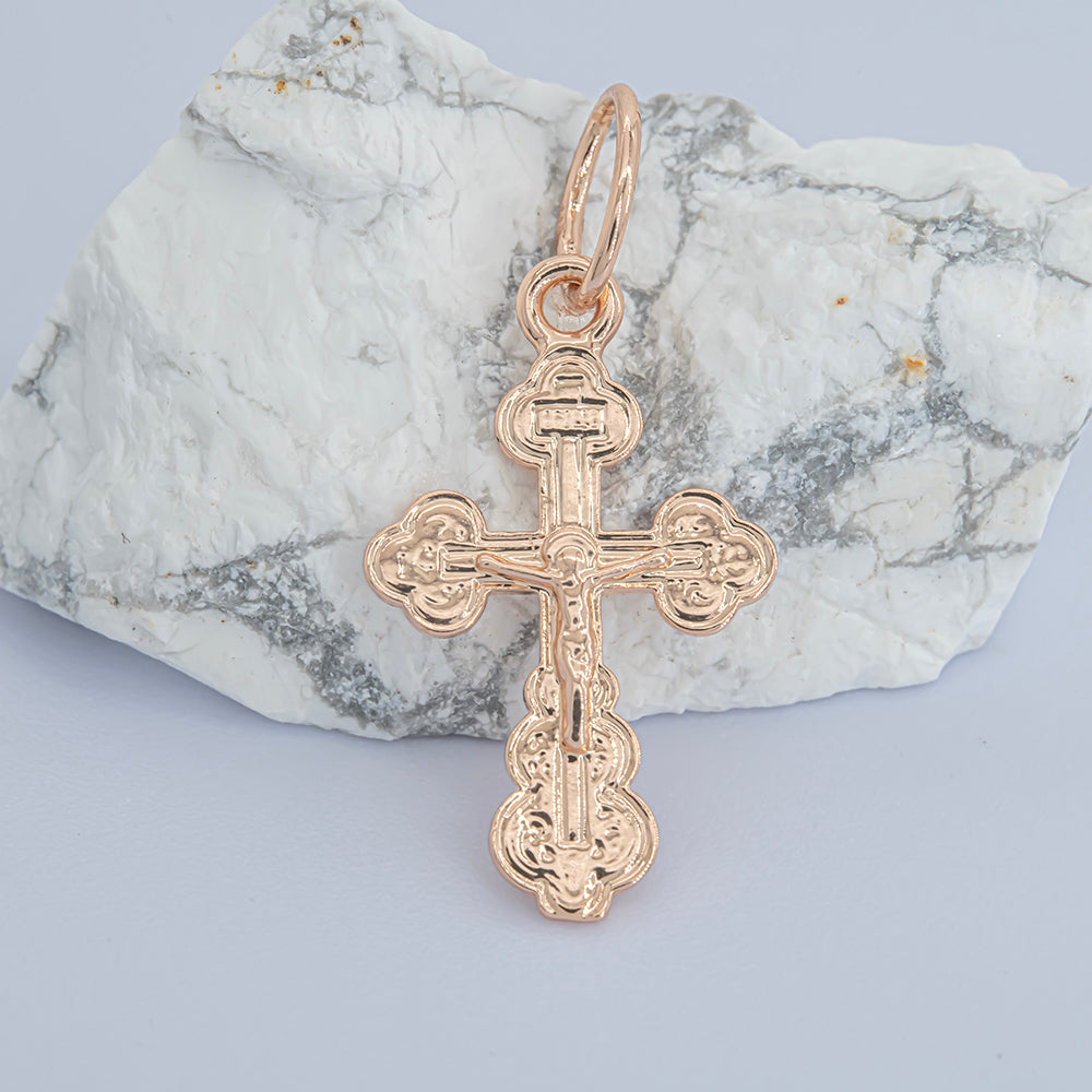 .Crucifix Eastern Orthodox Russian pendant in 14K Gold, Rose Gold & White Gold plating colors