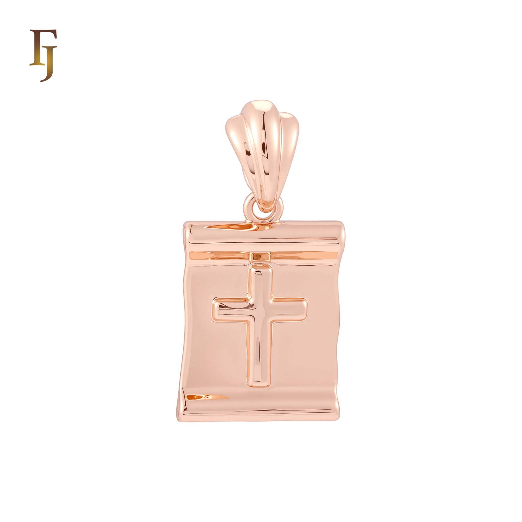 Scroll Reel of Latin Cross Rose Gold Religious Pendant