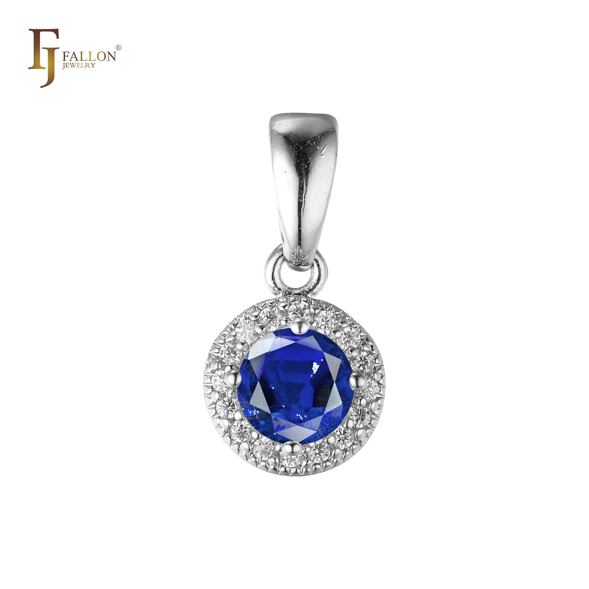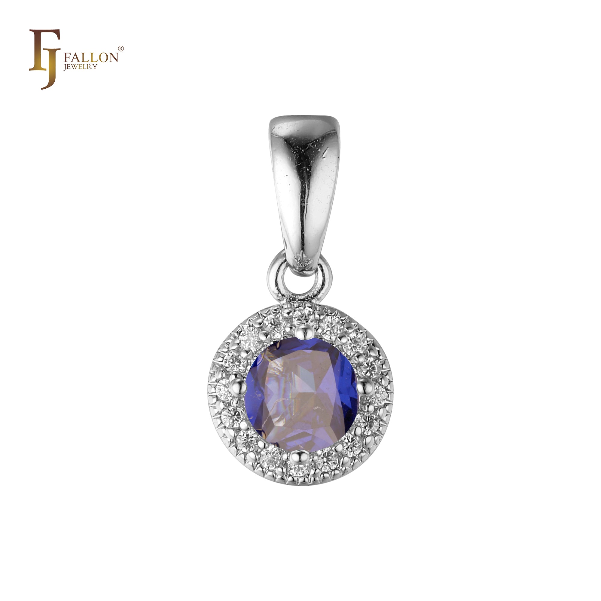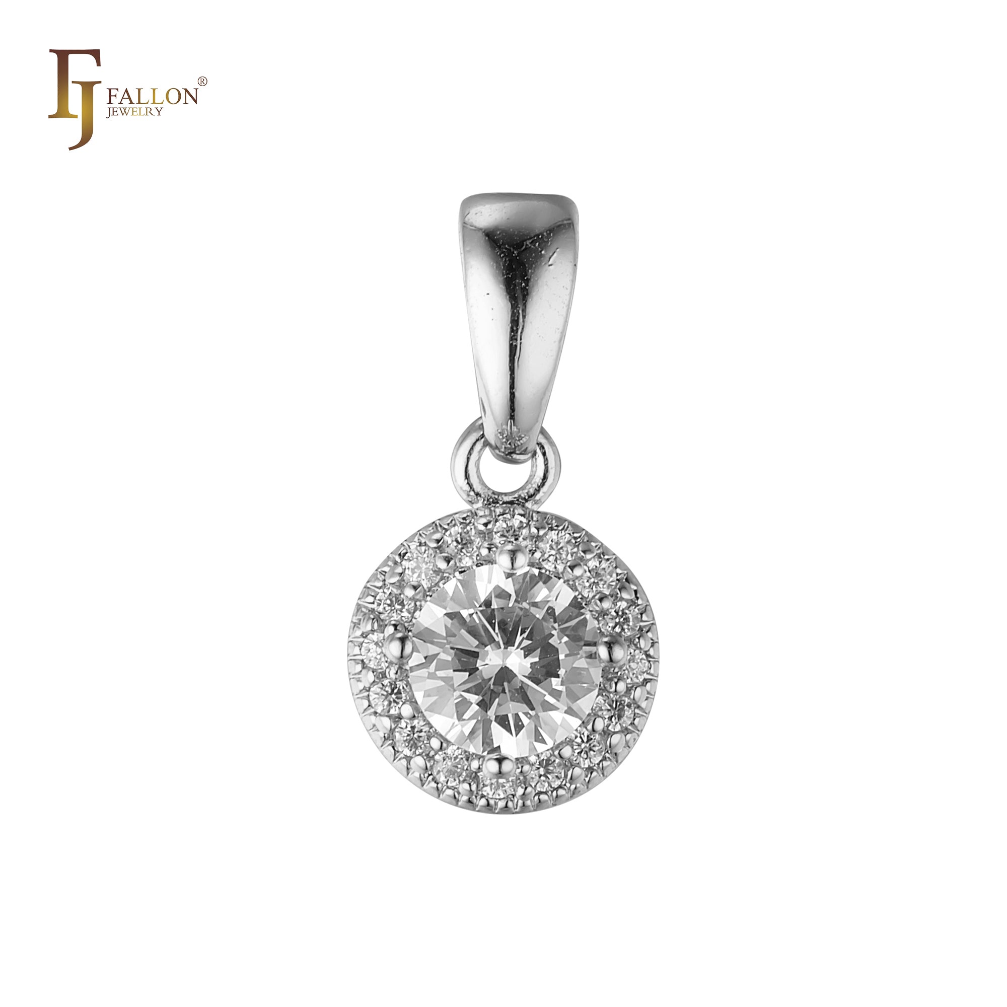 Solitaire halo colorful CZs 14K Gold, Rose Gold pendant