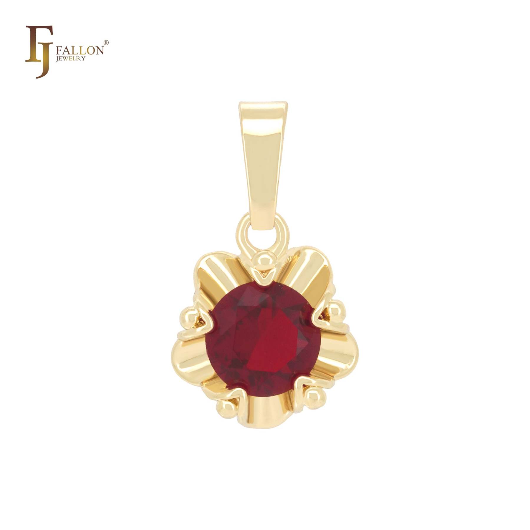 Fancy flower of rounded solitaire radiant cut white CZ 14K Gold Solitaire Pendant