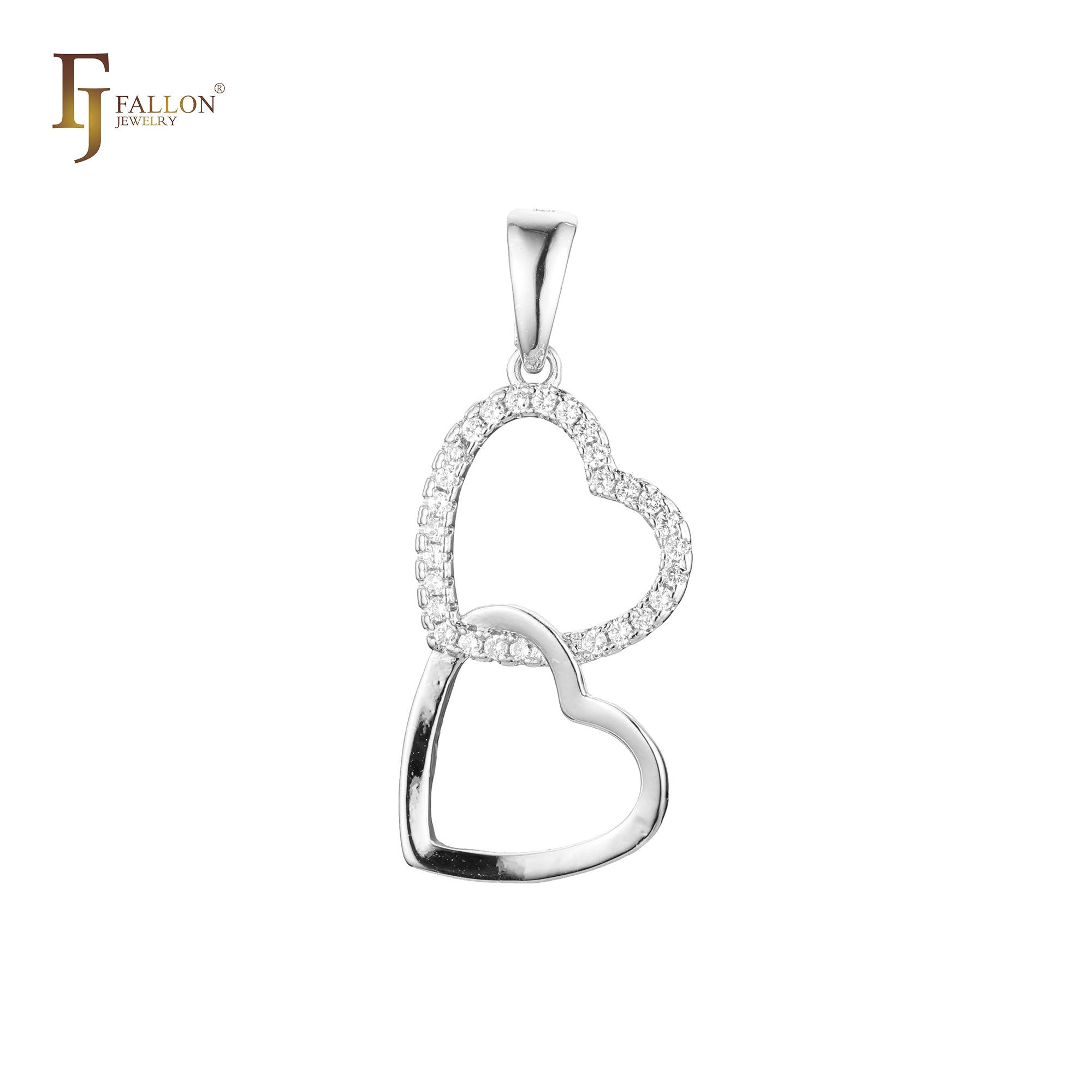 Paved white CZs heart in heart Rose Gold, 14K Gold pendant