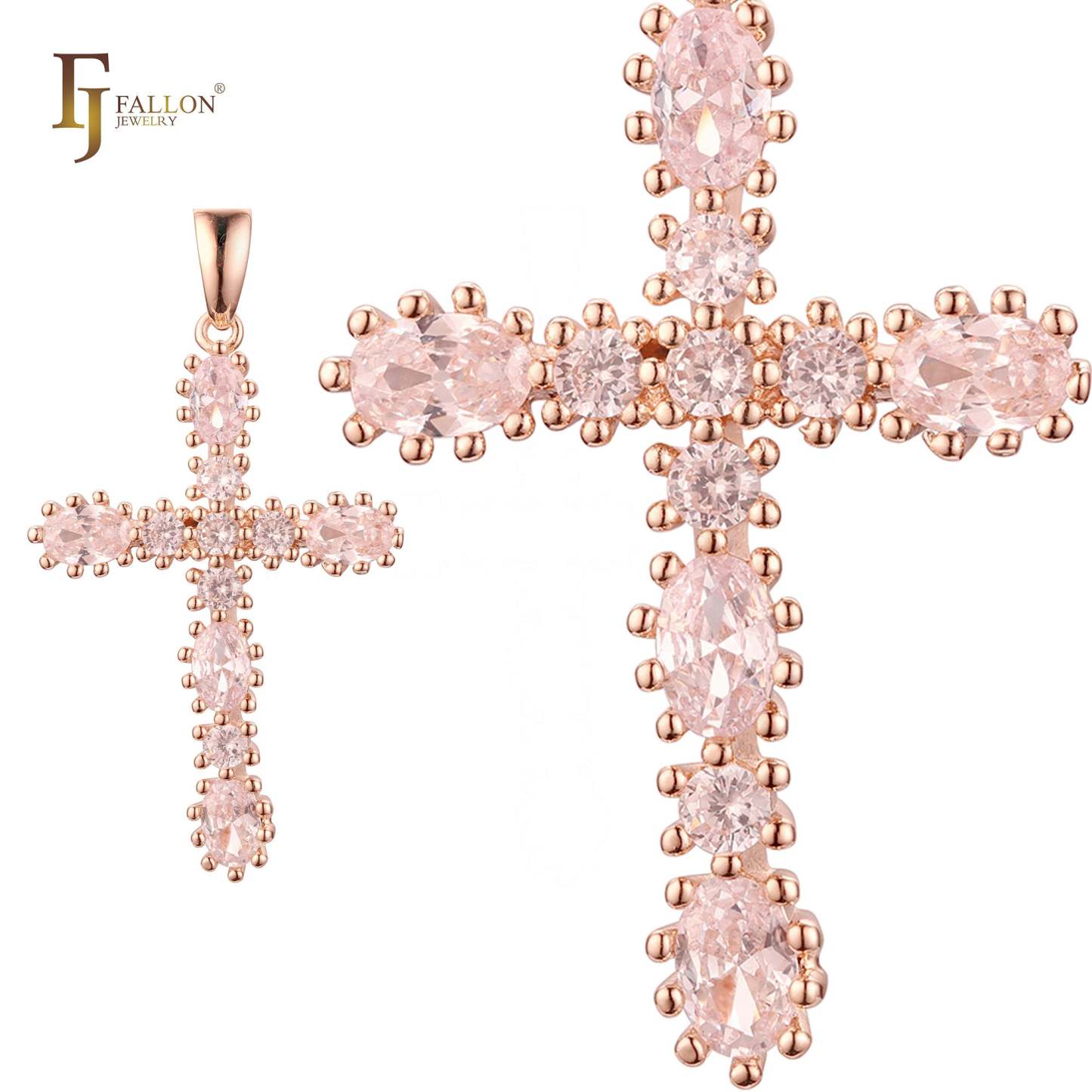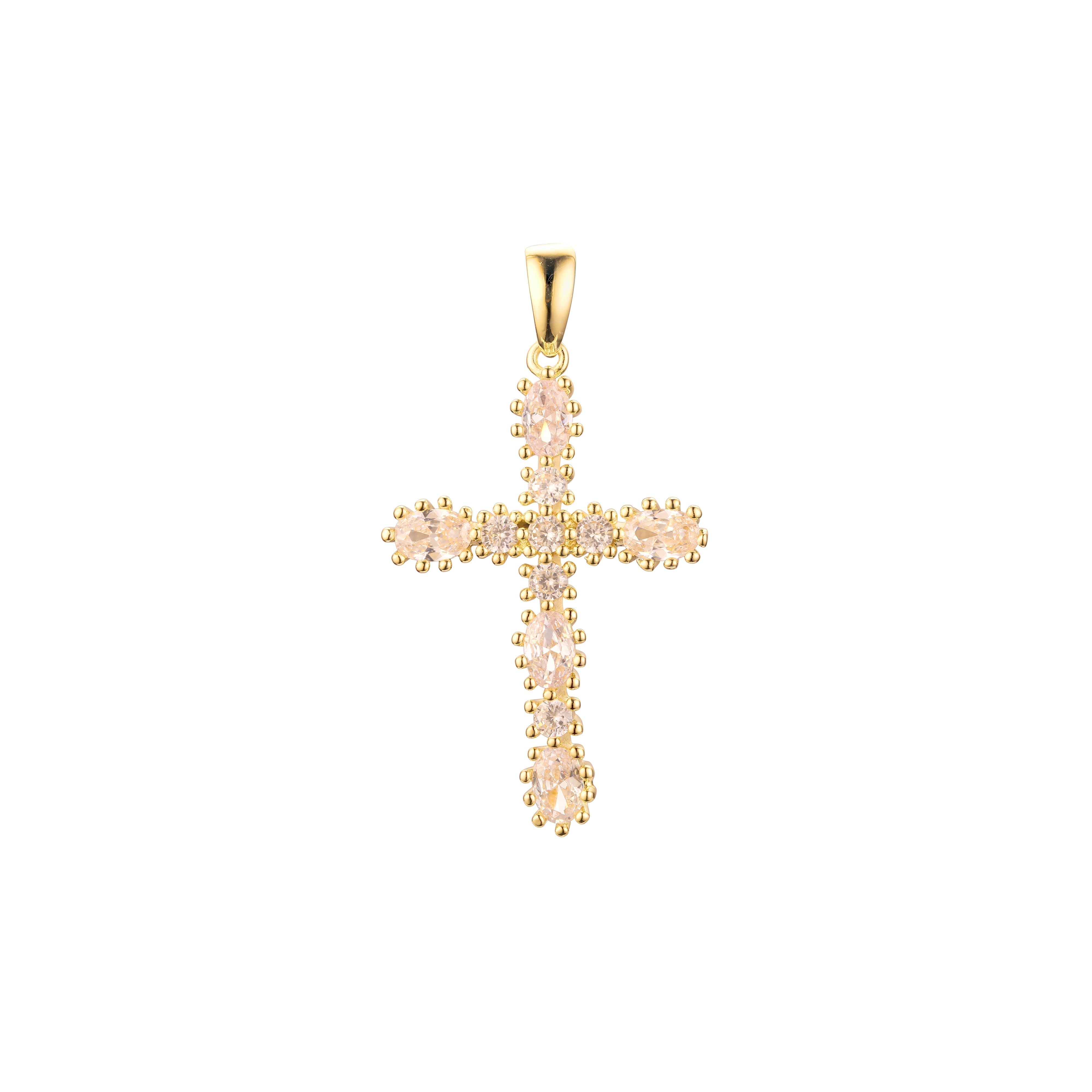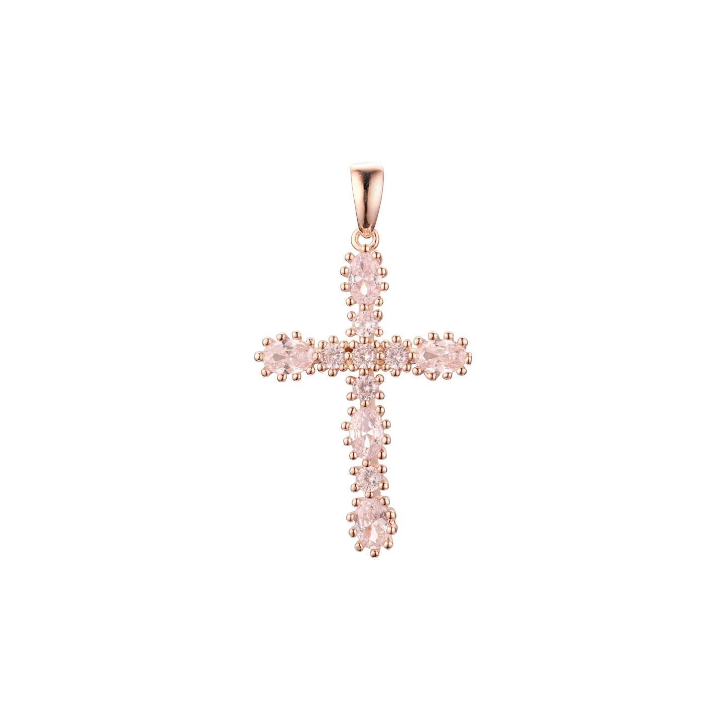 Big Radiant Cut Cluster white CZs Rose Gold, 14K Gold Latin Cross Pendant