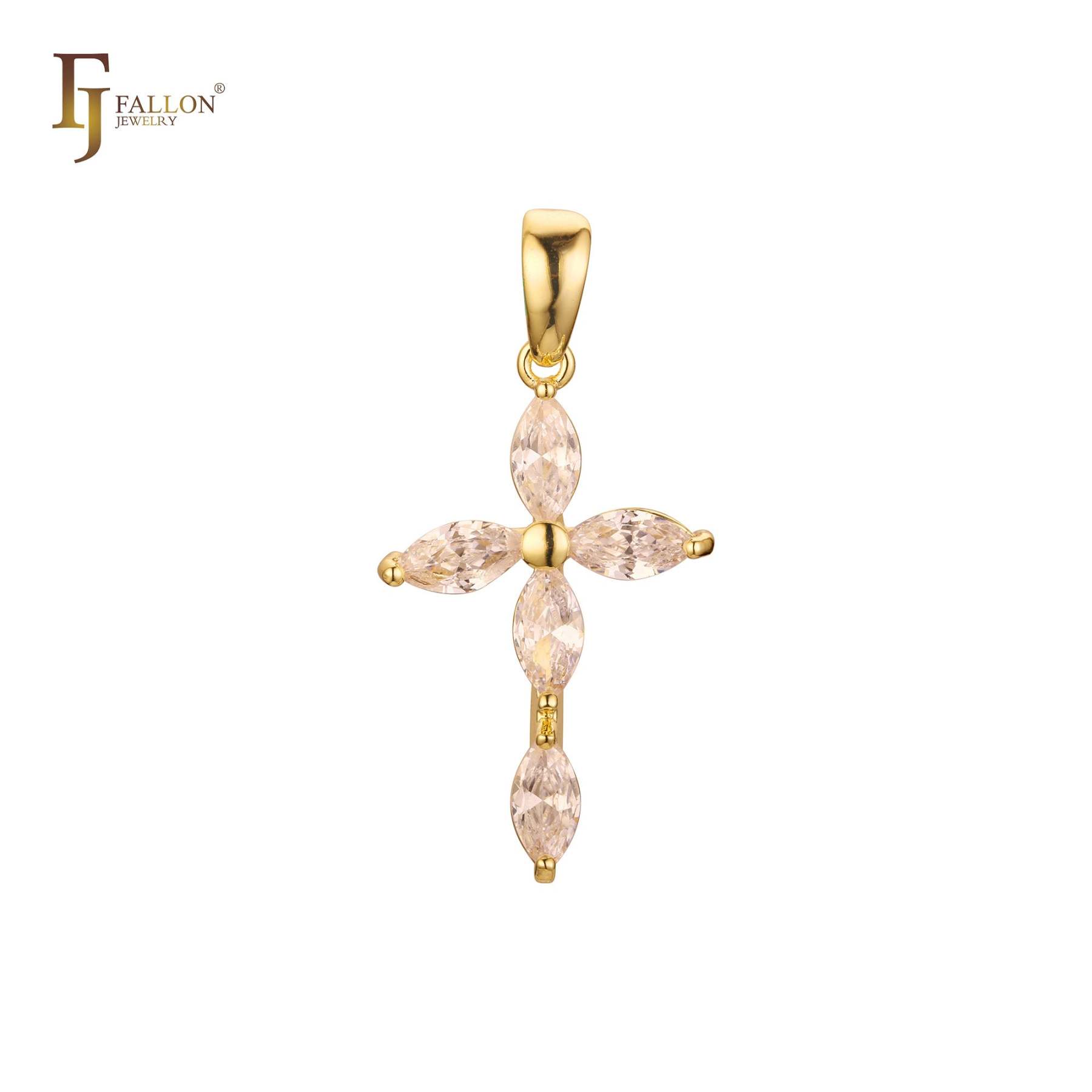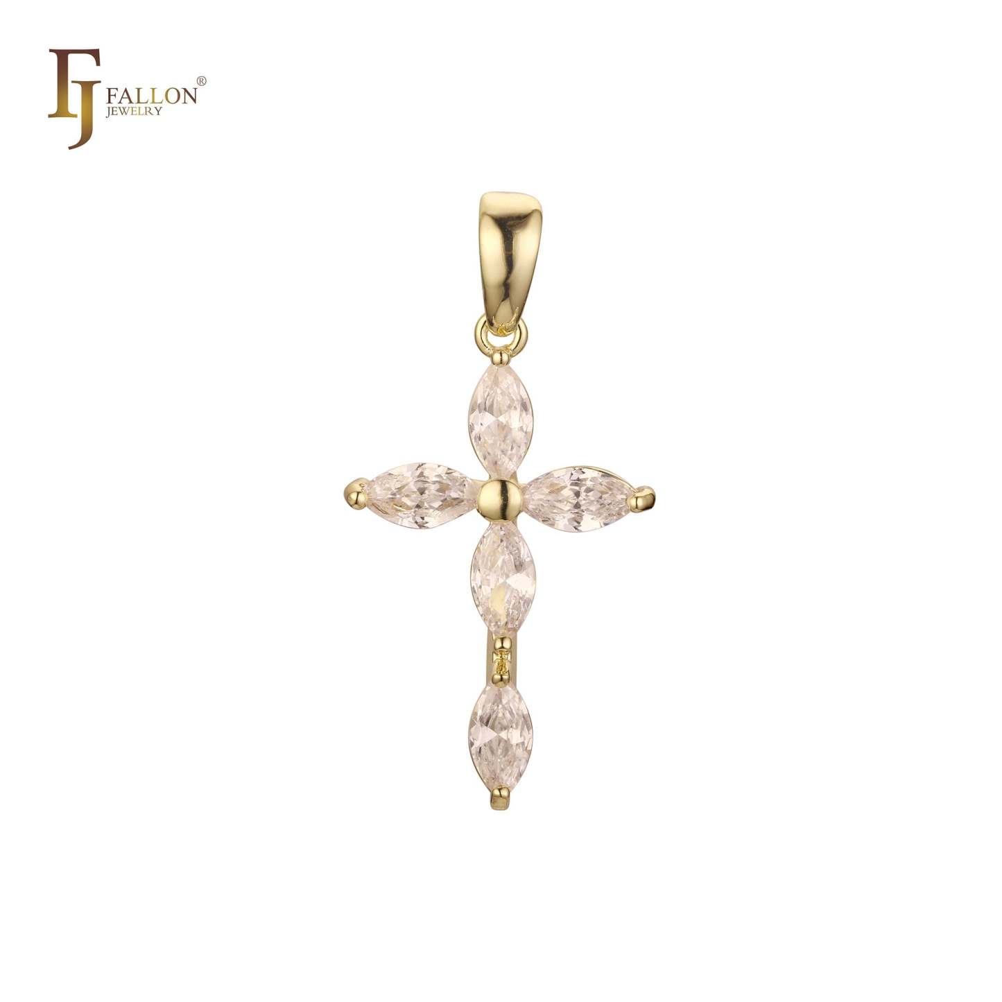 Cluster white CZs Rose Gold, 14K Gold Latin Cross Pendant
