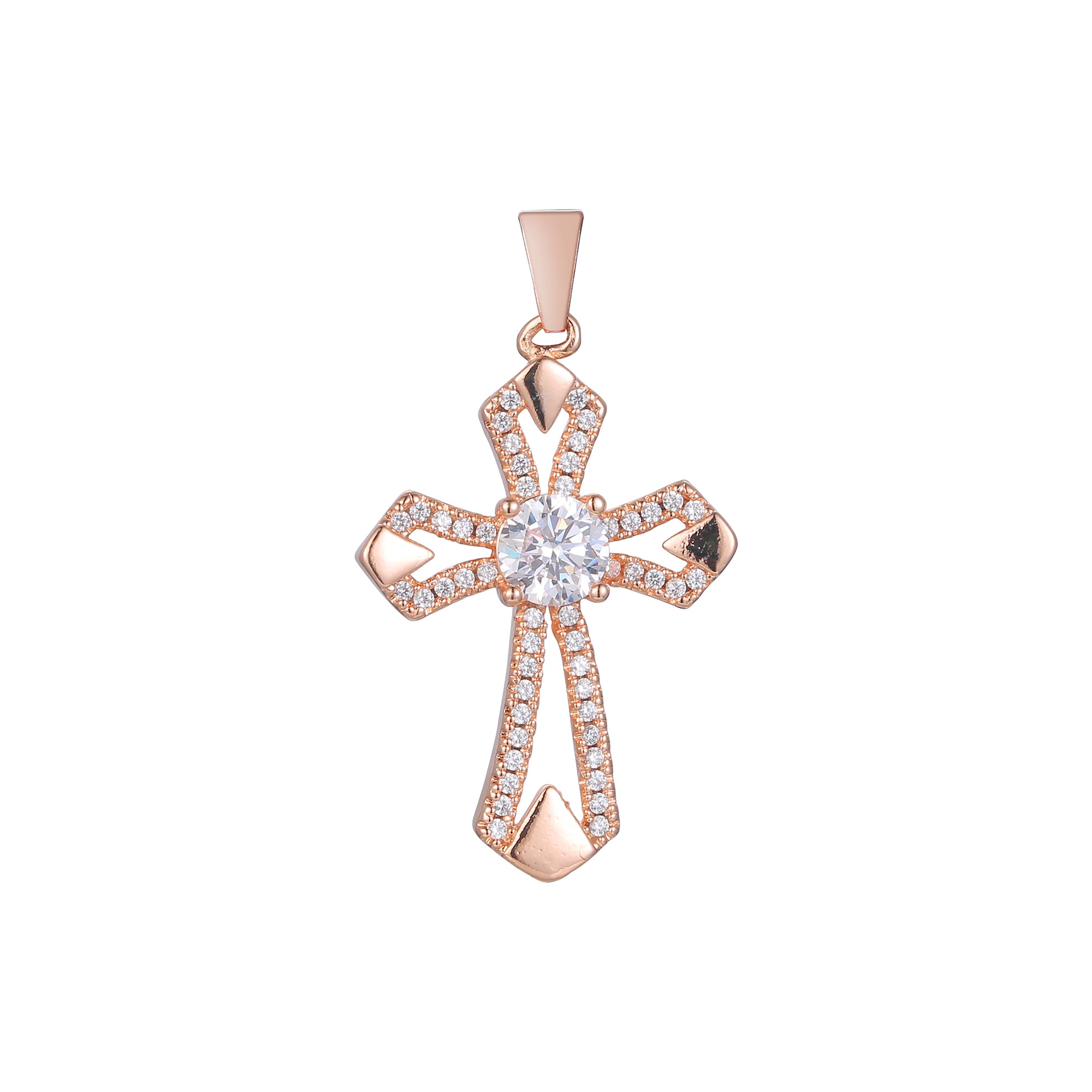 Latin paved white CZ cross pendant
