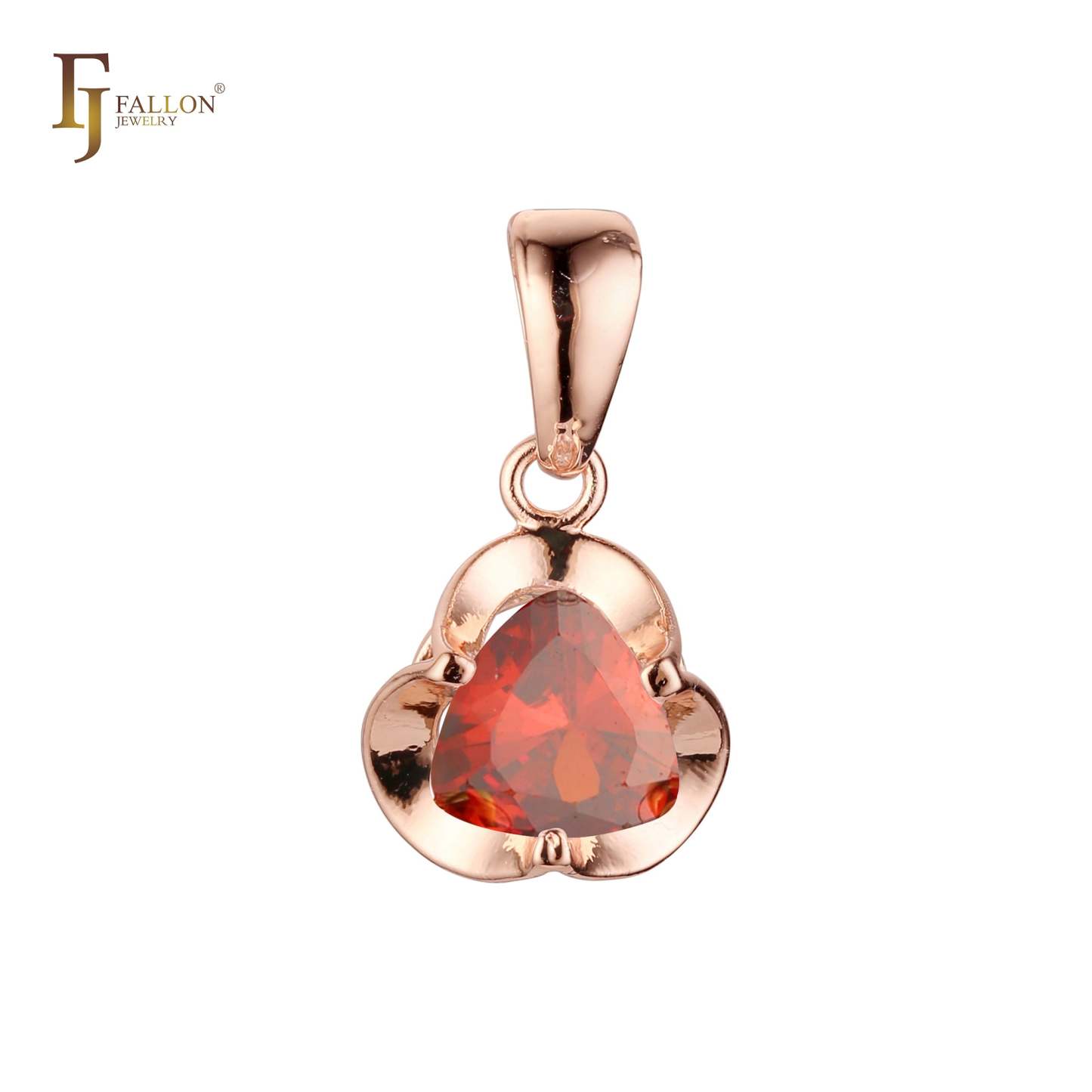 Solitaire clamped colorful CZ 14K Gold, Rose Gold, White Gold Pendant
