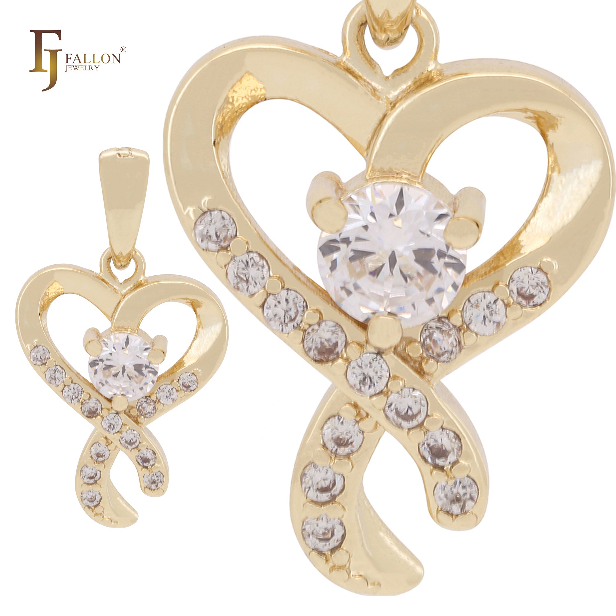 Solitaire white CZs cluster 14K Gold solitaire heart pendant